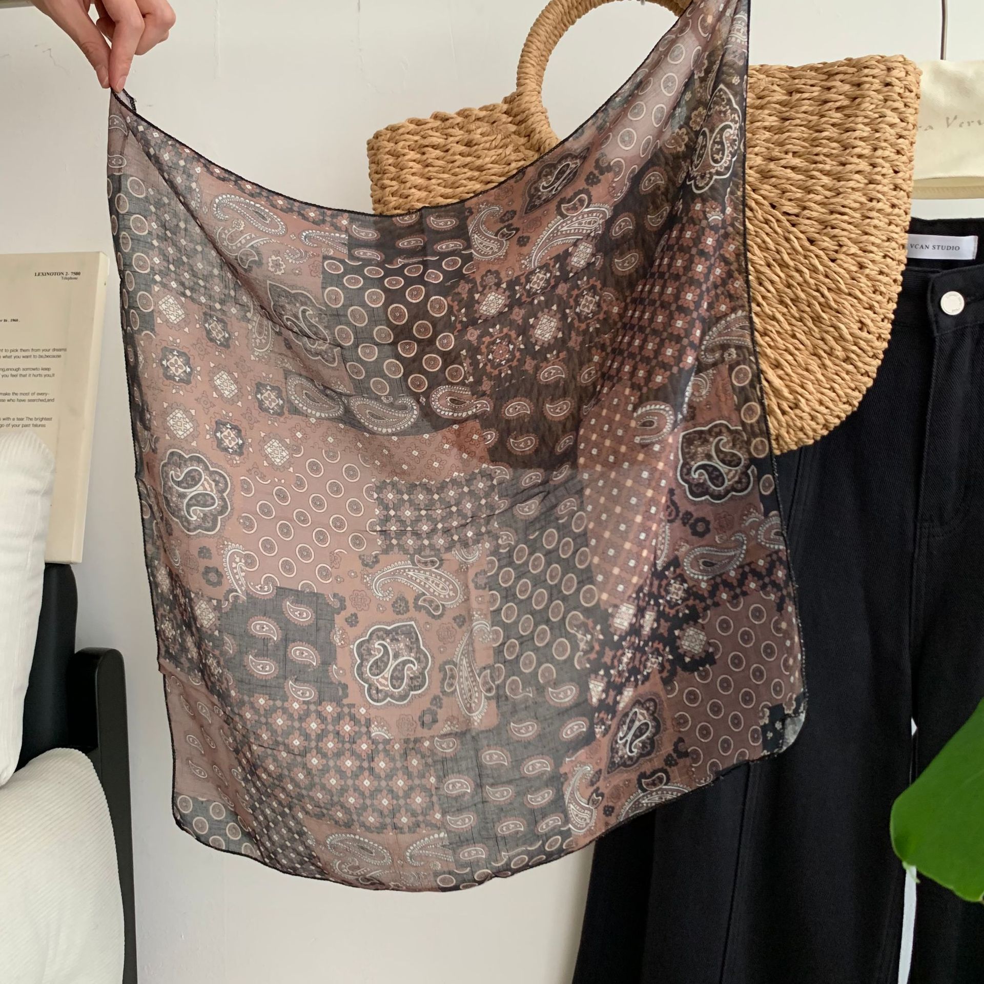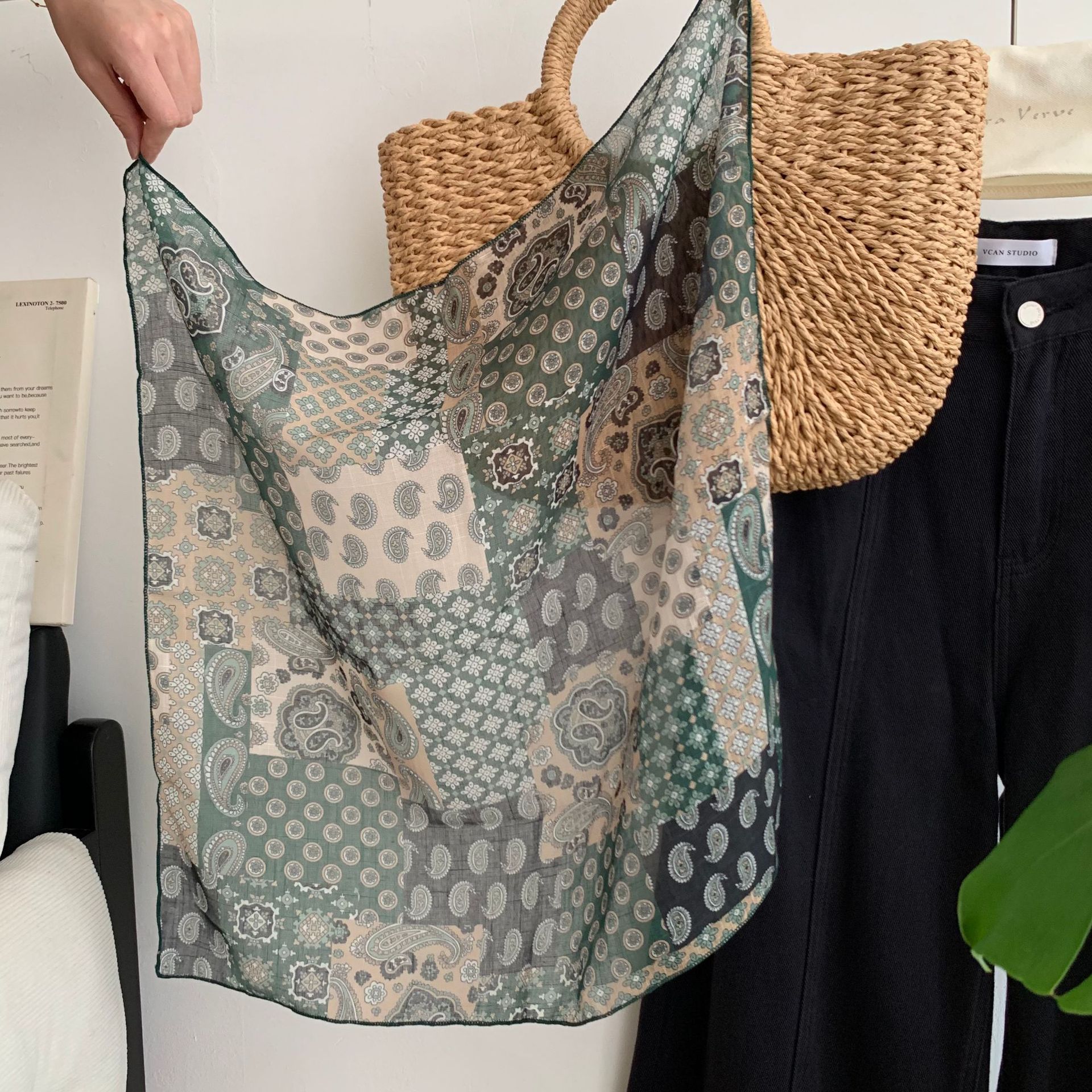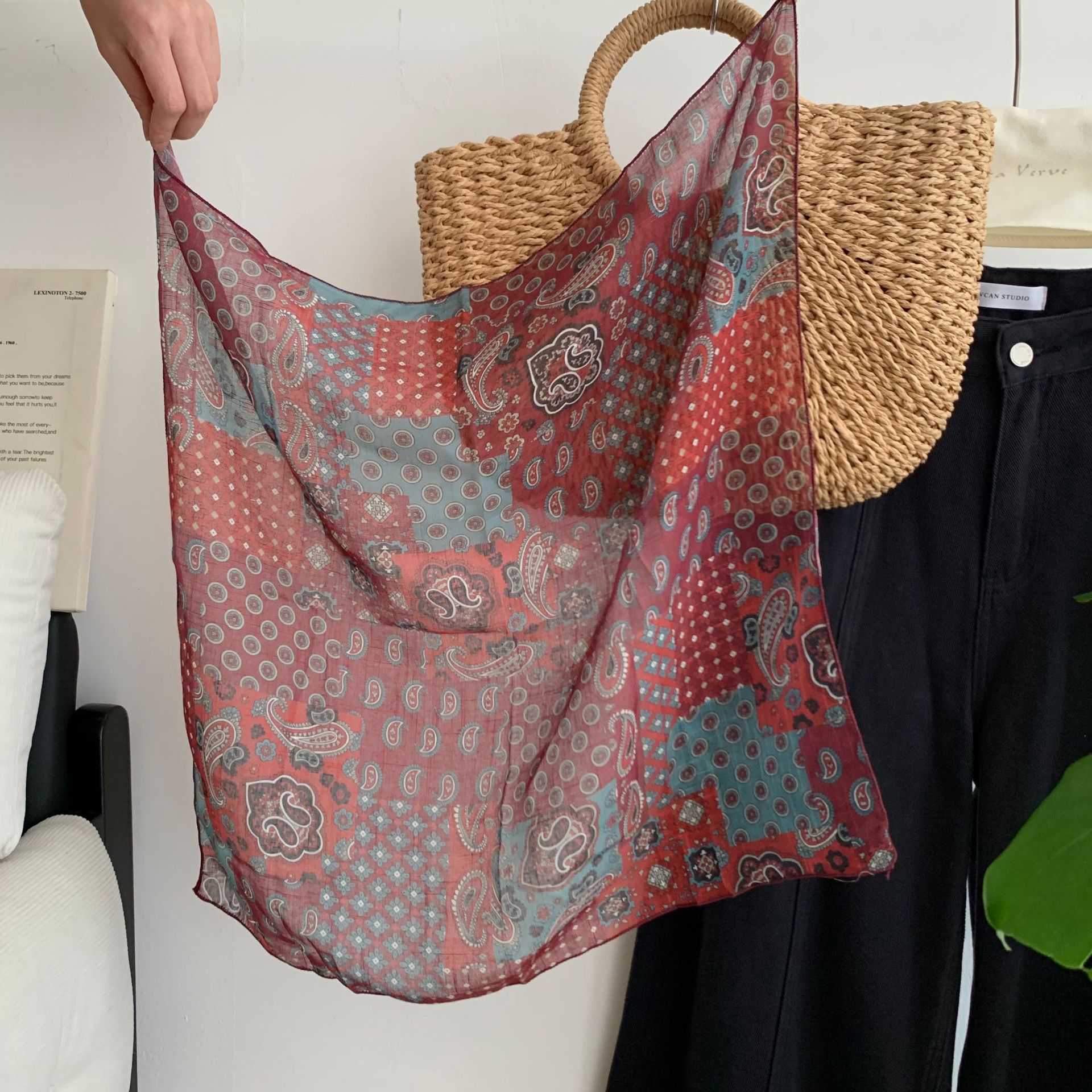 53CM 인터넷 기념 면 및 리넨 꽃 머리 스카프 작은 광장 스카프 여성의 봄과 가을 얇은 스카프 힙 장식 스카프스토어 가기