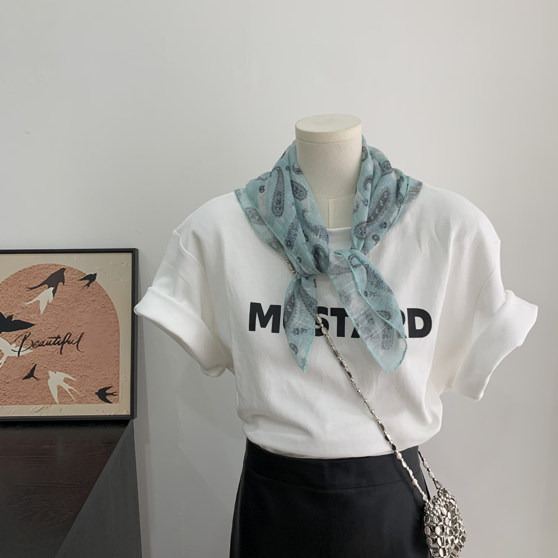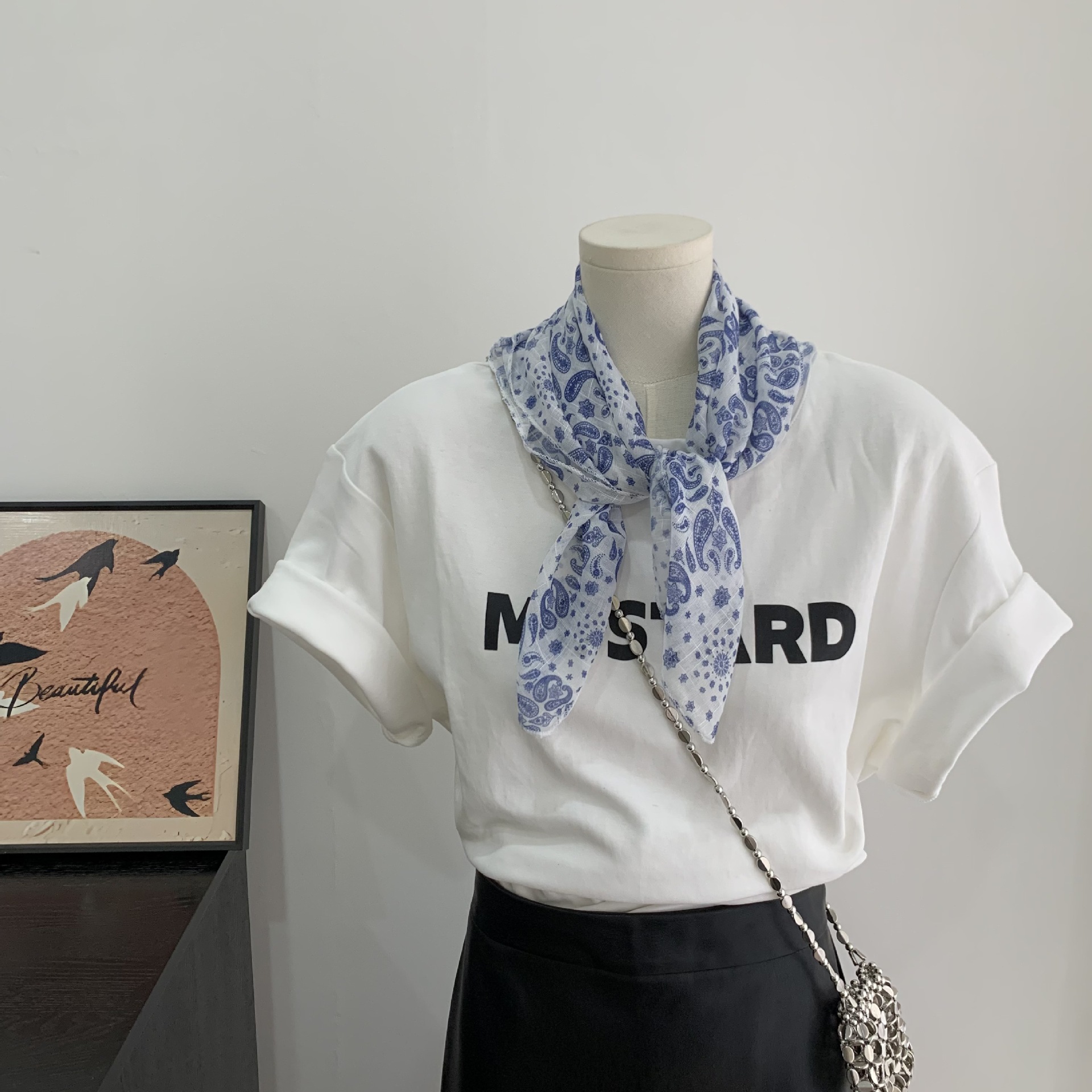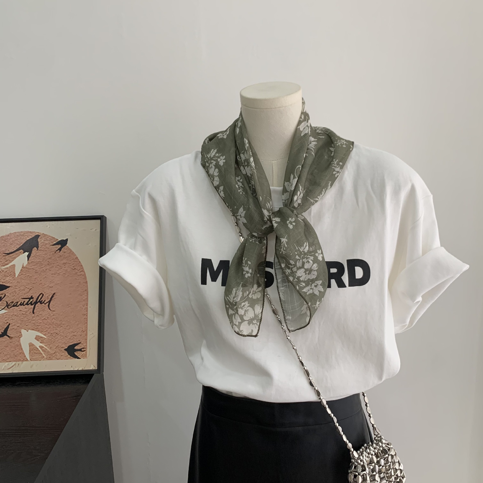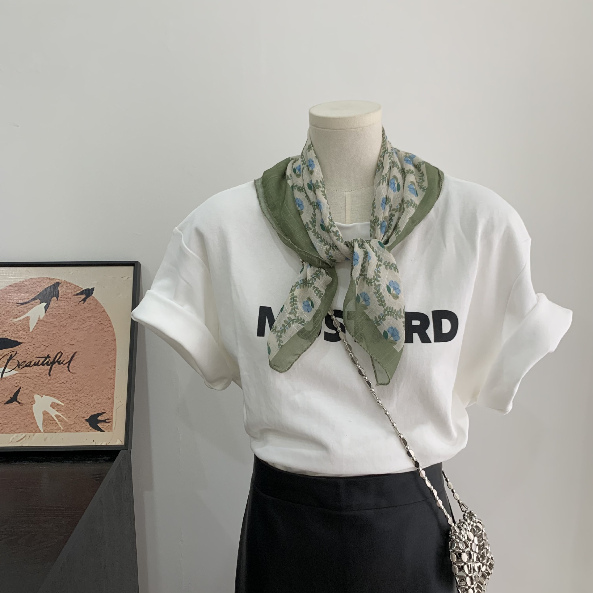 53CM 인터넷 기념 면 및 리넨 꽃 머리 스카프 작은 광장 스카프 여성의 봄과 가을 얇은 스카프 힙 장식 스카프스토어 가기