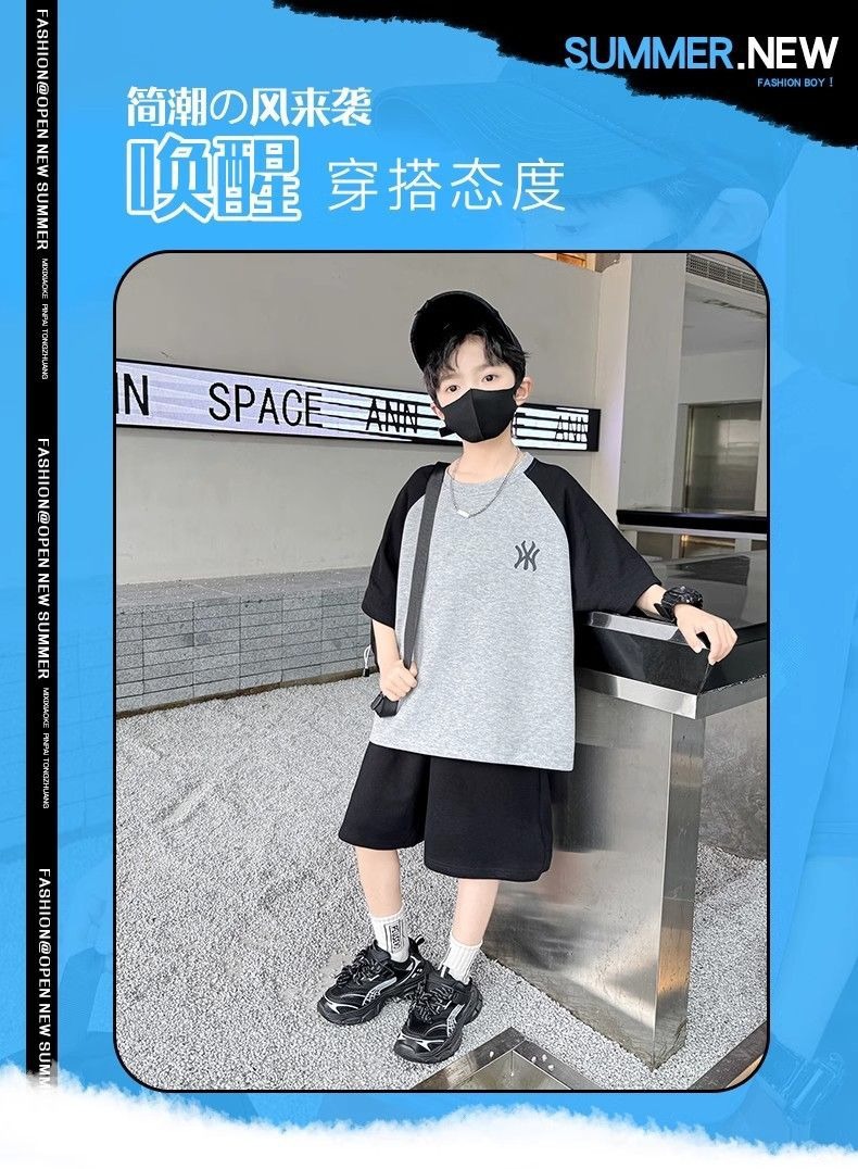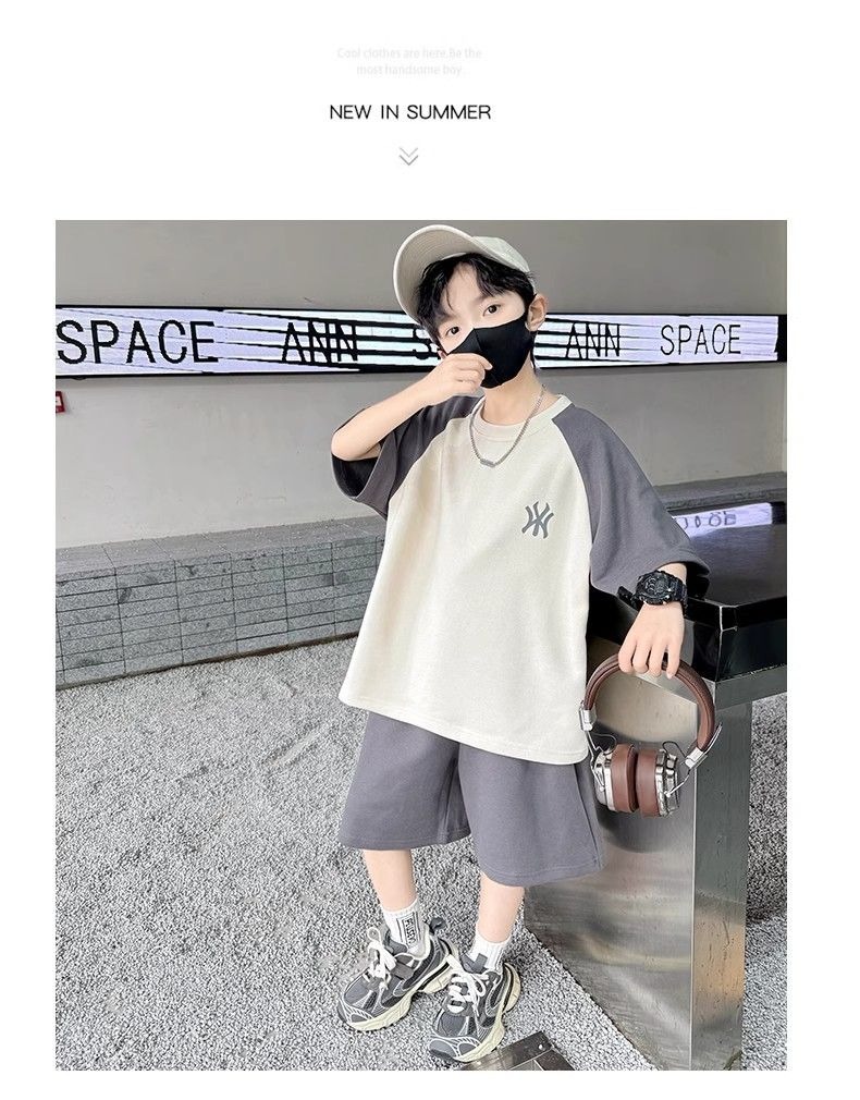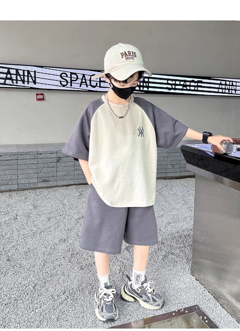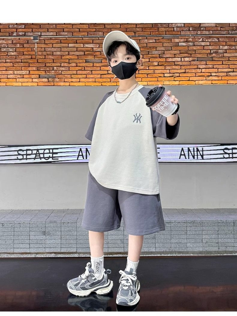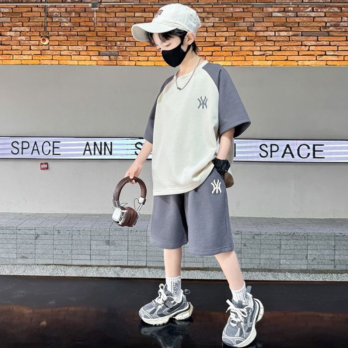 소년 여름 원피스 반팔 세트 스포츠 패션 브랜드 2025 여름 새로운 어린이 유행과 잘 생긴 투피스 세트스토어 가기
