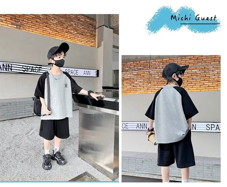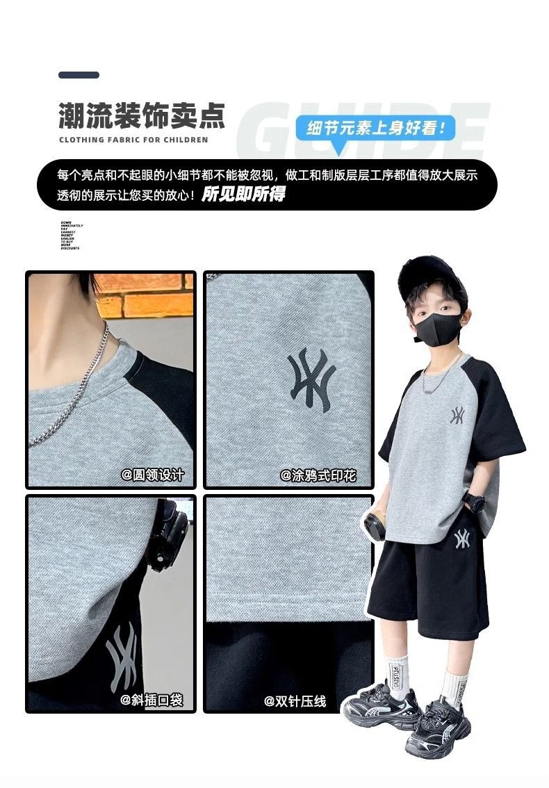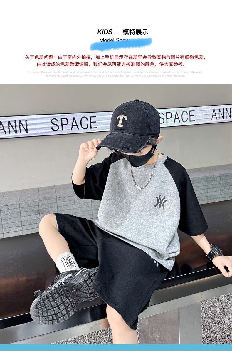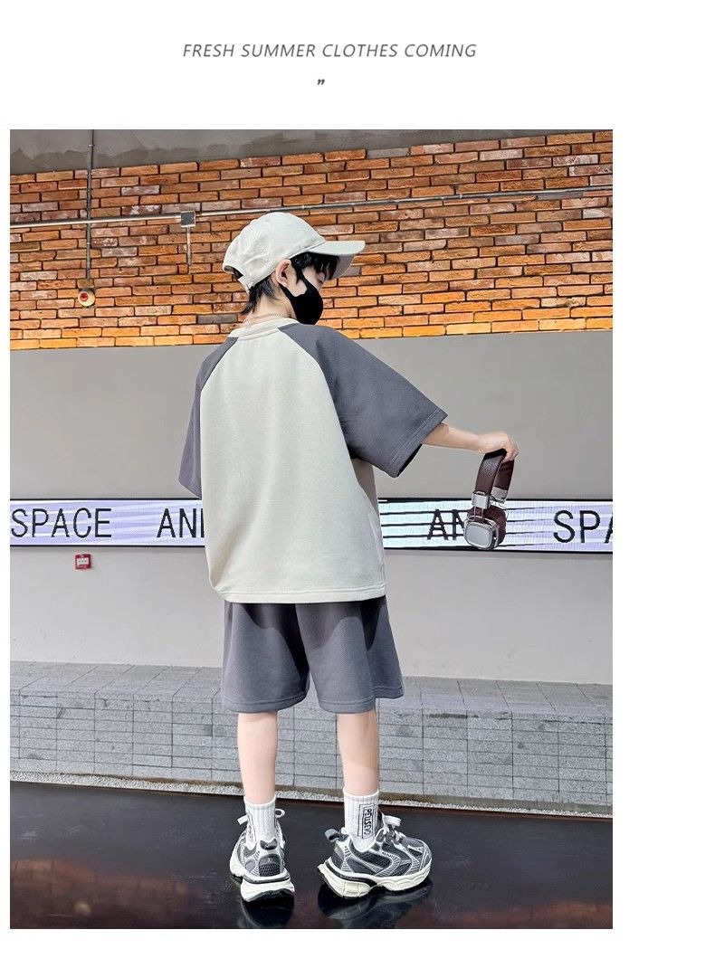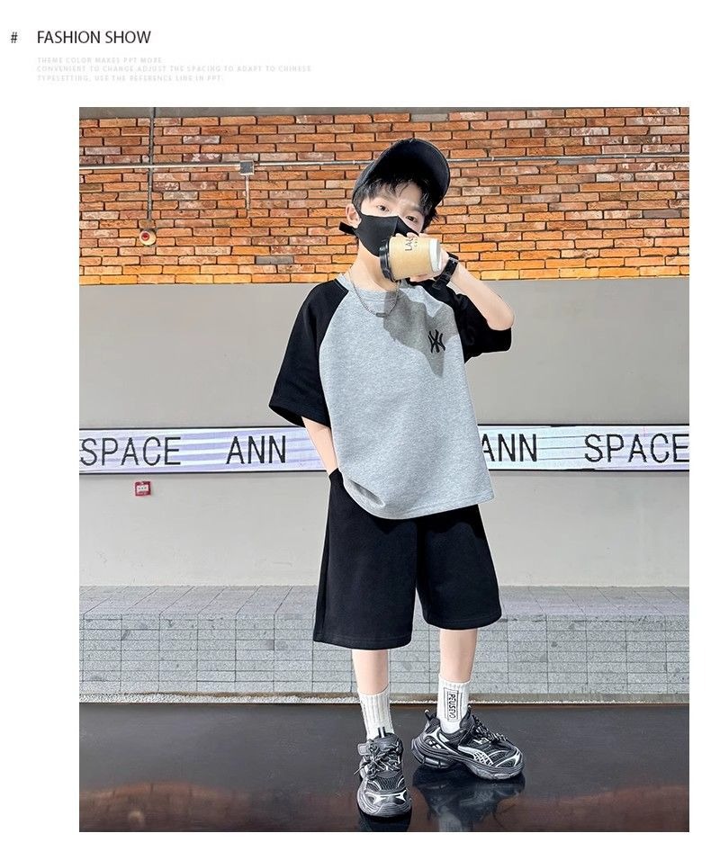 소년 여름 원피스 반팔 세트 스포츠 패션 브랜드 2025 여름 새로운 어린이 유행과 잘 생긴 투피스 세트스토어 가기