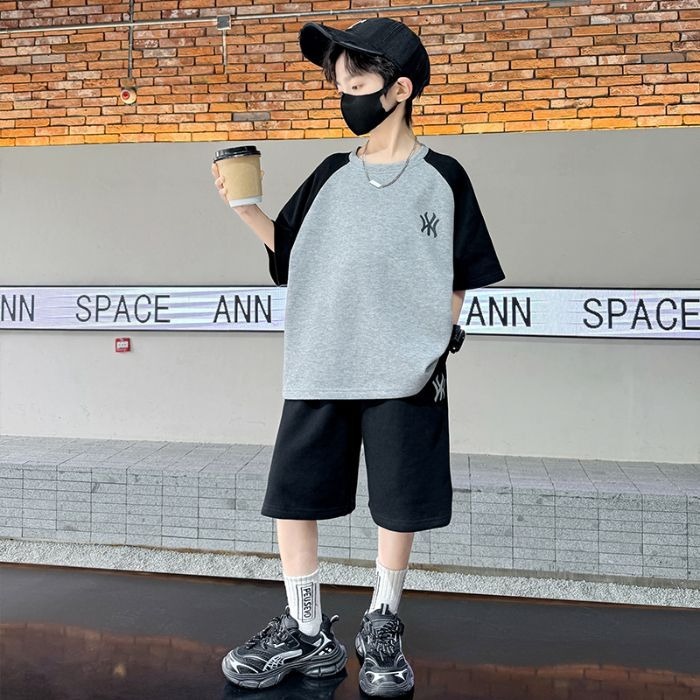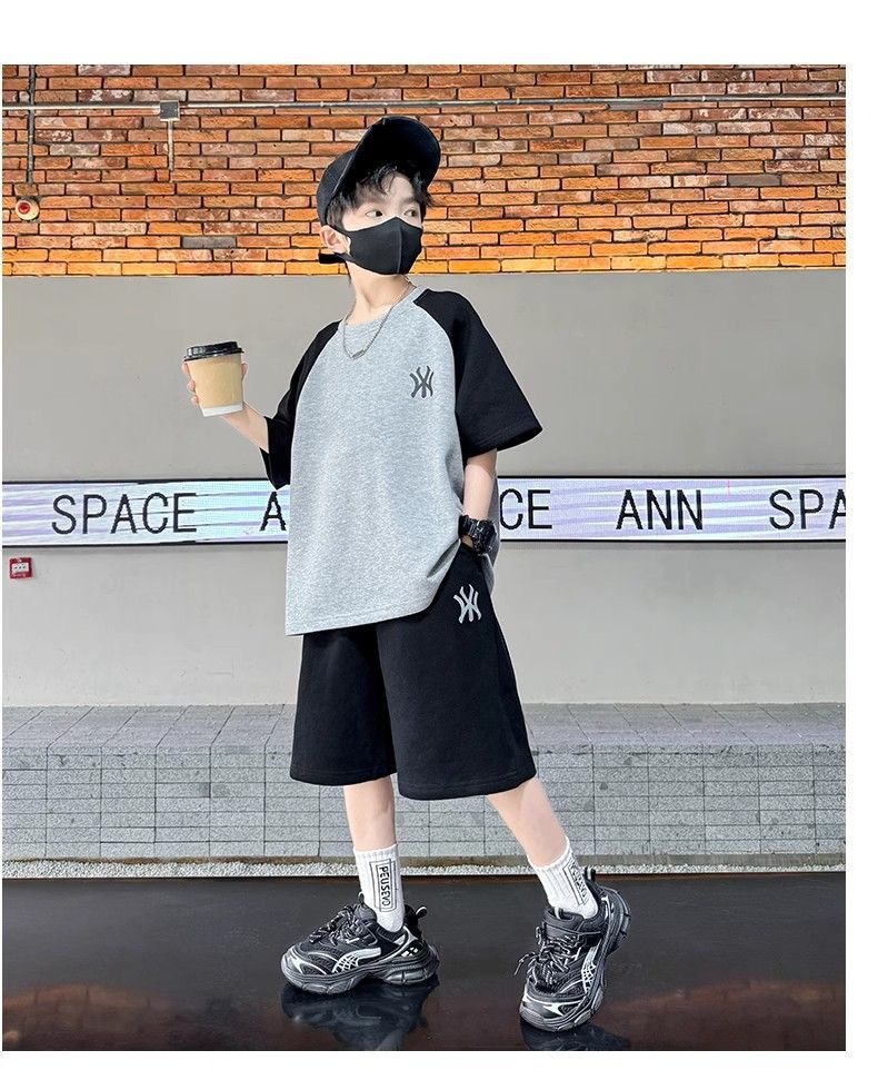 소년 여름 원피스 반팔 세트 스포츠 패션 브랜드 2025 여름 새로운 어린이 유행과 잘 생긴 투피스 세트