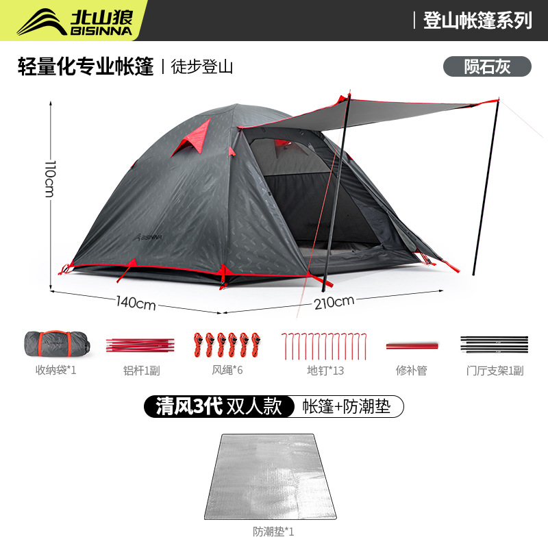Beishanlang 텐트 야외 2인용 등산 및 캠핑 야간 비 방지 두꺼운 접이식 휴대용 캠핑 경량