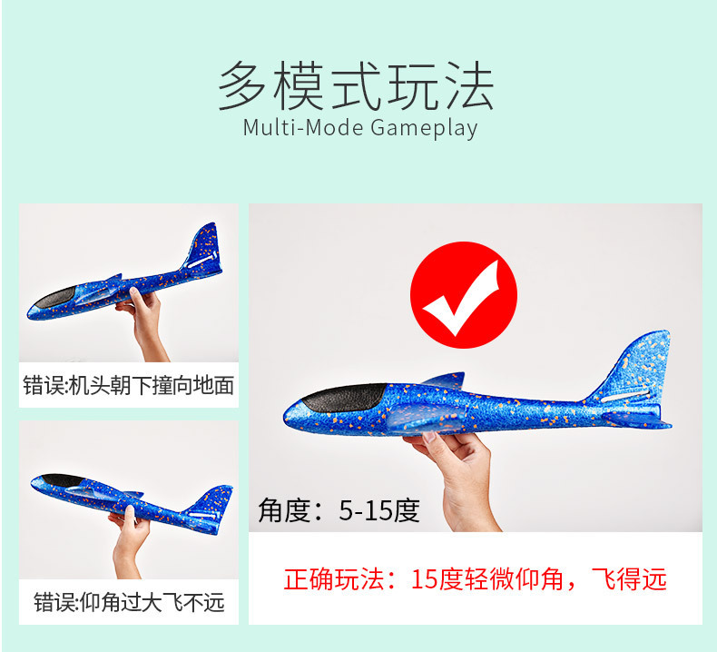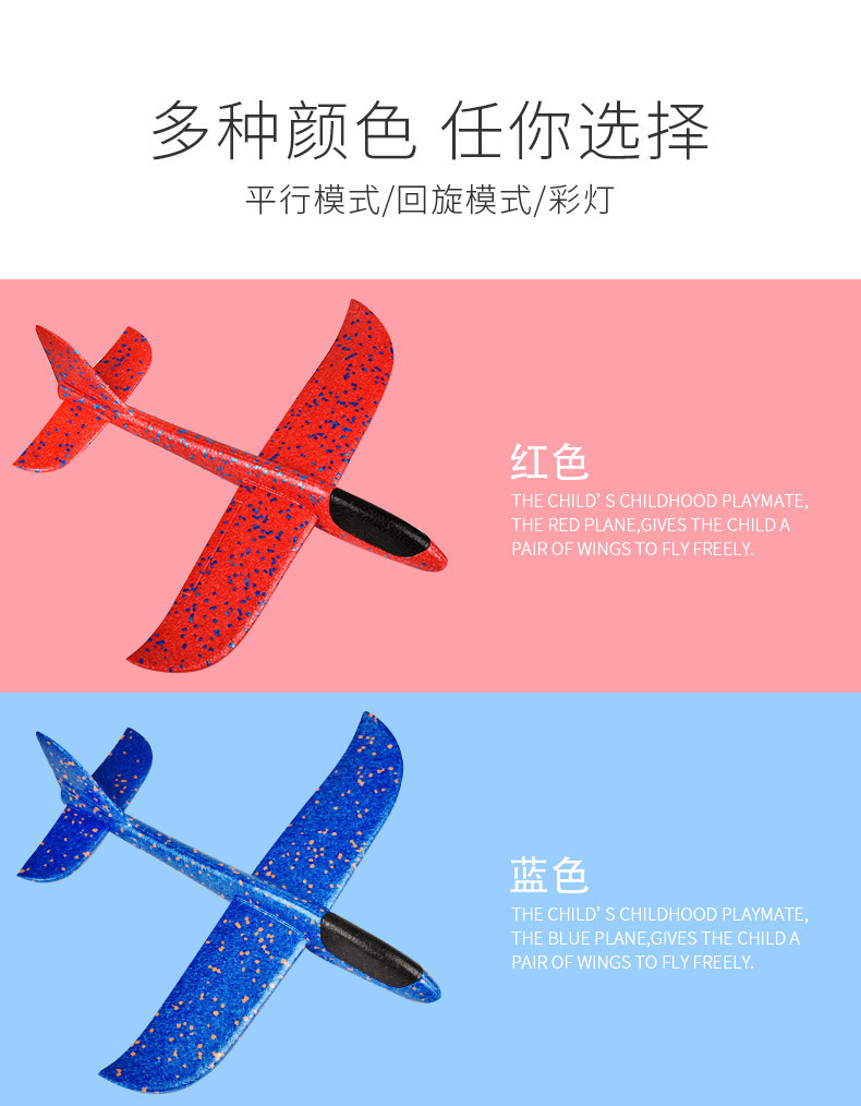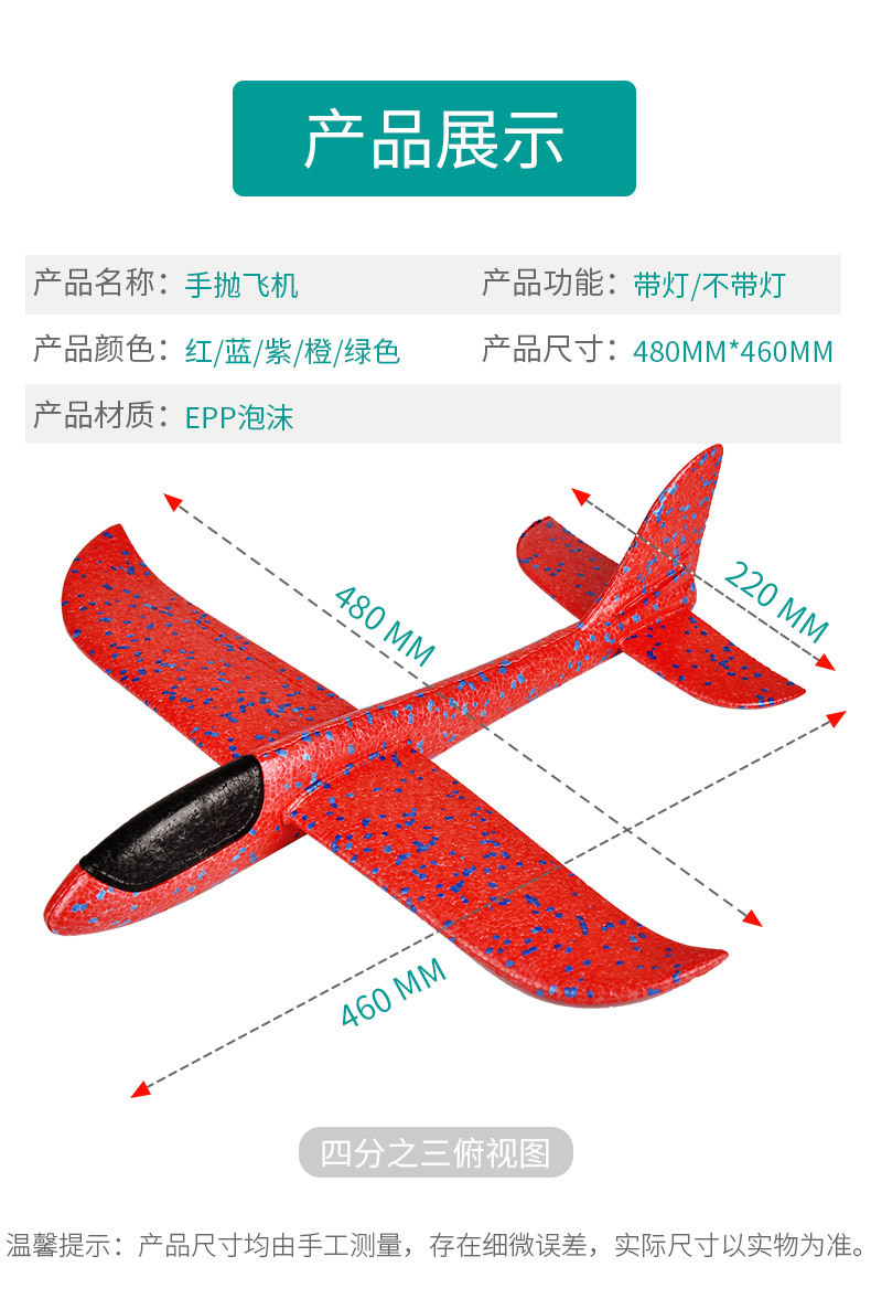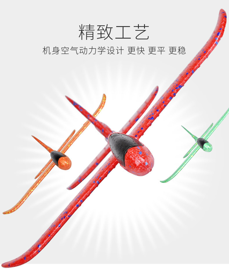 大号手抛飞机玩具儿童泡沫飞机回旋投掷滑翔发光户外滑行飞机耐摔