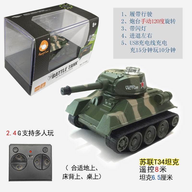 • T34 탱크-위장-2.4G-충전 헤드 + 충전 케이블-무료 배터리 + 도구