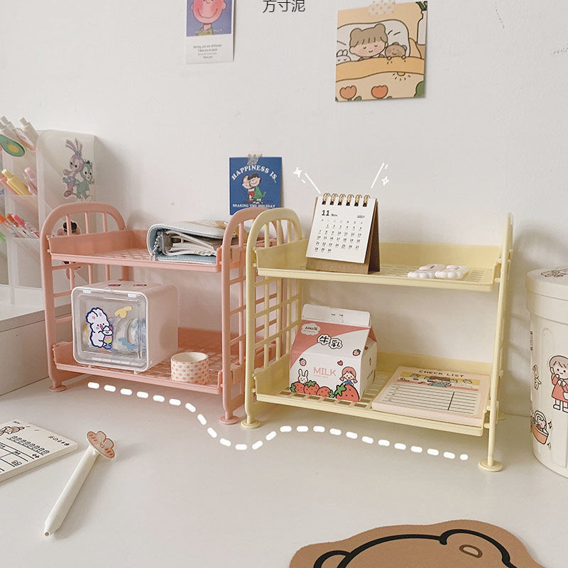 스토리지 랙 가정용 기숙사 화장품 데스크탑 주방 더블 레이어 스토리지 랙 일본 학생 문구 책상 보관 랙
