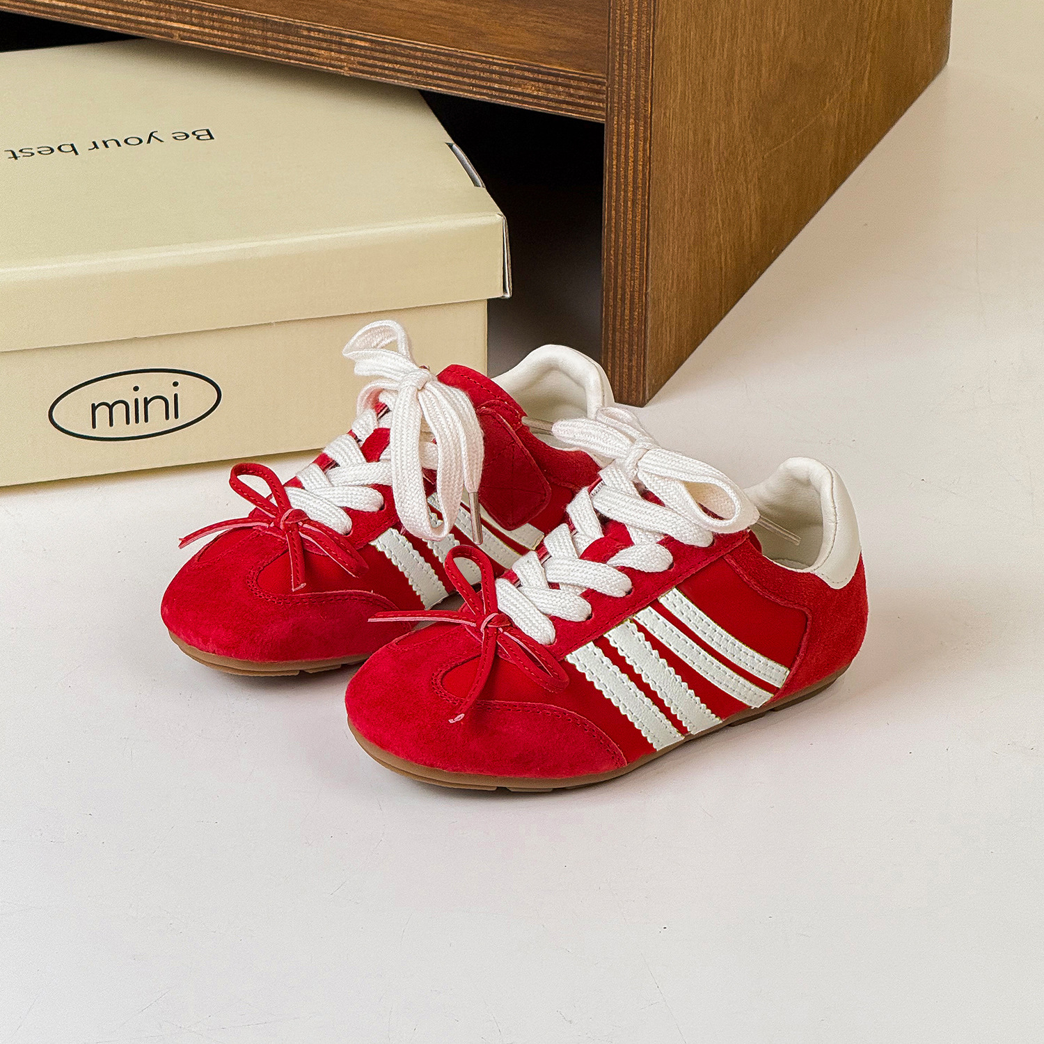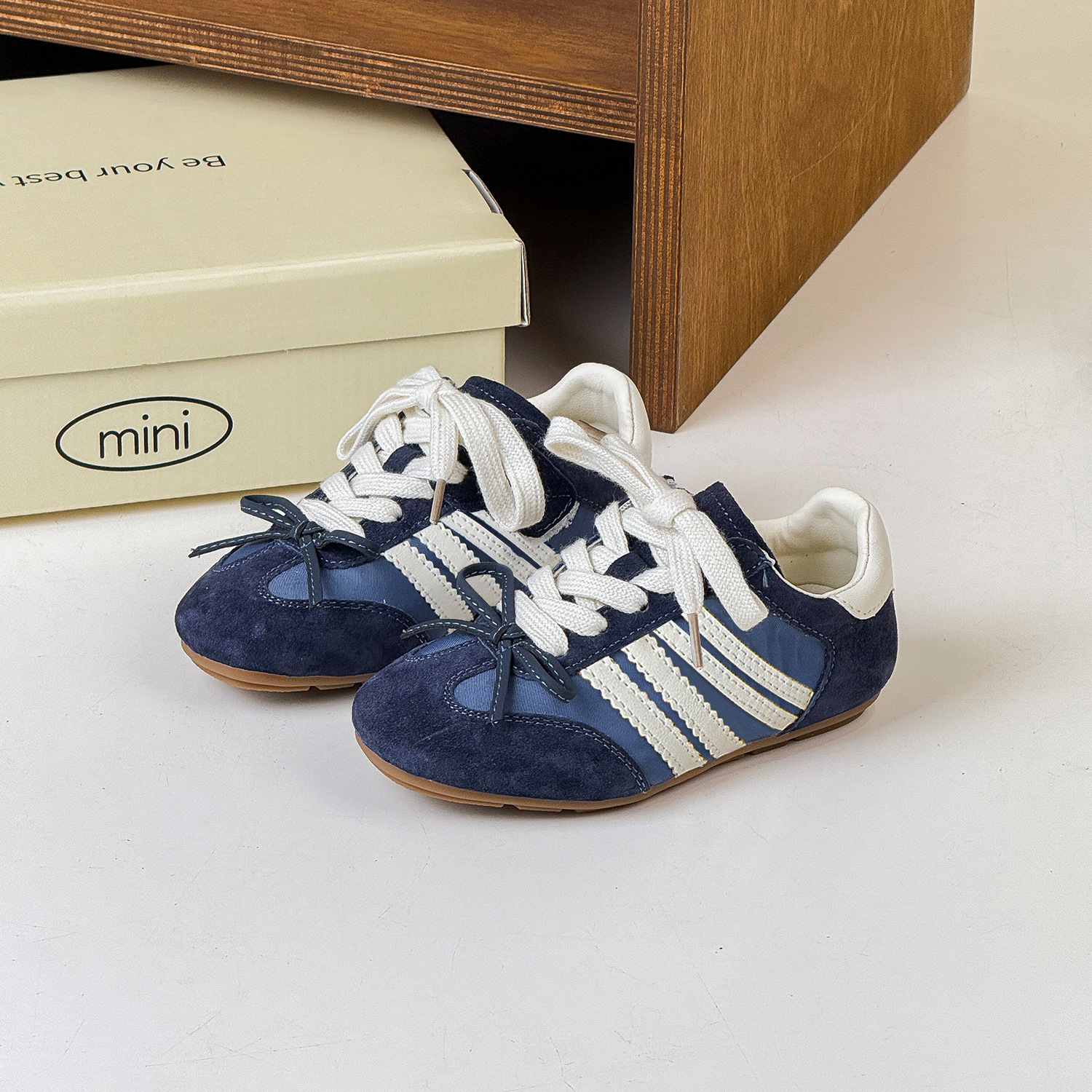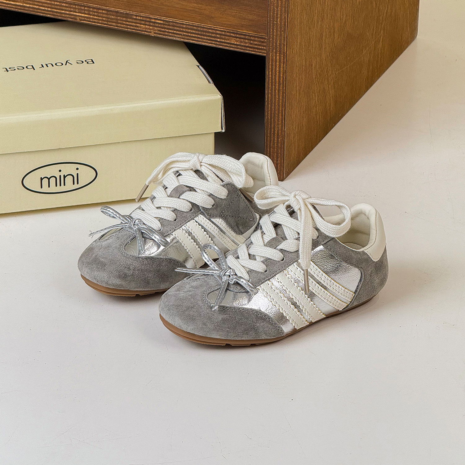 2025 가을 새로운 어린이 캐주얼 신발 한국 스타일 레트로 레이스 보우 소녀 독일 훈련 신발