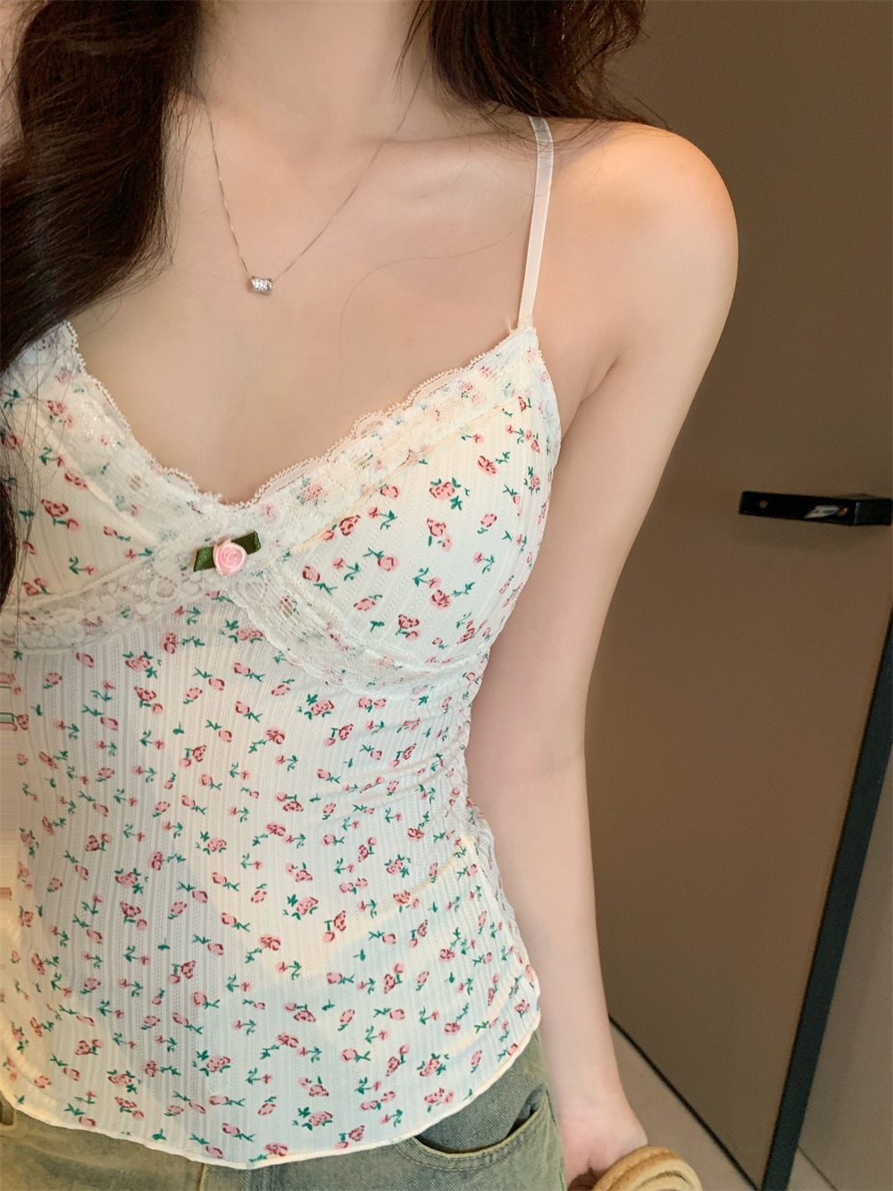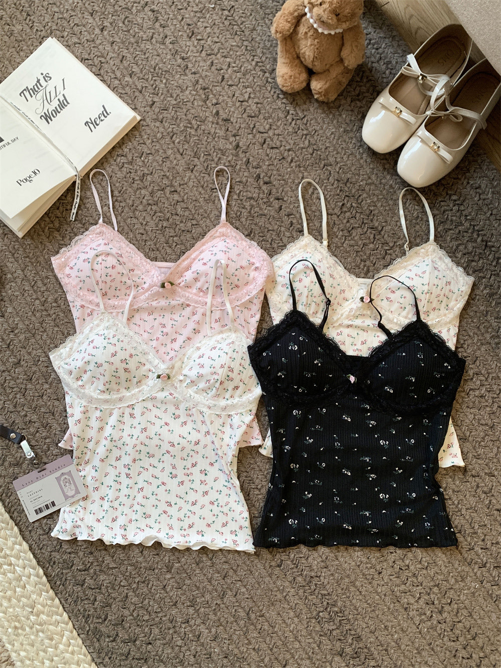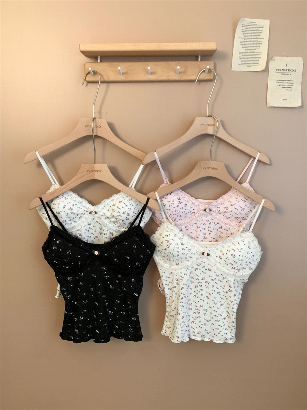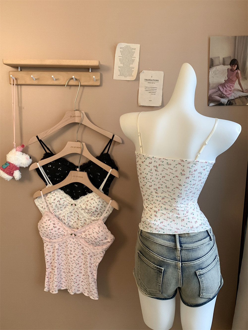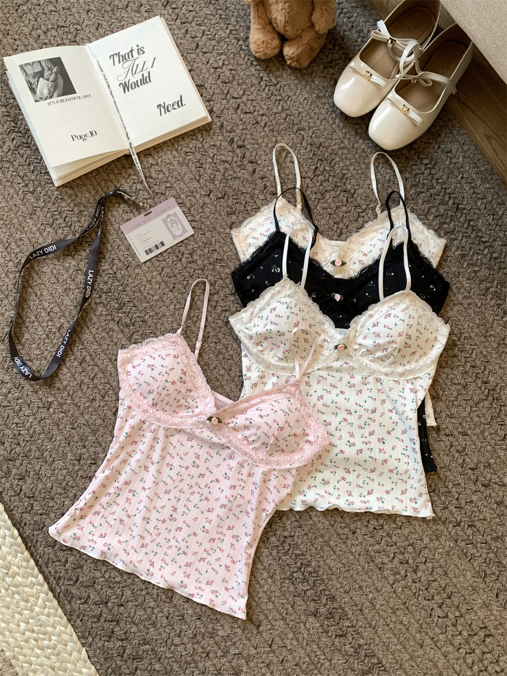 순수한 욕망 스타일 달콤한 레이스 꽃 슬링 조끼 여자 가슴 패드 외부 착용 내부 슬림 핏 슬림 아름다운 백탑 여성스토어 가기