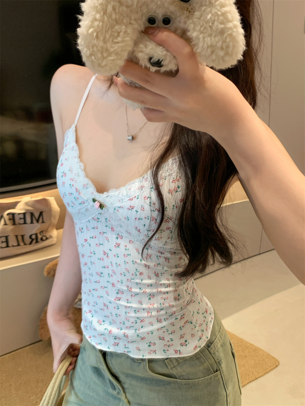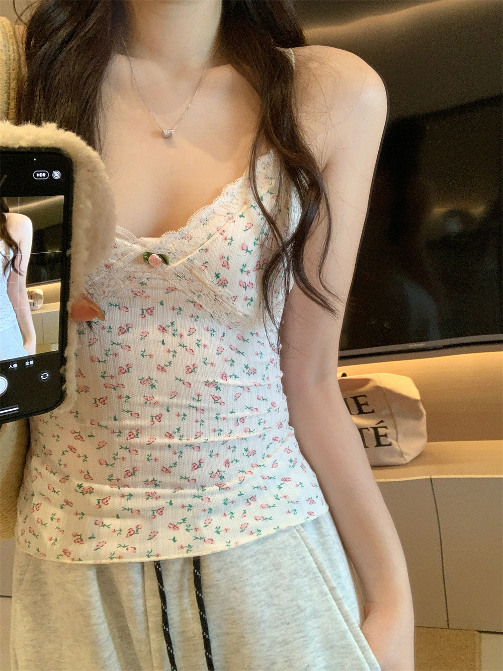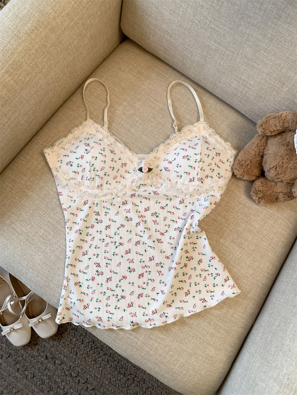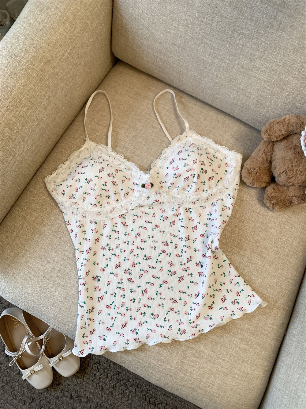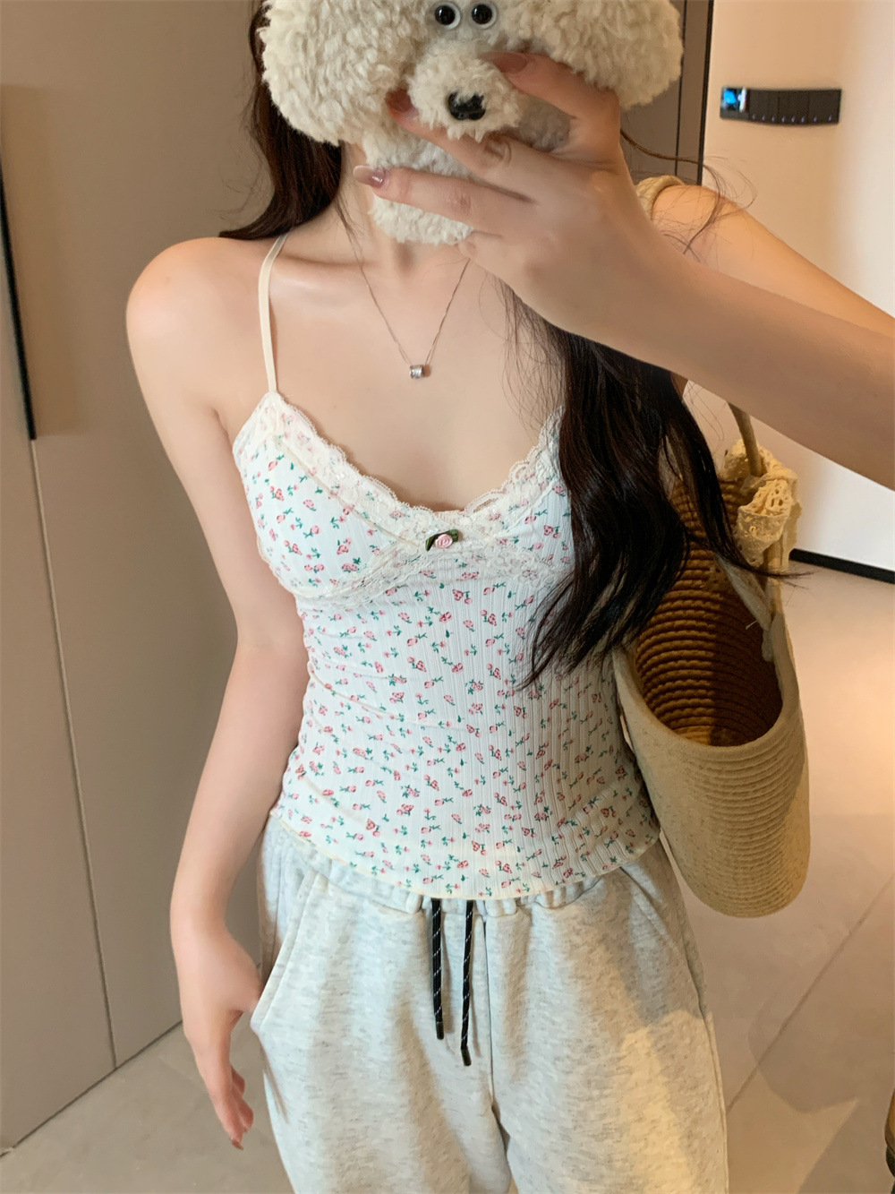 순수한 욕망 스타일 달콤한 레이스 꽃 슬링 조끼 여자 가슴 패드 외부 착용 내부 슬림 핏 슬림 아름다운 백탑 여성스토어 가기