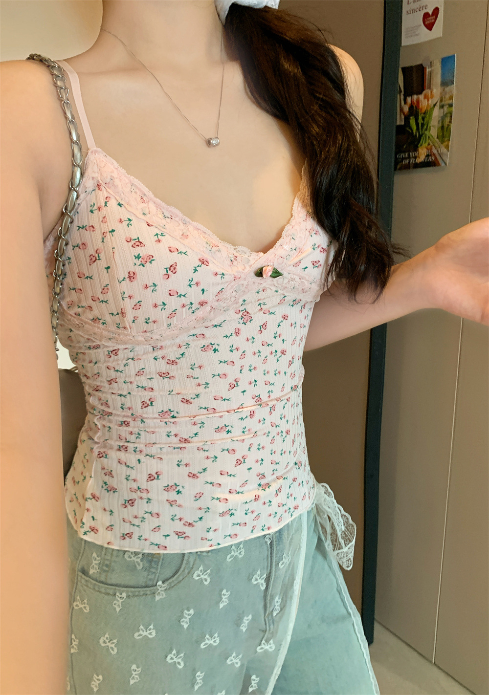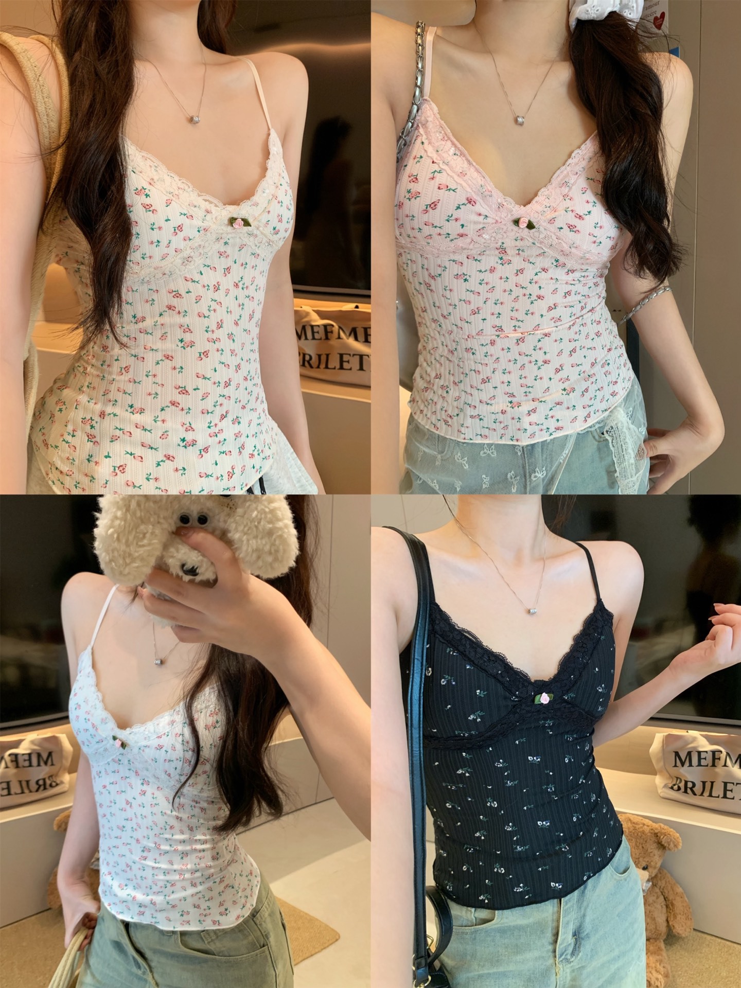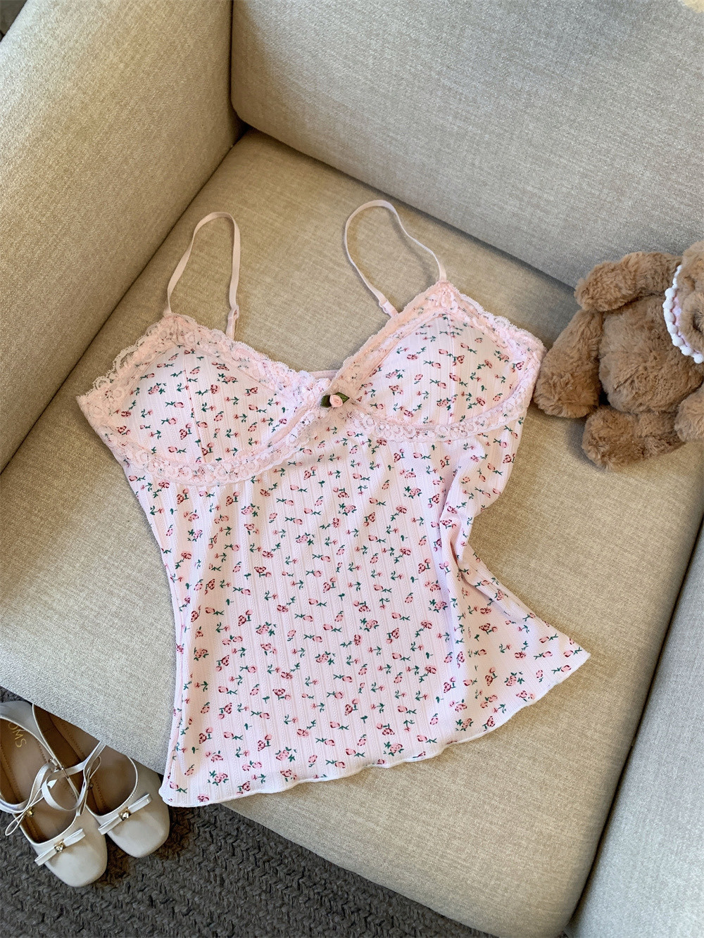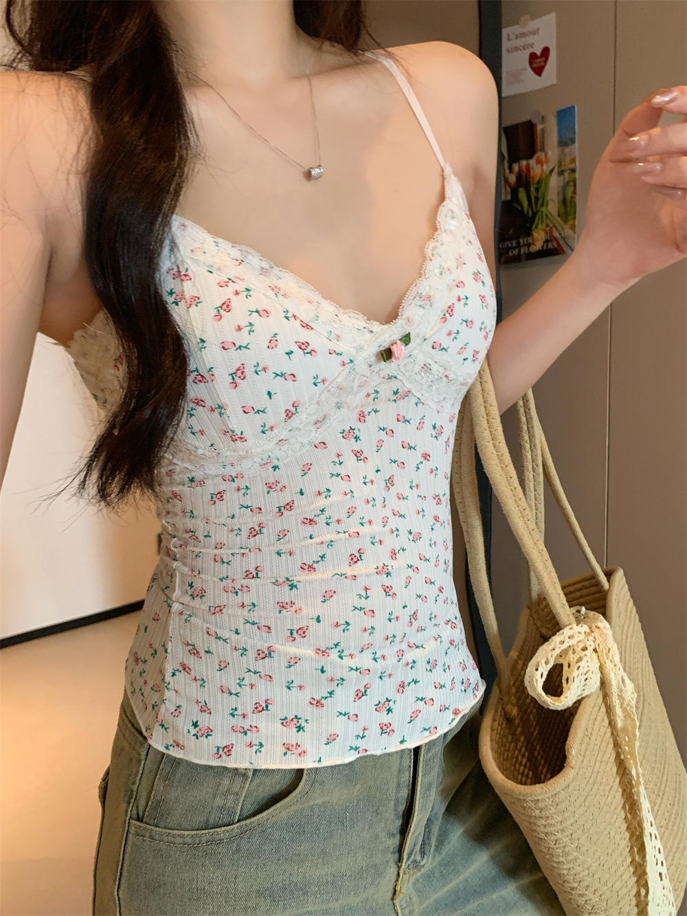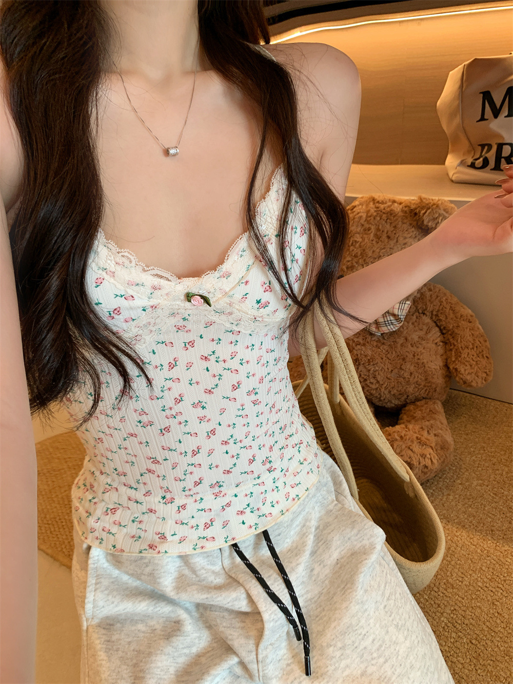 순수한 욕망 스타일 달콤한 레이스 꽃 슬링 조끼 여자 가슴 패드 외부 착용 내부 슬림 핏 슬림 아름다운 백탑 여성스토어 가기