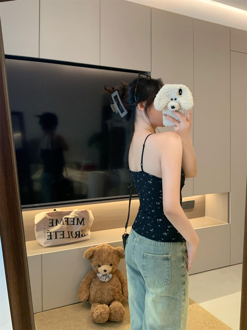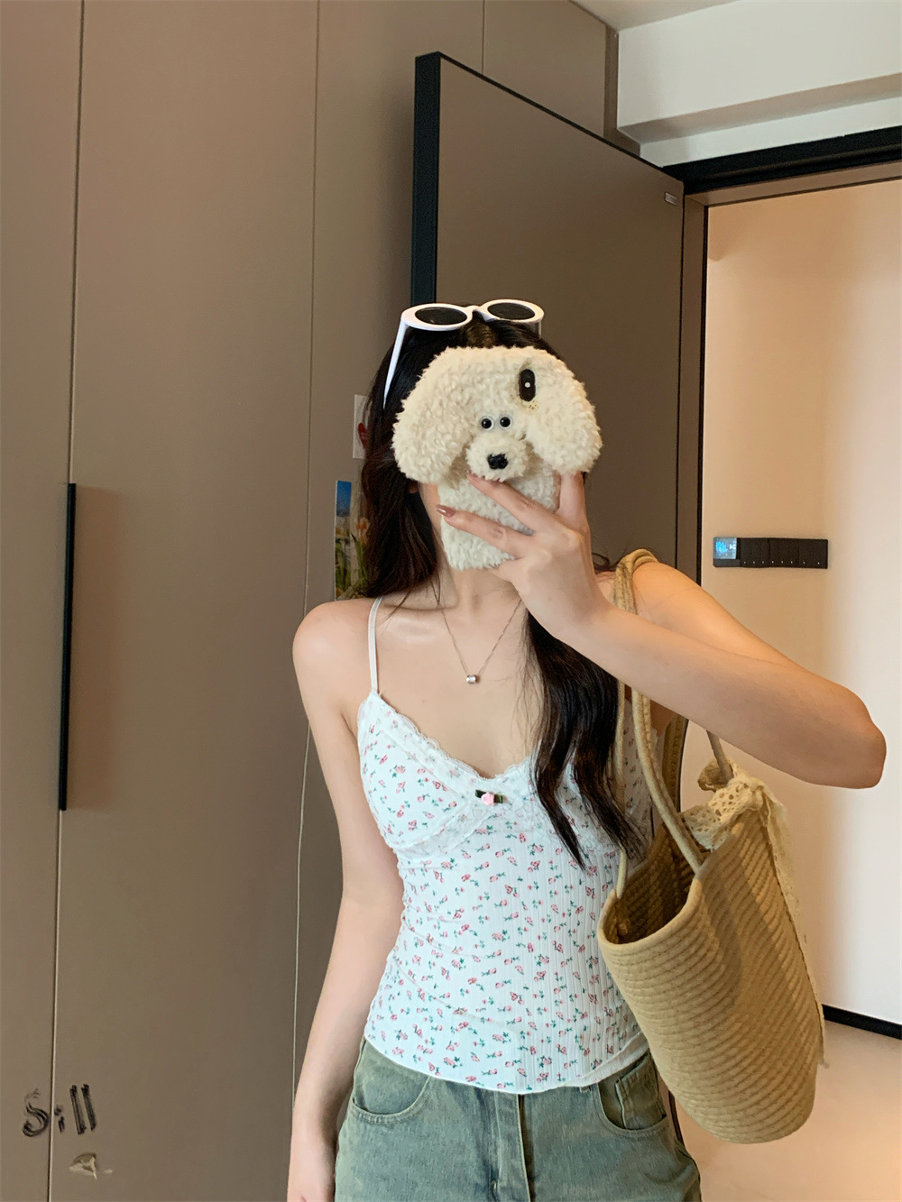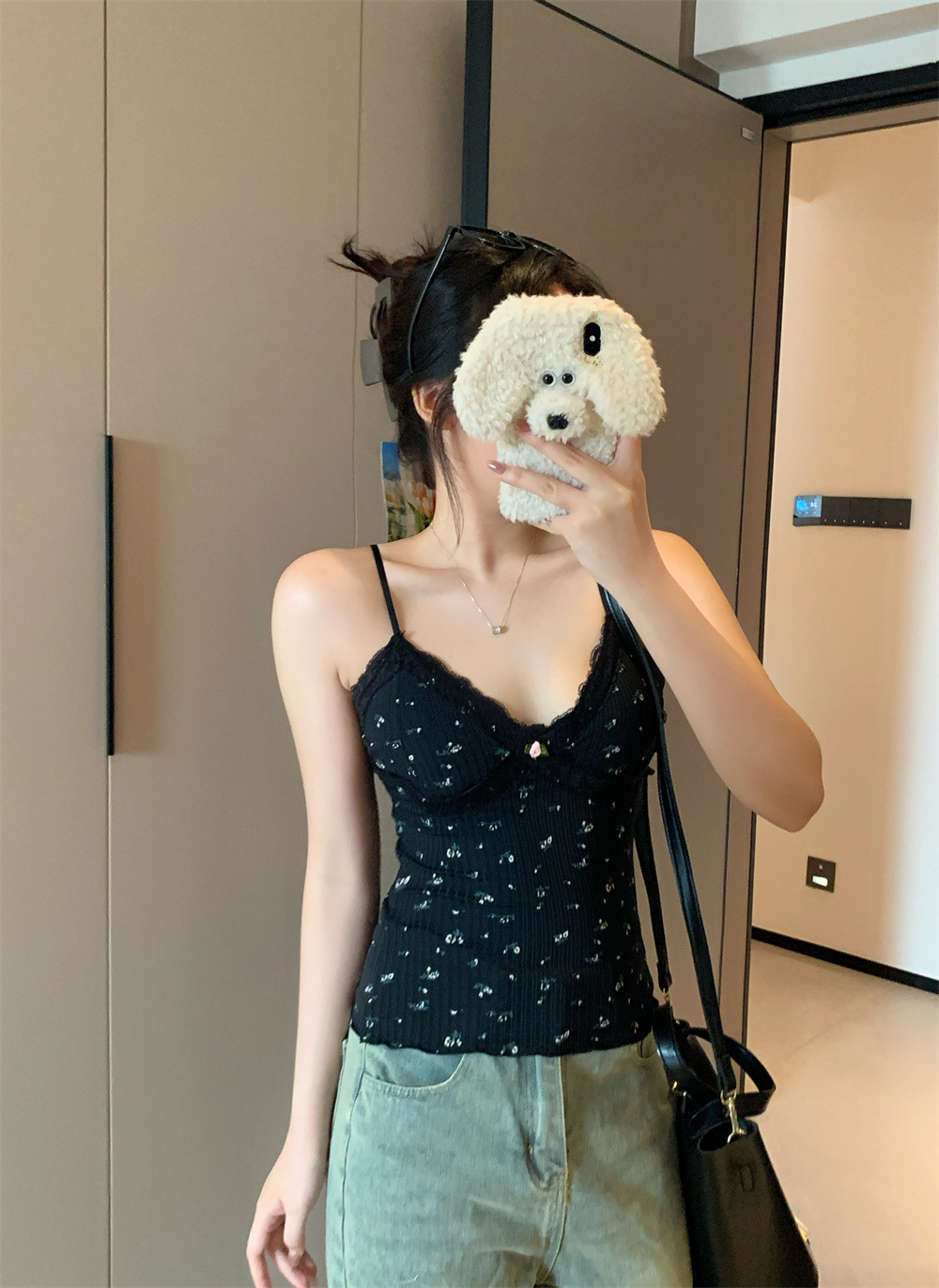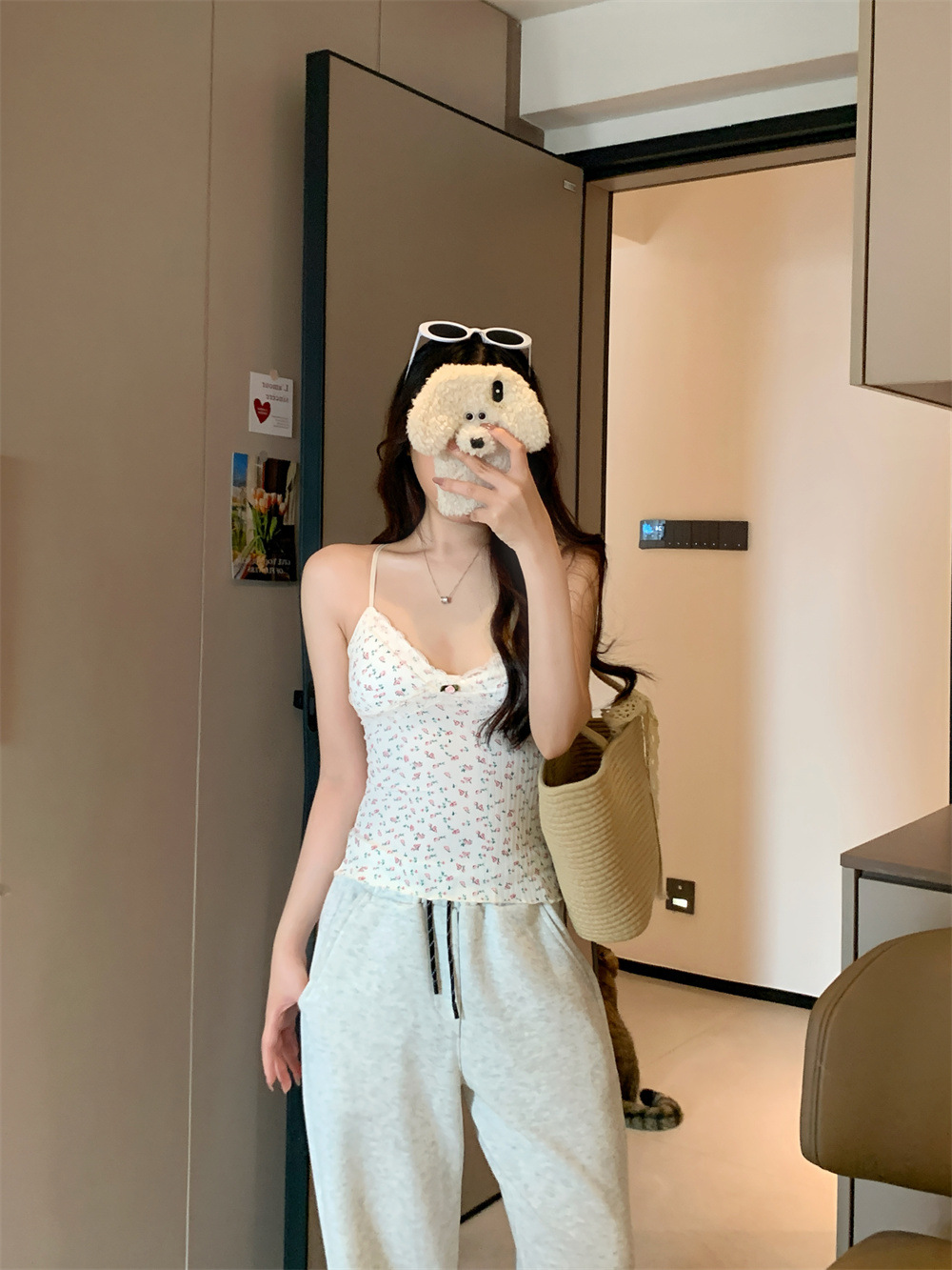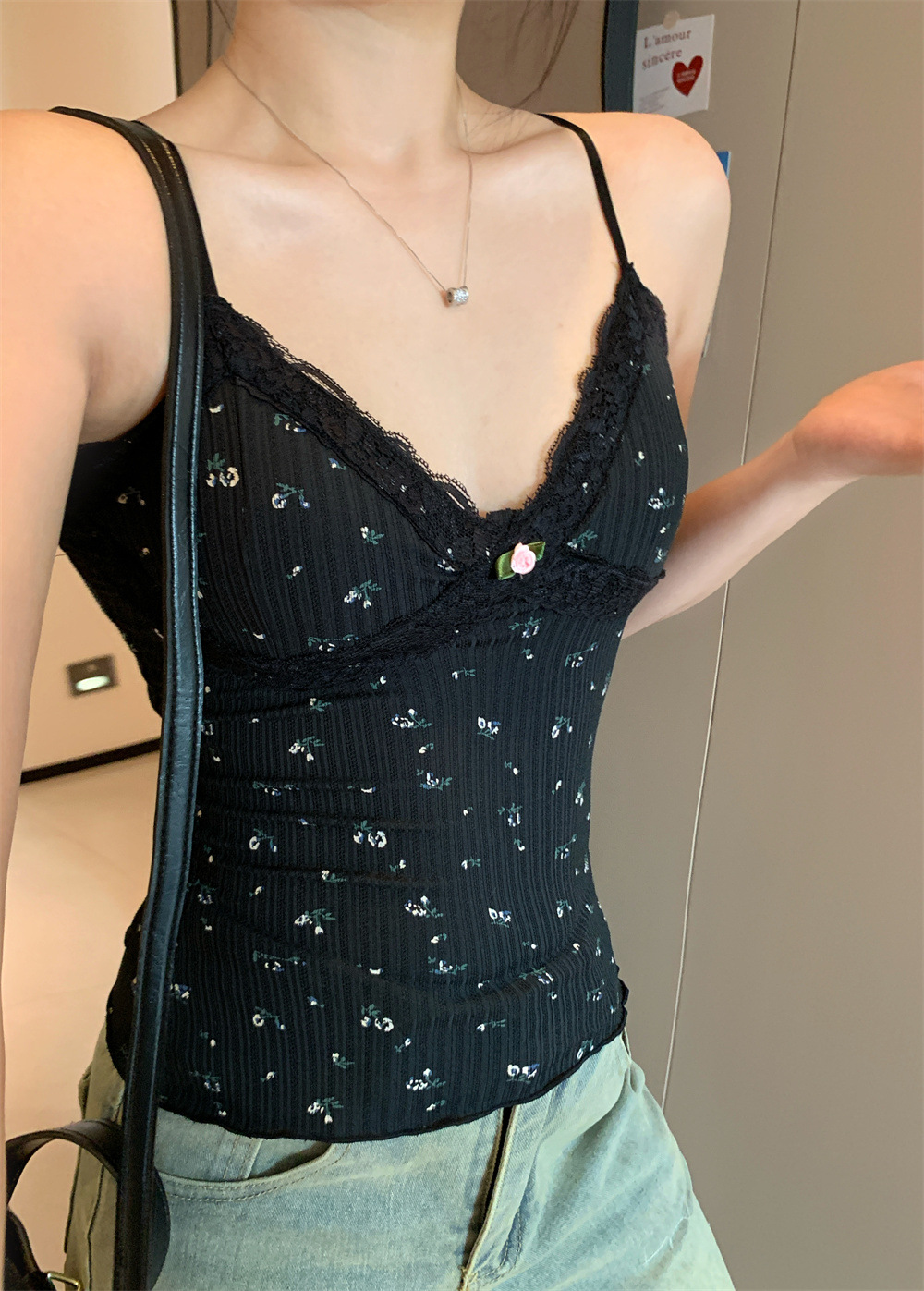 순수한 욕망 스타일 달콤한 레이스 꽃 슬링 조끼 여자 가슴 패드 외부 착용 내부 슬림 핏 슬림 아름다운 백탑 여성스토어 가기