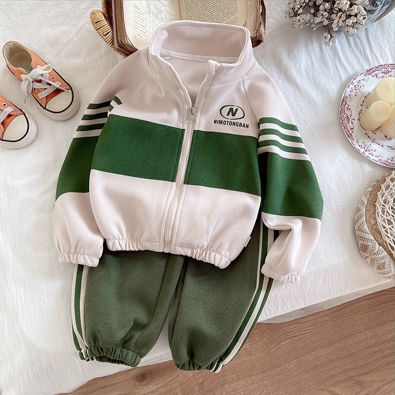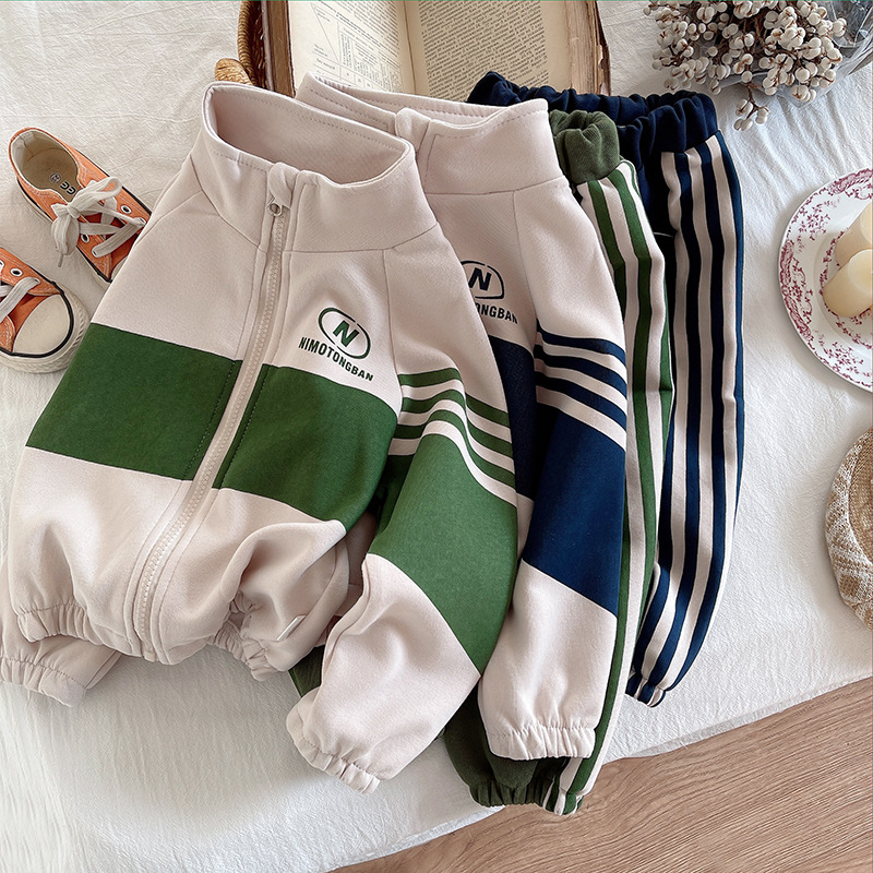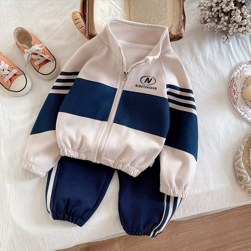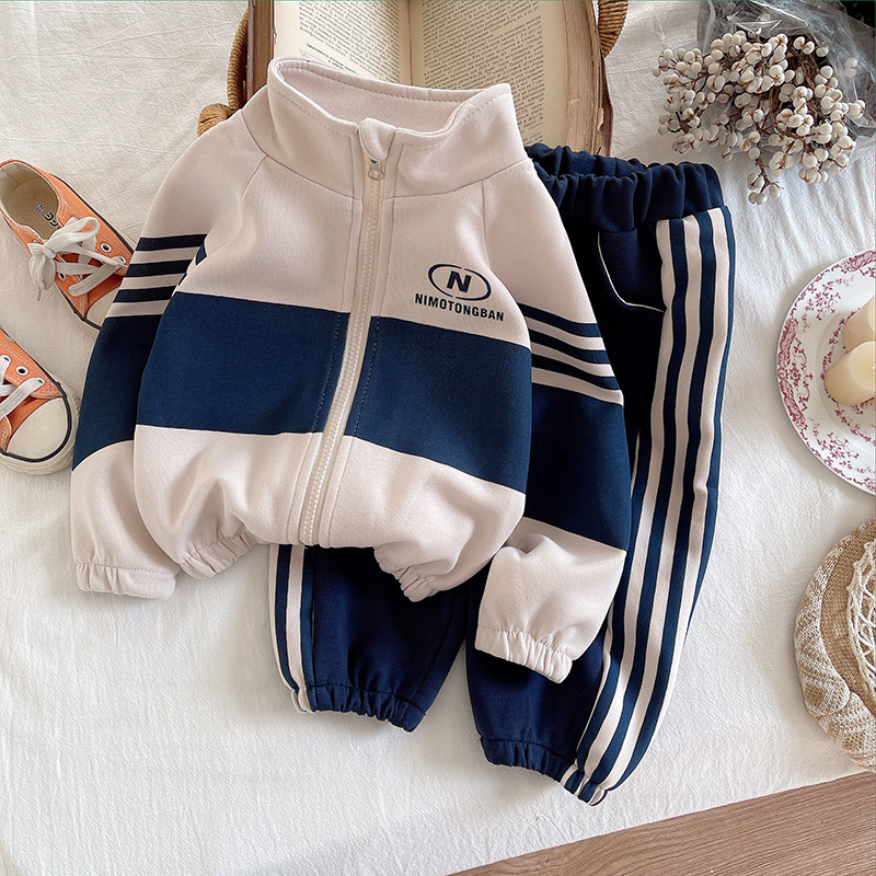 소년 가을 세트 2025 새로운 아기 소녀 봄과 가을 가짜 투피스 티셔츠 어린이 스포츠 바지 투피스 세트 패션스토어 가기