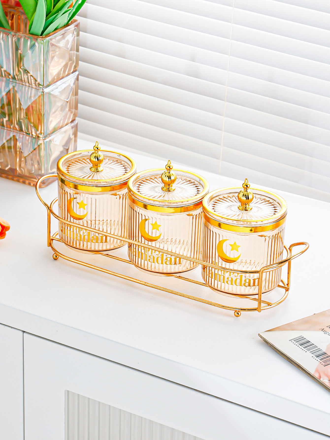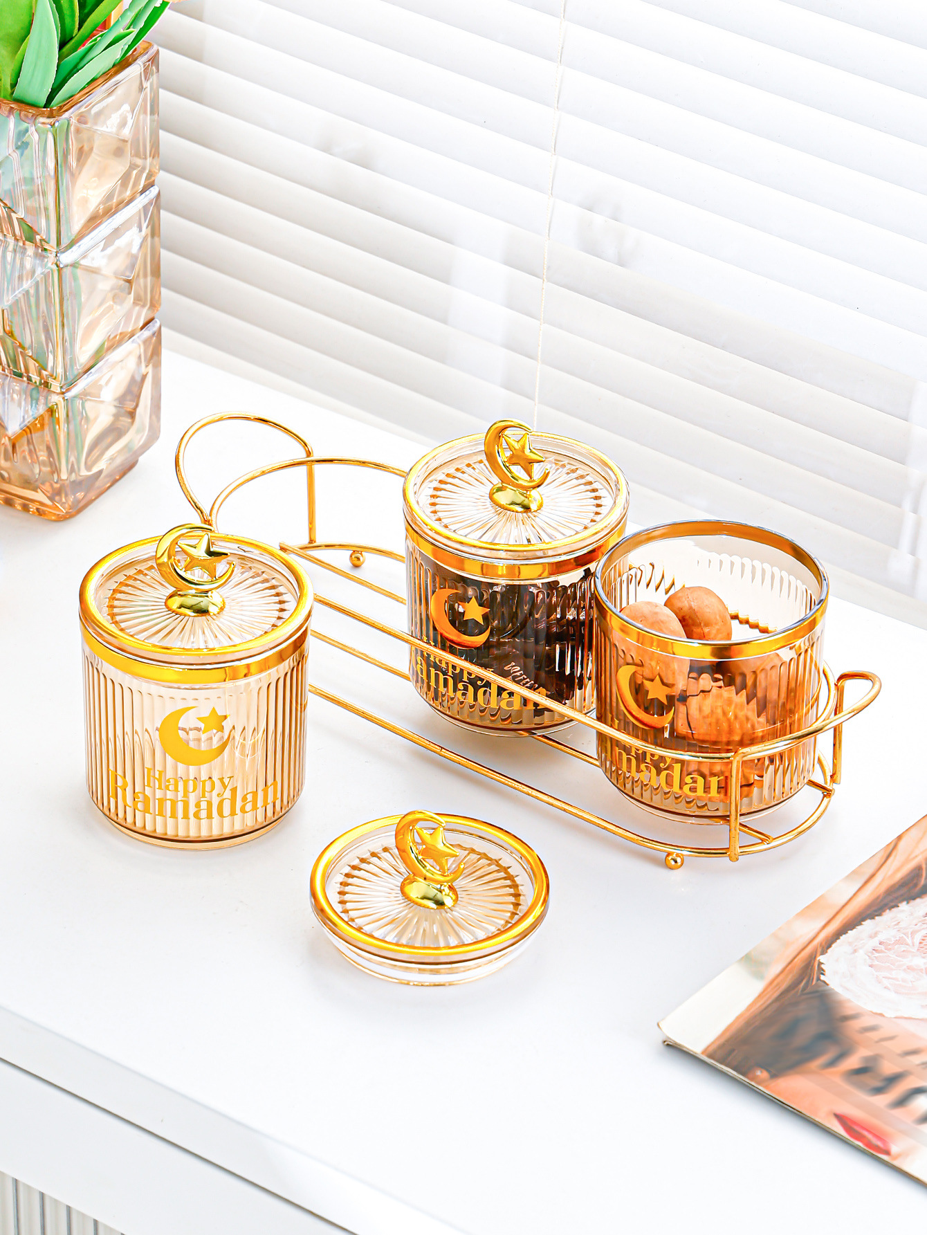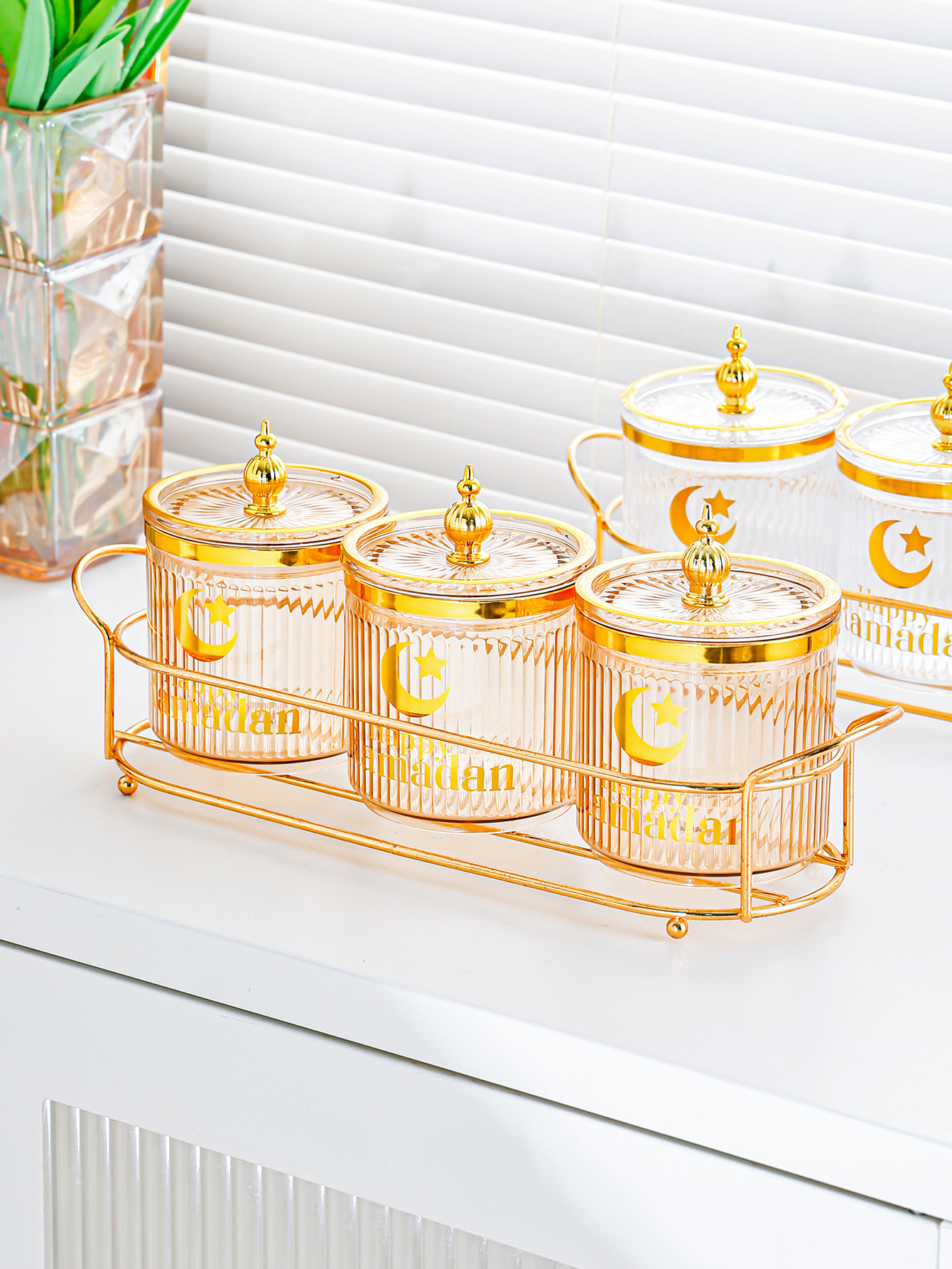 • Xingyue 투명 원형 캔 골드 랙 3칸 - Xingyue 핸들