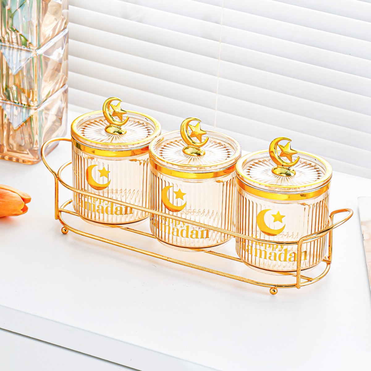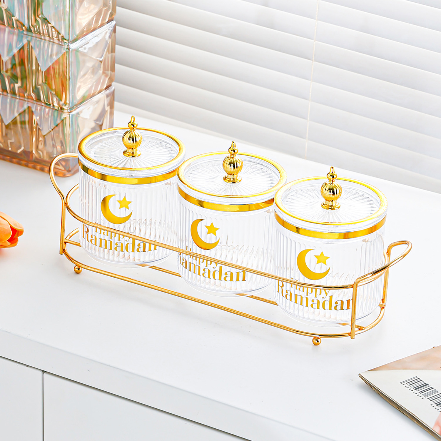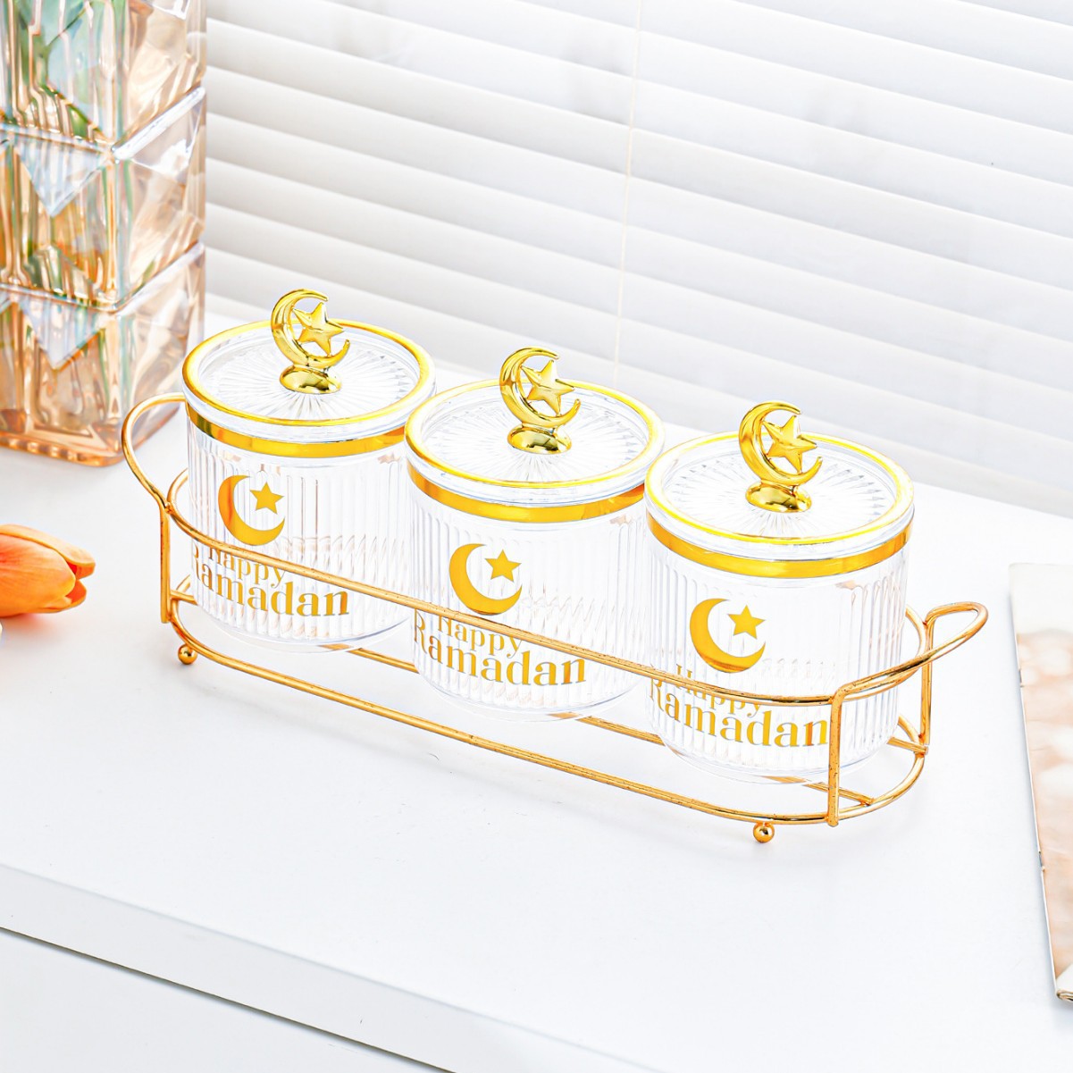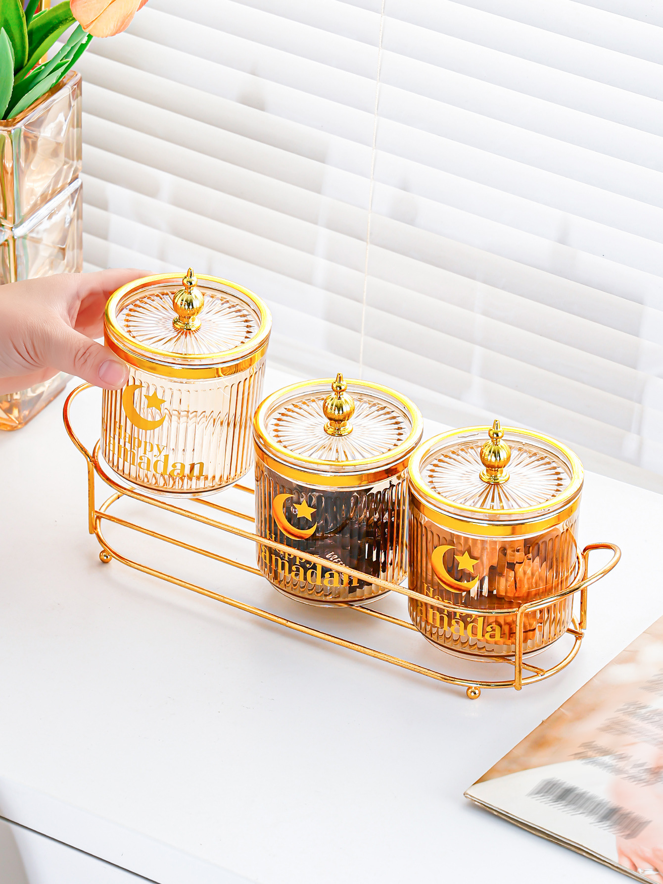 • Xingyue 투명 원형 캔 골드 랙 3칸 - Xingyue 핸들