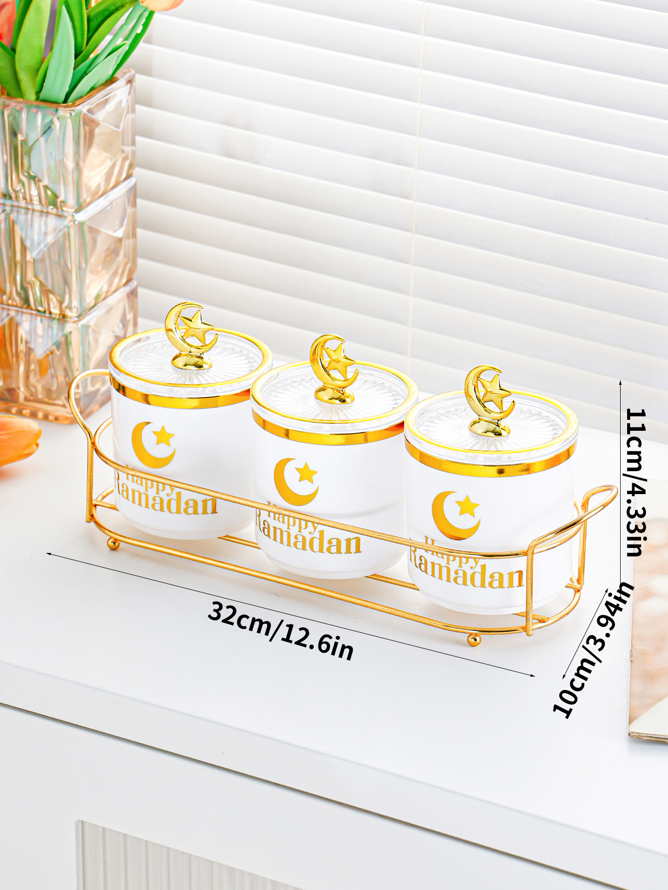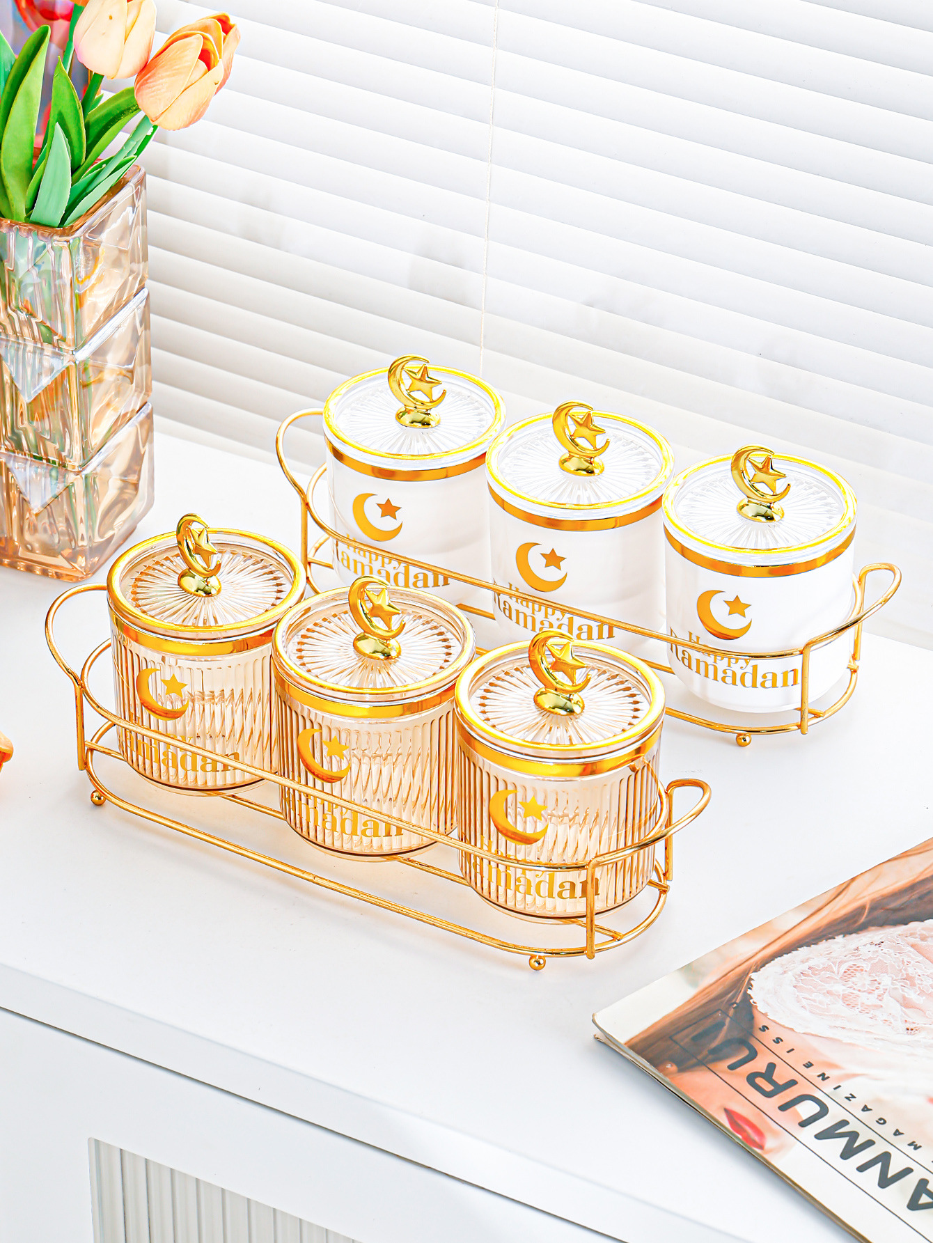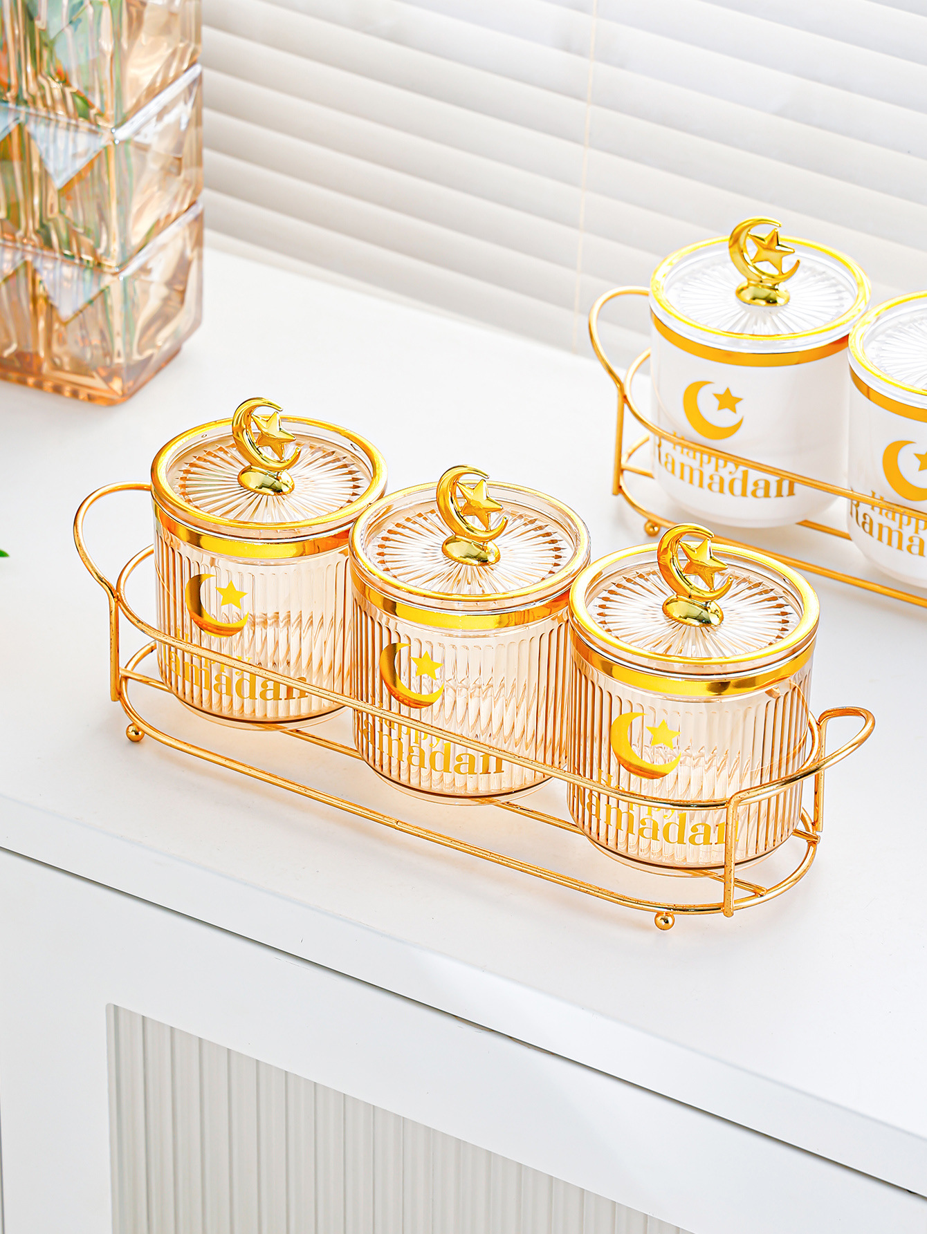 • 별과 달 호박색 원형 항아리 금 선반 3칸 - 타워 비드 손잡이