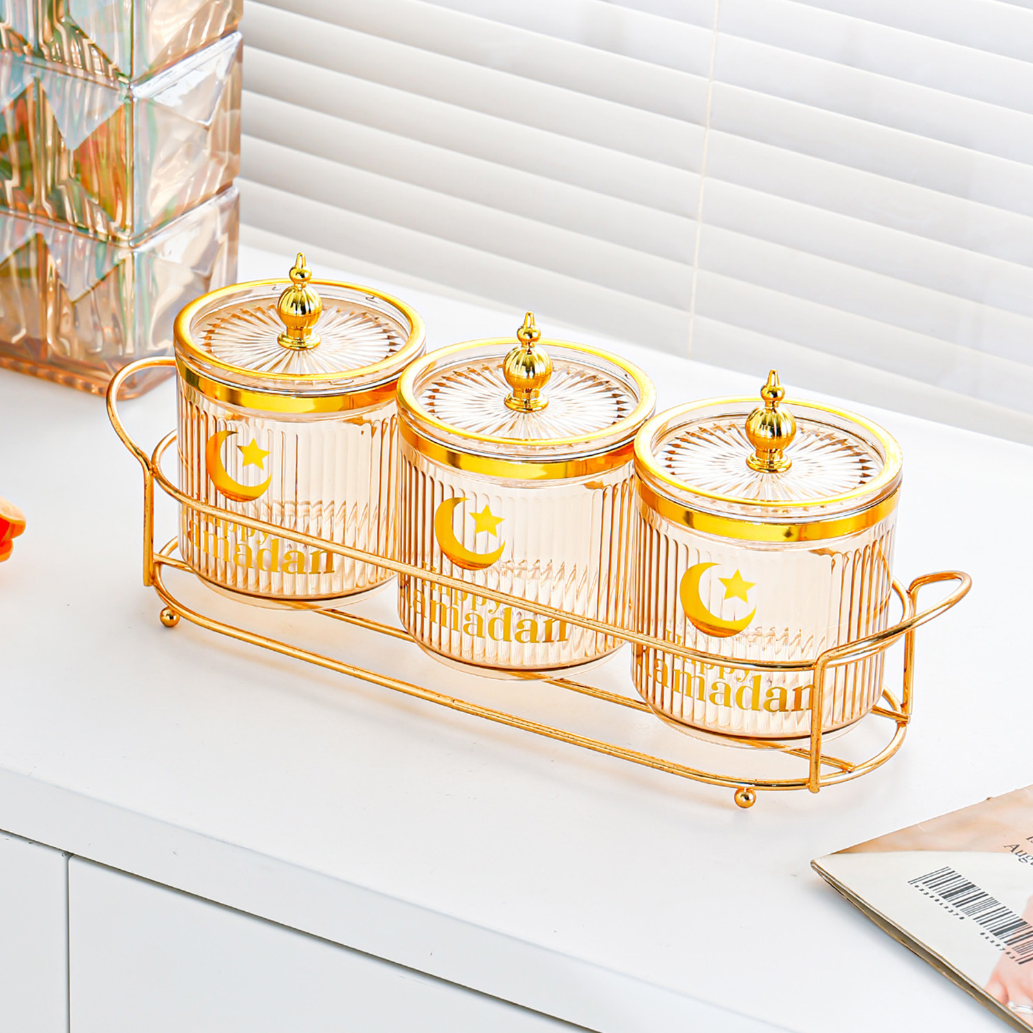 • Xingyue 호박색 원형 항아리 금 선반 3칸 - Xingyue 손잡이