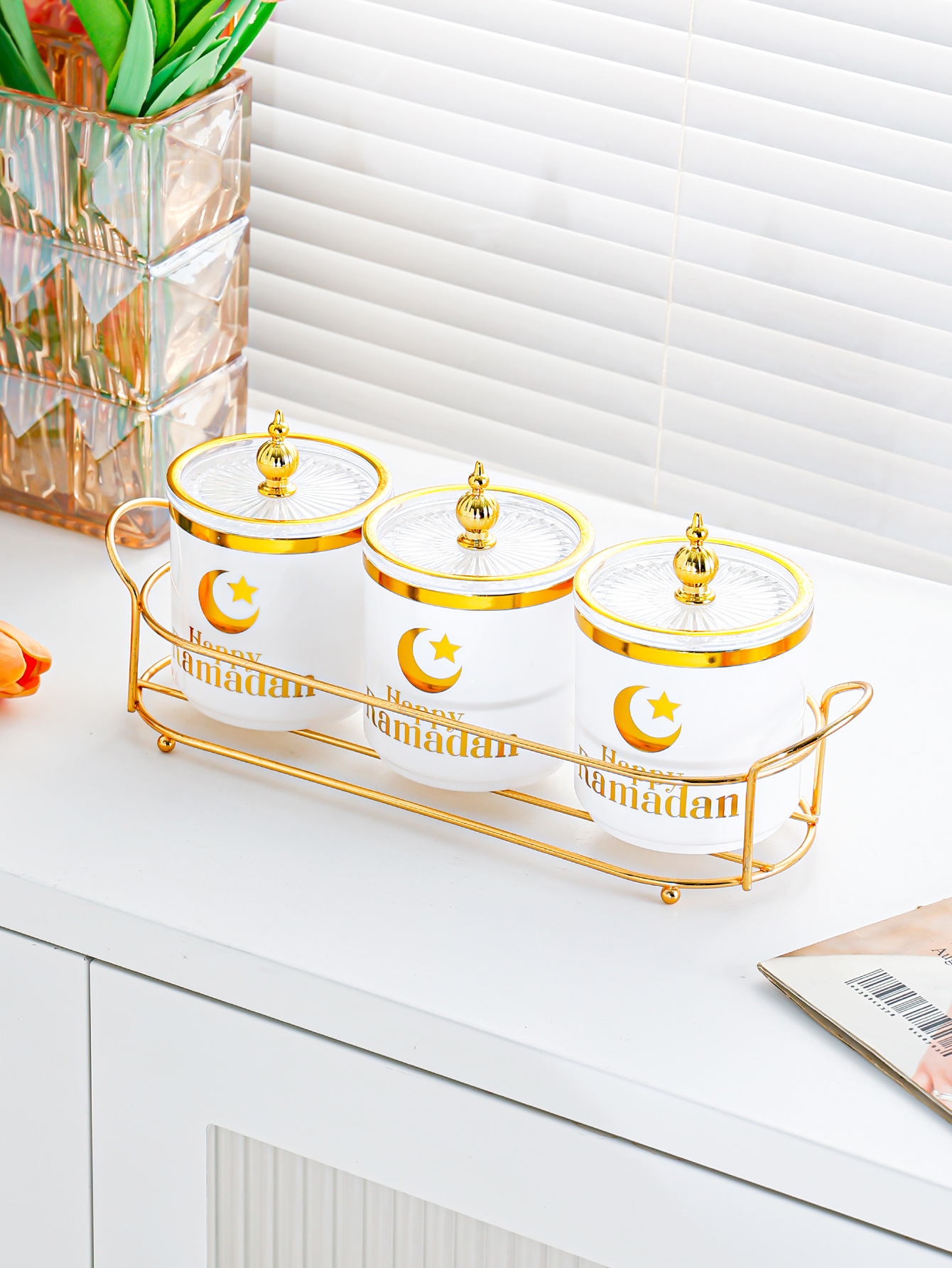 • Xingyue 흰색 원형 캔 골드 랙 3칸 - Xingyue 핸들