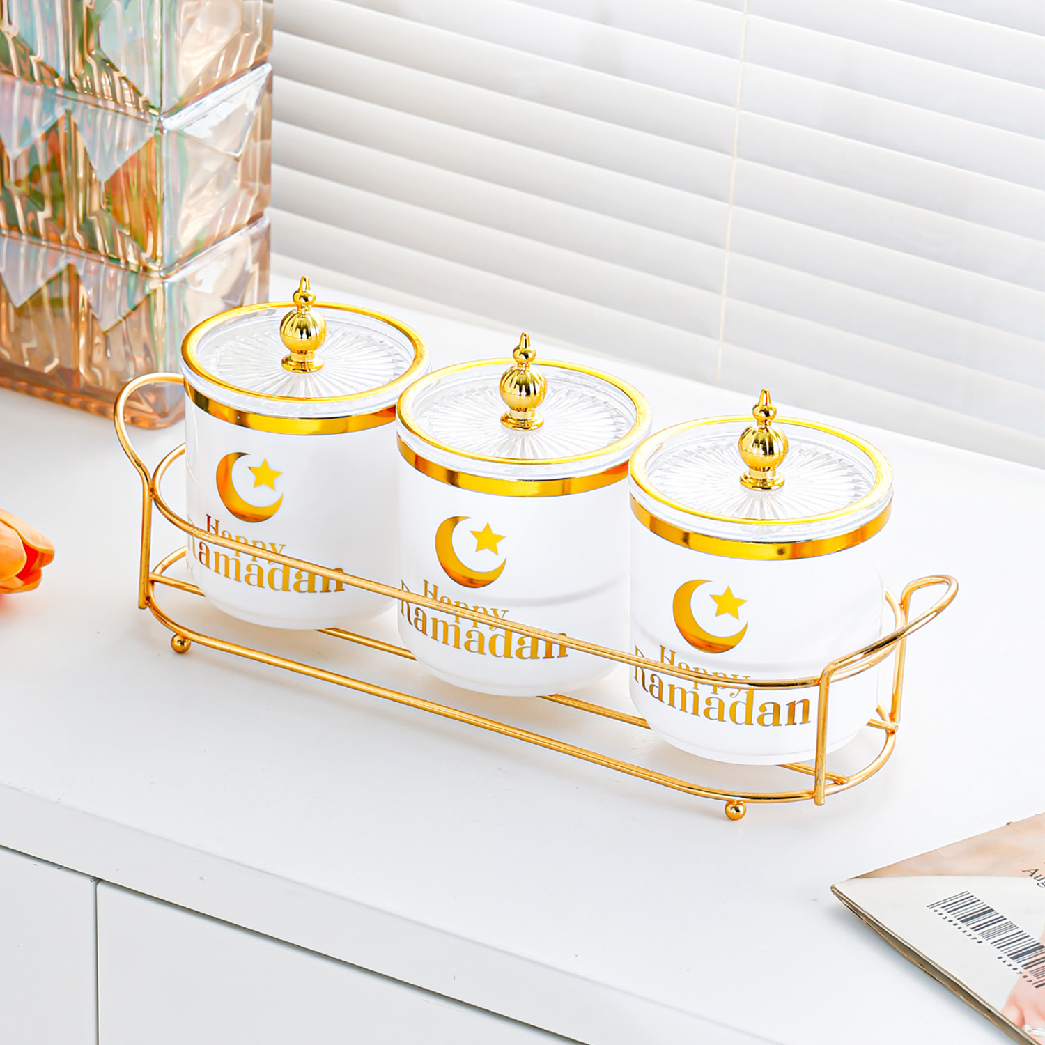 • Xingyue 흰색 원형 캔 골드 랙 3 그리드 타워 비드 핸들
