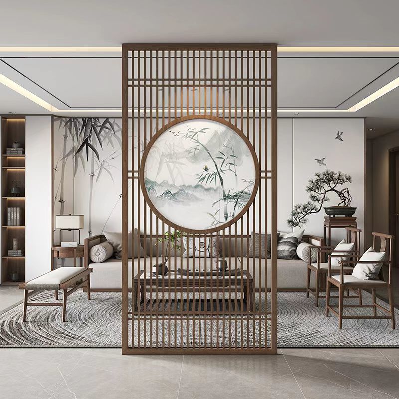 새로운 중국 스타일 스크린 파티션 거실 자수 입구 출입구 블록 입구 중공 나무 격자 현대 간단한 단단한 나무