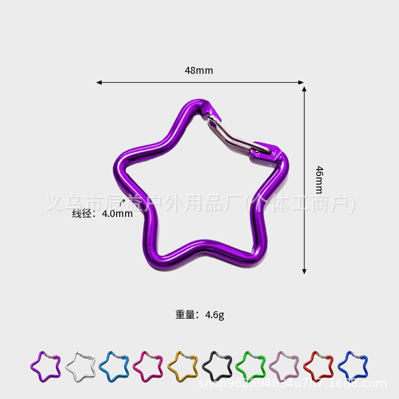 오각형 등산 버클, 컬러 스타 알루미늄 합금 와이어 버클, 야외 연결 링, 가방 및 의류 걸이 버클