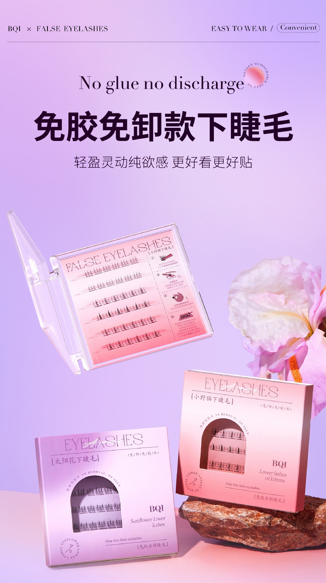 징루이 무접착 속눈썹, 해바라기, 작은 초승달, 작은 야생 고양이 속눈썹, 자연스러운 투명 줄기, 무접착 자가 접착 속눈썹