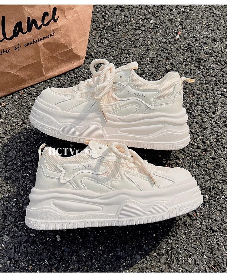 여성을위한 두꺼운 밑창 높이 증가 학생 흰색 신발 2025 새로운 여름 통기성 메쉬 패널 신발 여성 오리지널 스포츠 및 캐주얼 신발스토어 가기