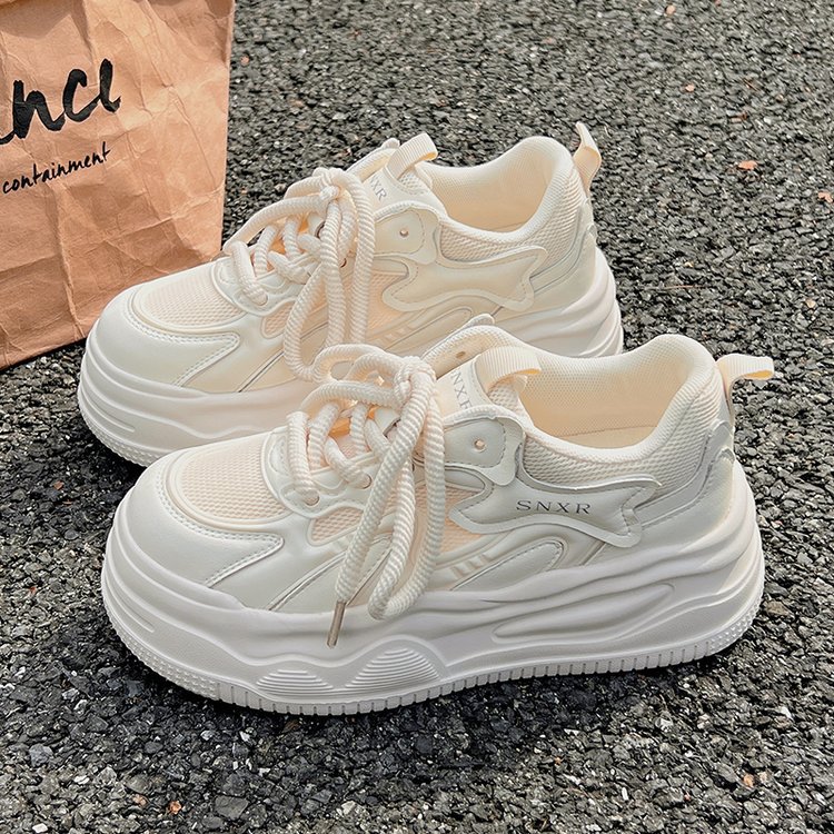 여성을위한 두꺼운 밑창 높이 증가 학생 흰색 신발 2025 새로운 여름 통기성 메쉬 패널 신발 여성 오리지널 스포츠 및 캐주얼 신발