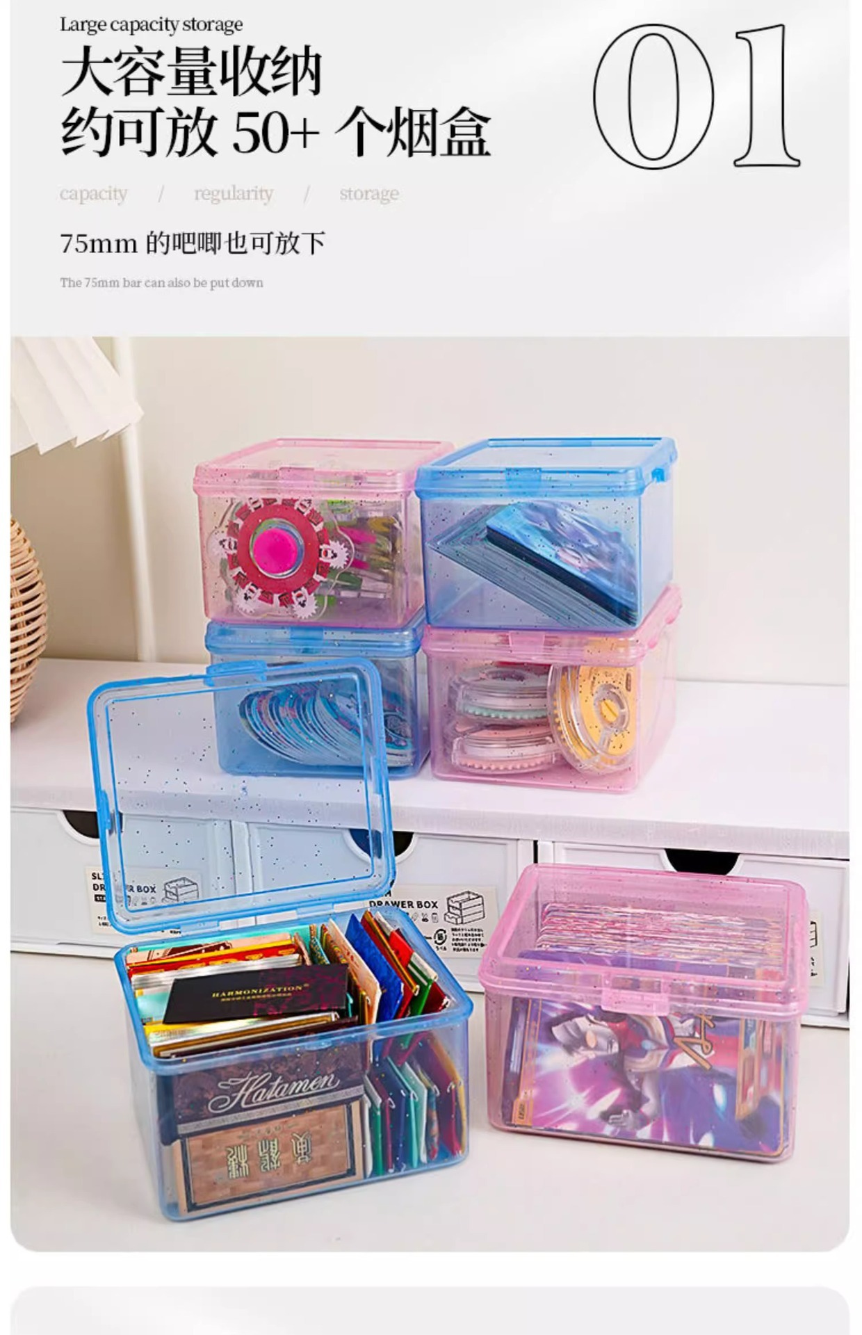 카드 저장 상자 데스크탑 플라스틱 상자 어린이 작은 카드 변경 분류 상자 방진 보관 상자 뚜껑스토어 가기