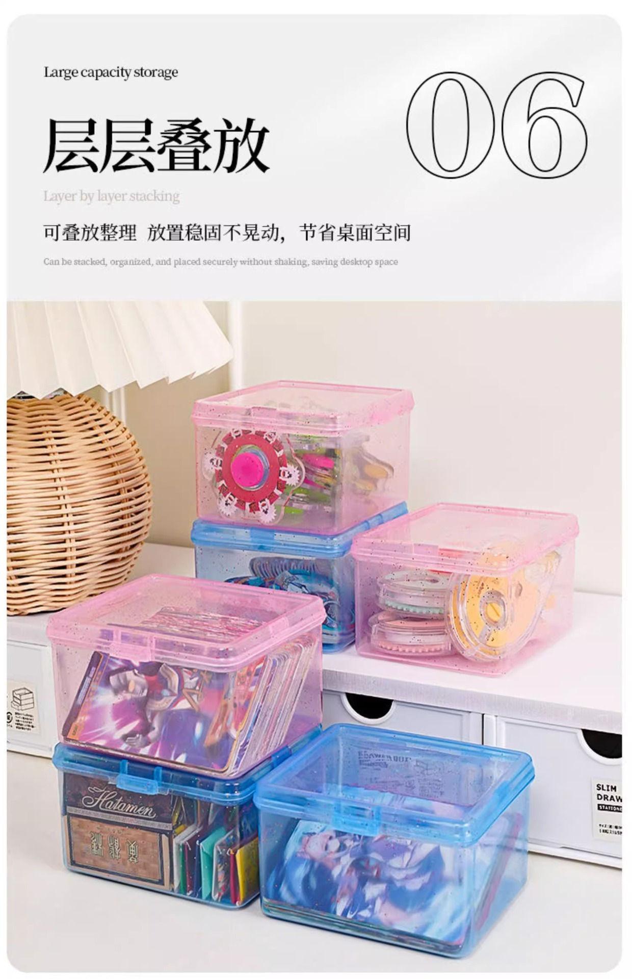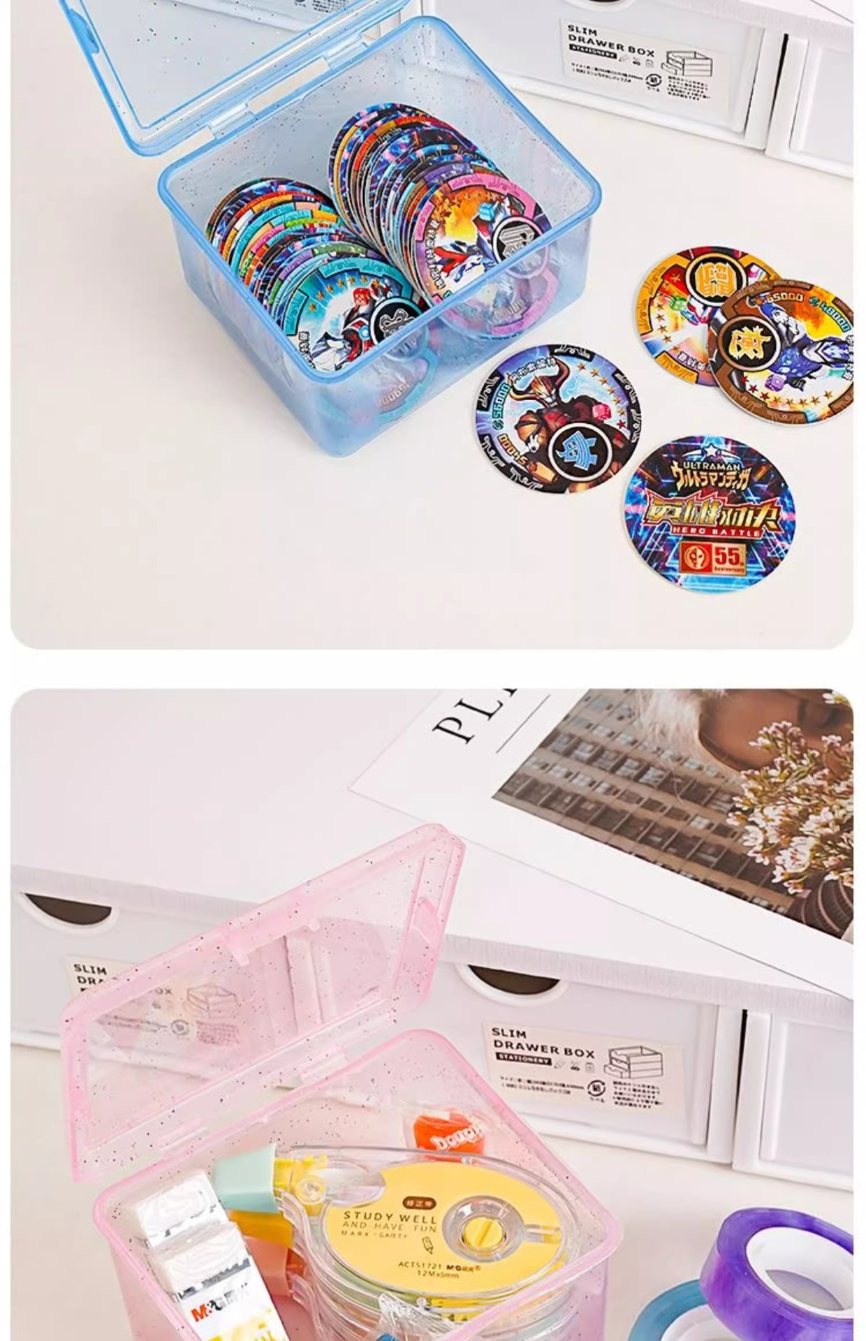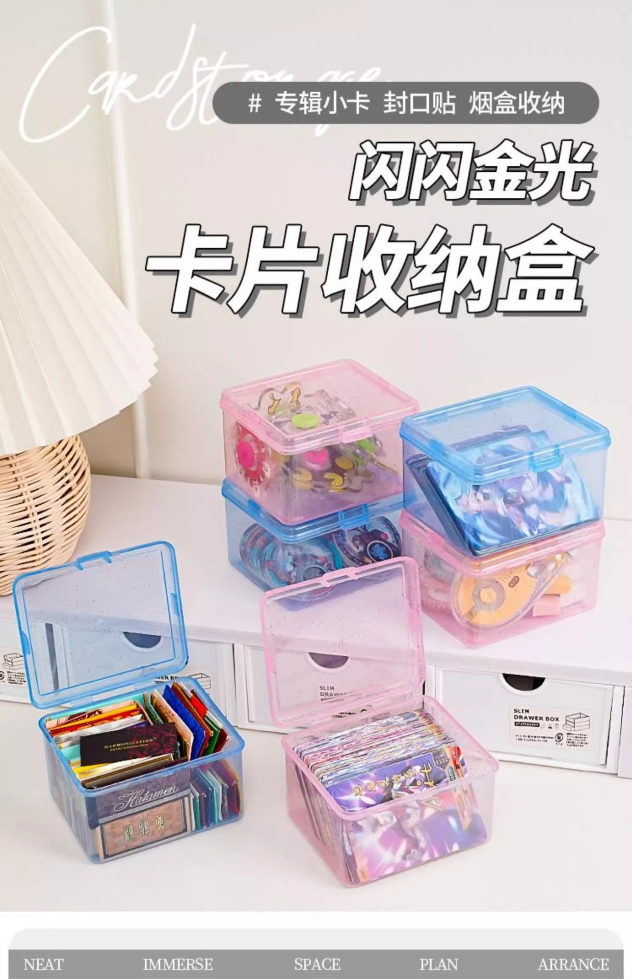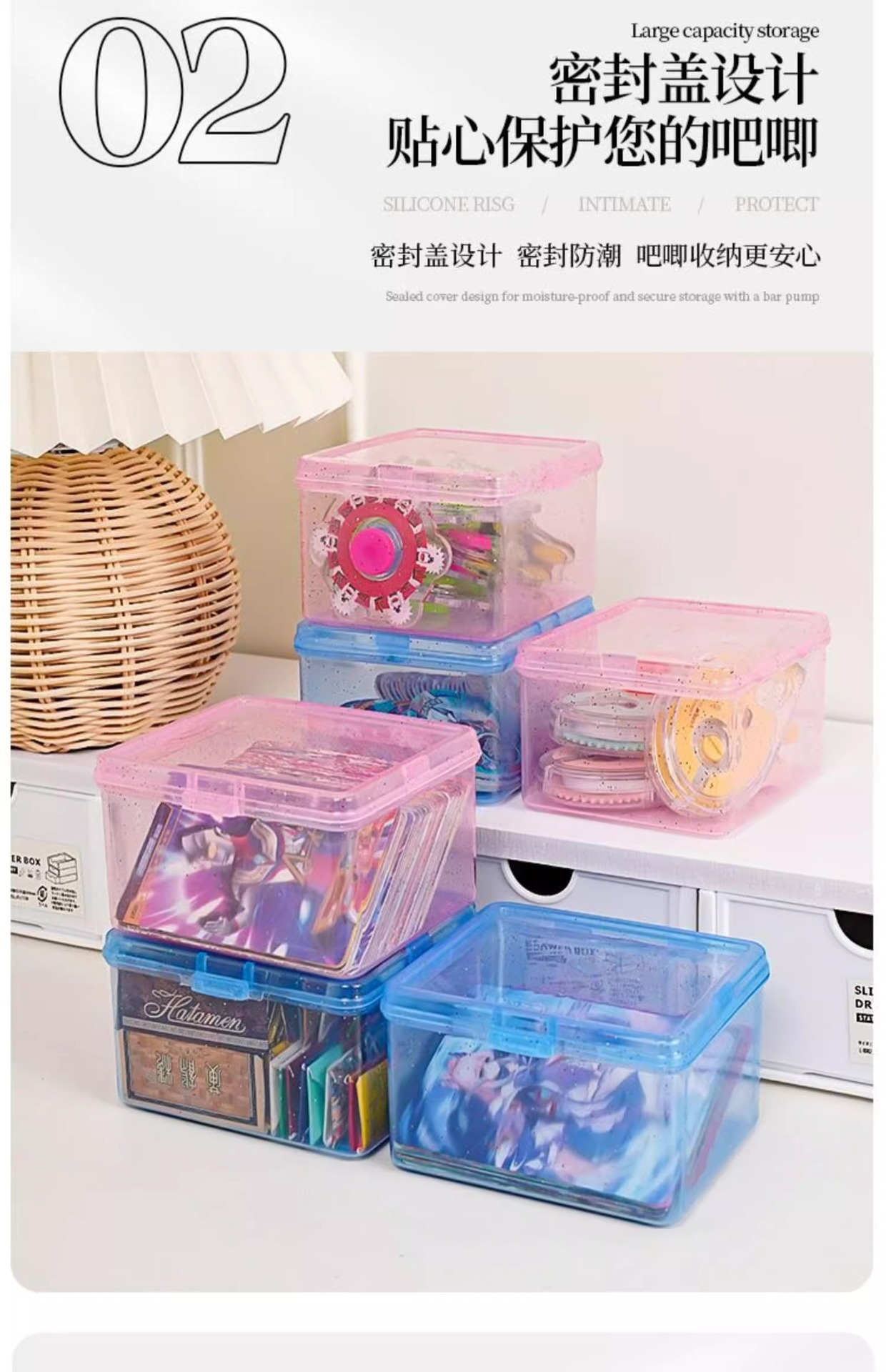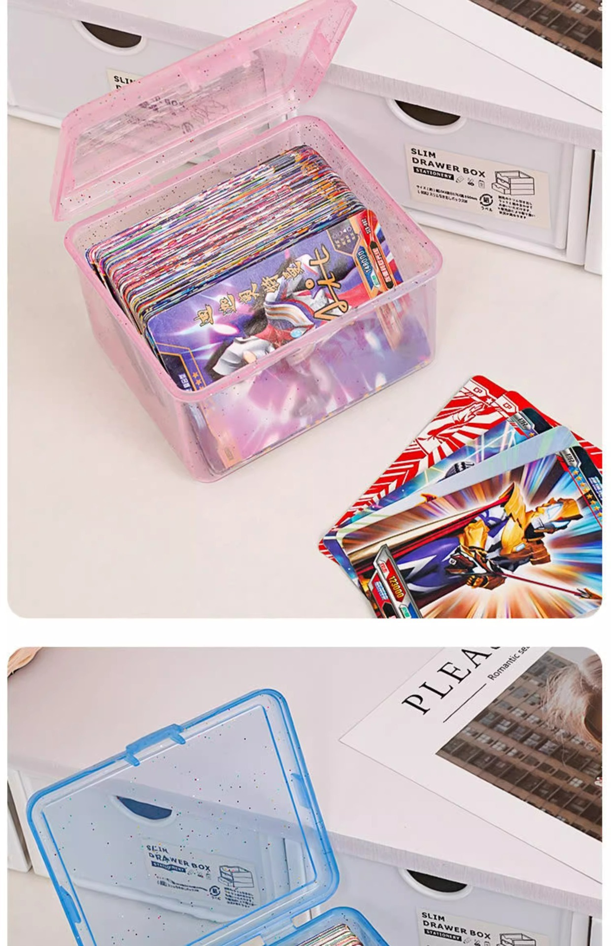 카드 저장 상자 데스크탑 플라스틱 상자 어린이 작은 카드 변경 분류 상자 방진 보관 상자 뚜껑