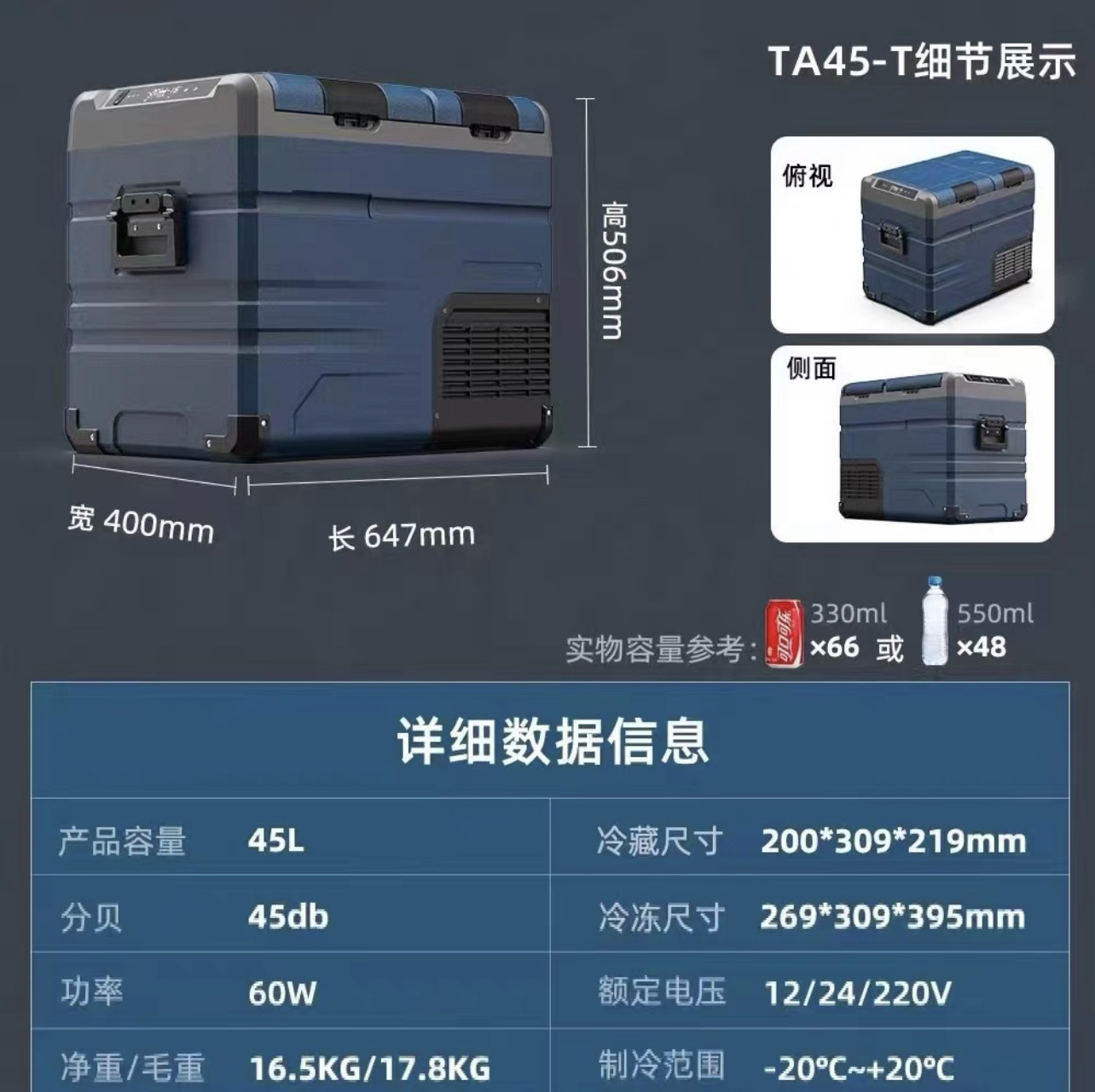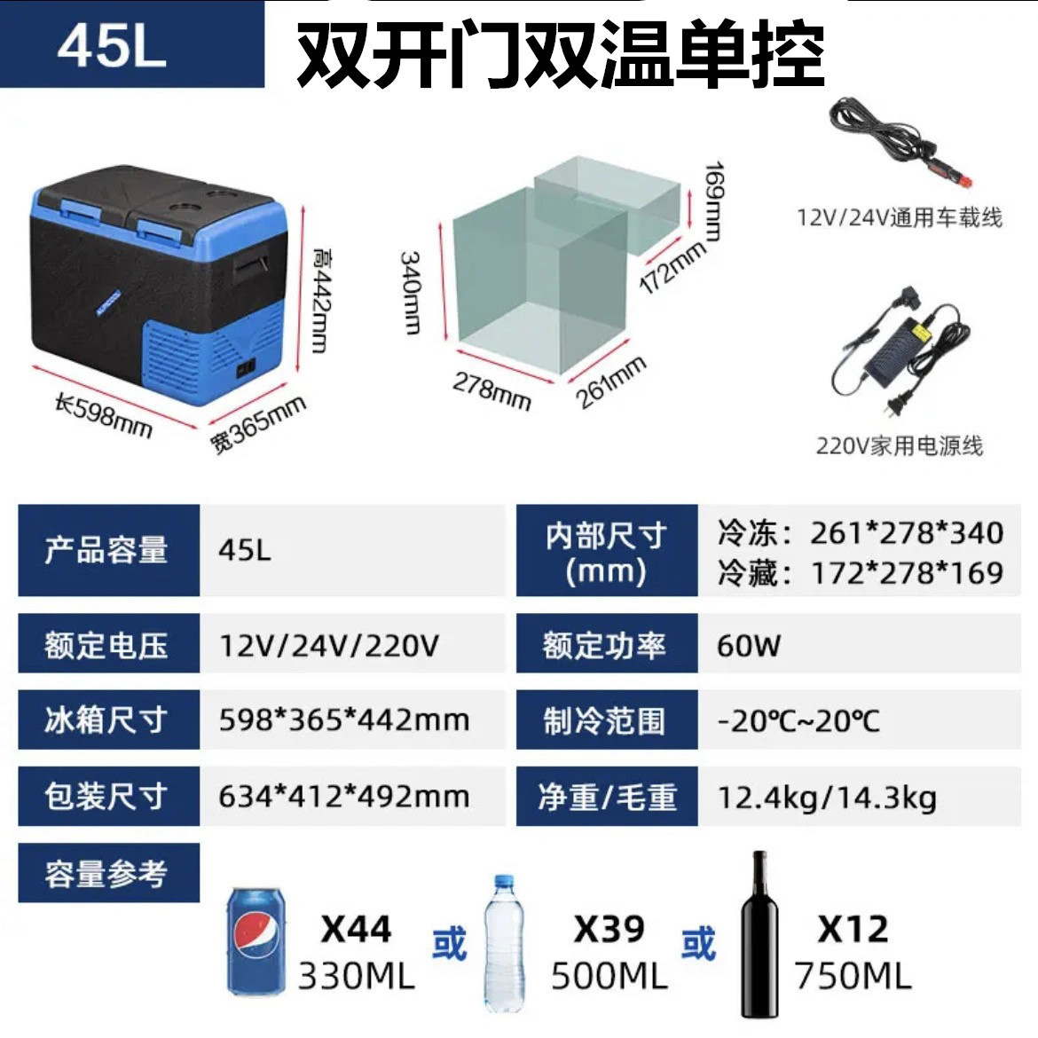 • QLD45 자동차 홈 이중 목적 + 이중 도어 이중 온도 단일 제어