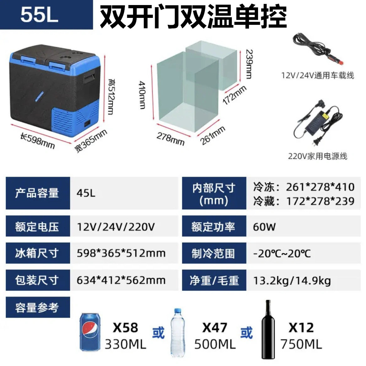 • QLD55 자동차 홈 이중 목적 + 이중 도어 이중 온도 단일 제어