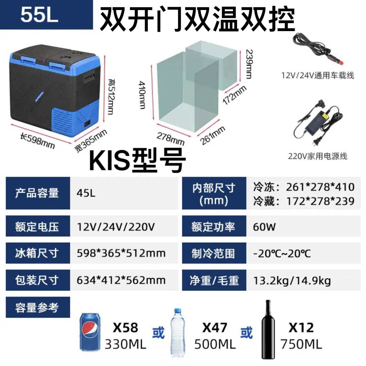 • KIS45 자동차 홈 이중 목적 + 이중 도어 + 이중 온도 및 이중 제어