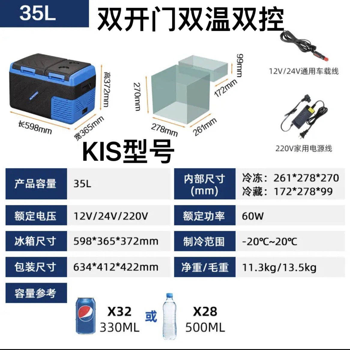 • KIS35 자동차 홈 이중 목적 + 이중 도어 + 이중 온도 및 이중 제어