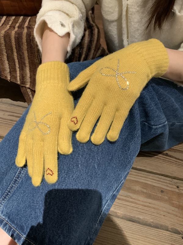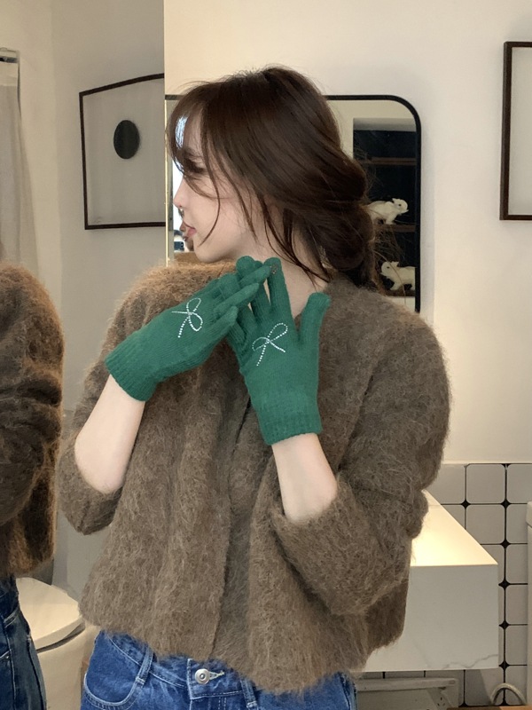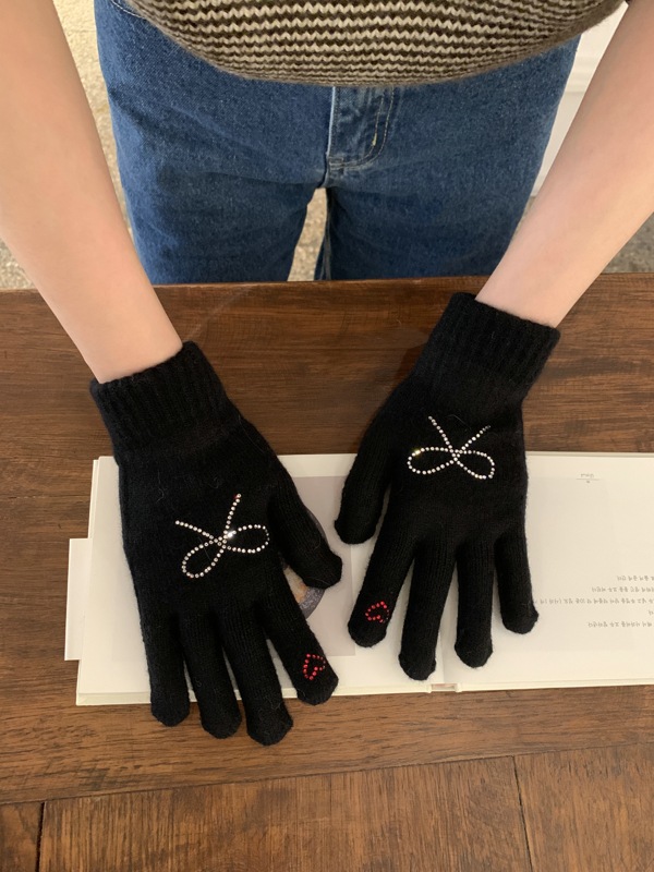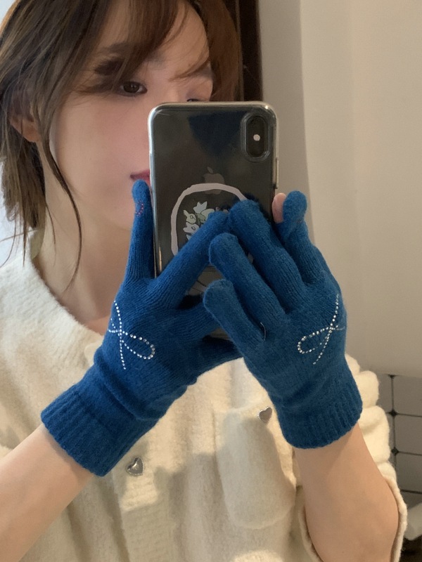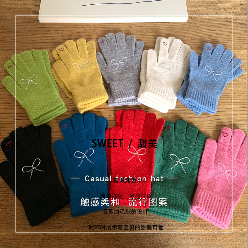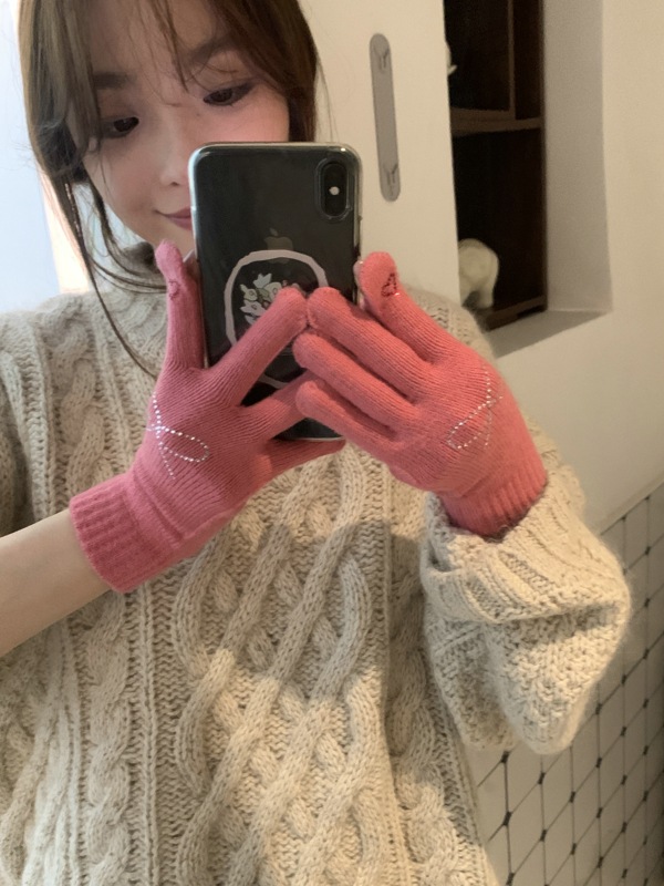 양모 니트 활 장갑 여학생을위한 귀여운 한국 스타일 가을과 겨울 사이클링 따뜻한 유행 한국 손가락 회색스토어 가기