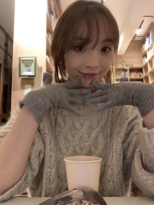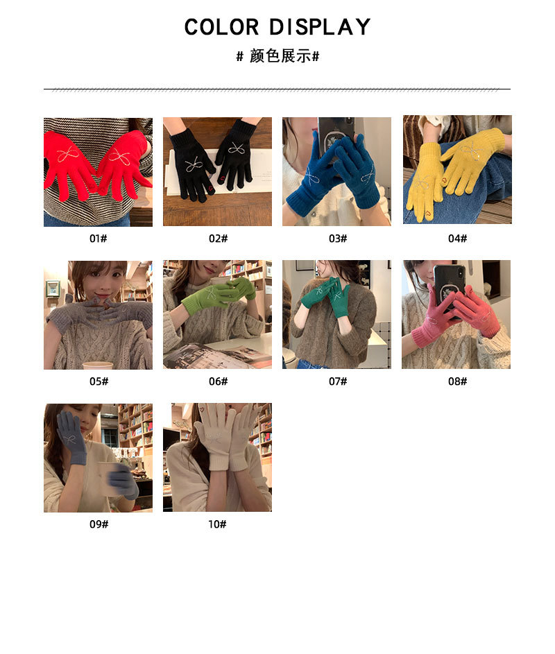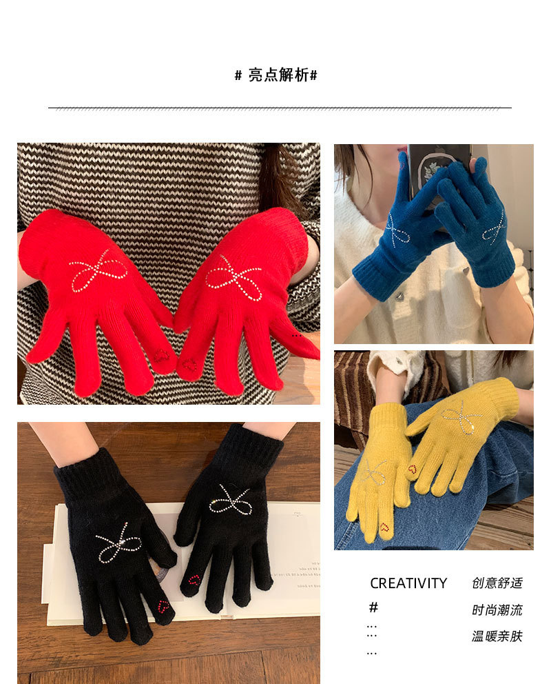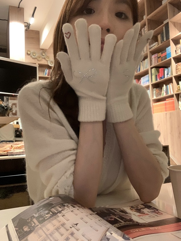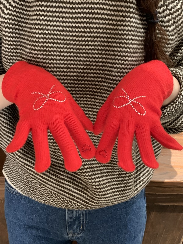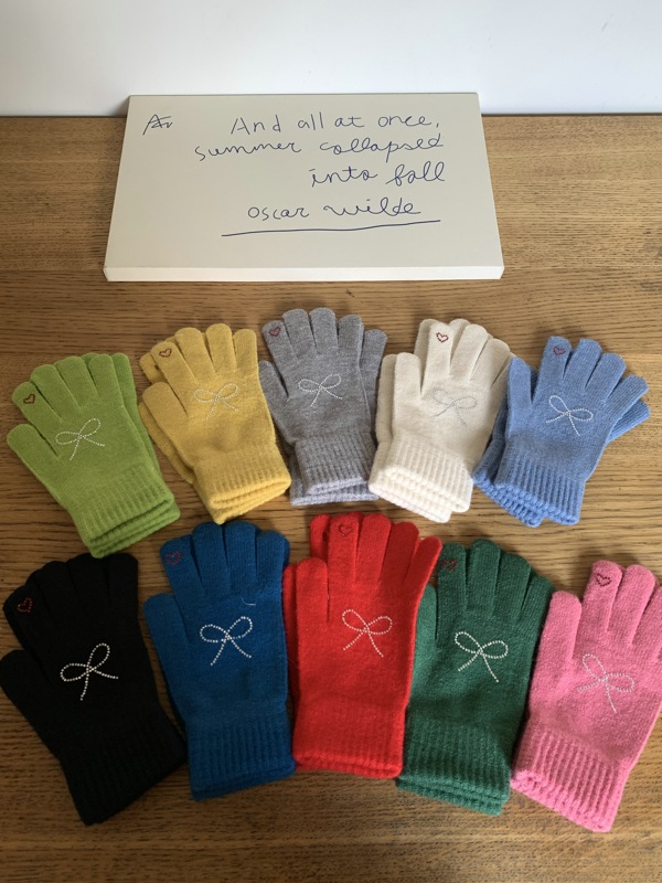 양모 니트 활 장갑 여학생을위한 귀여운 한국 스타일 가을과 겨울 사이클링 따뜻한 유행 한국 손가락 회색스토어 가기