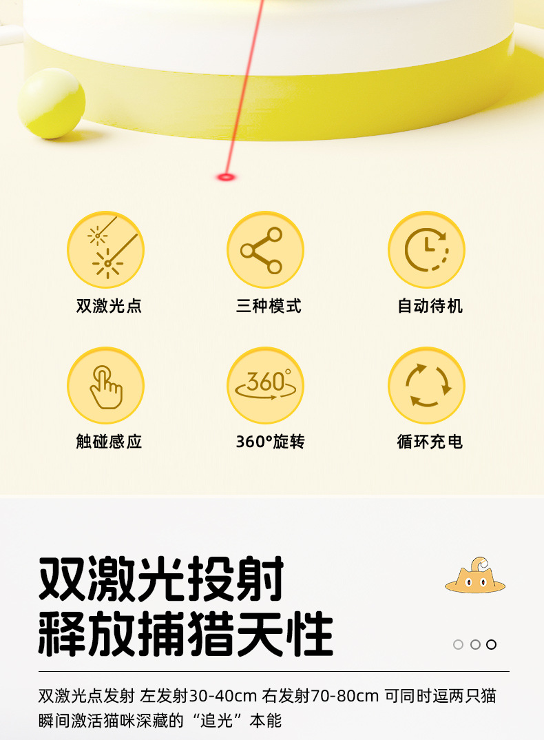 국경을 넘는 인기 상품, 듀얼 레이저 회전 고양이 장난감, 터치 센서, 긴 배터리 수명의 고양이 놀잇대, 애완동물 장난감스토어 가기