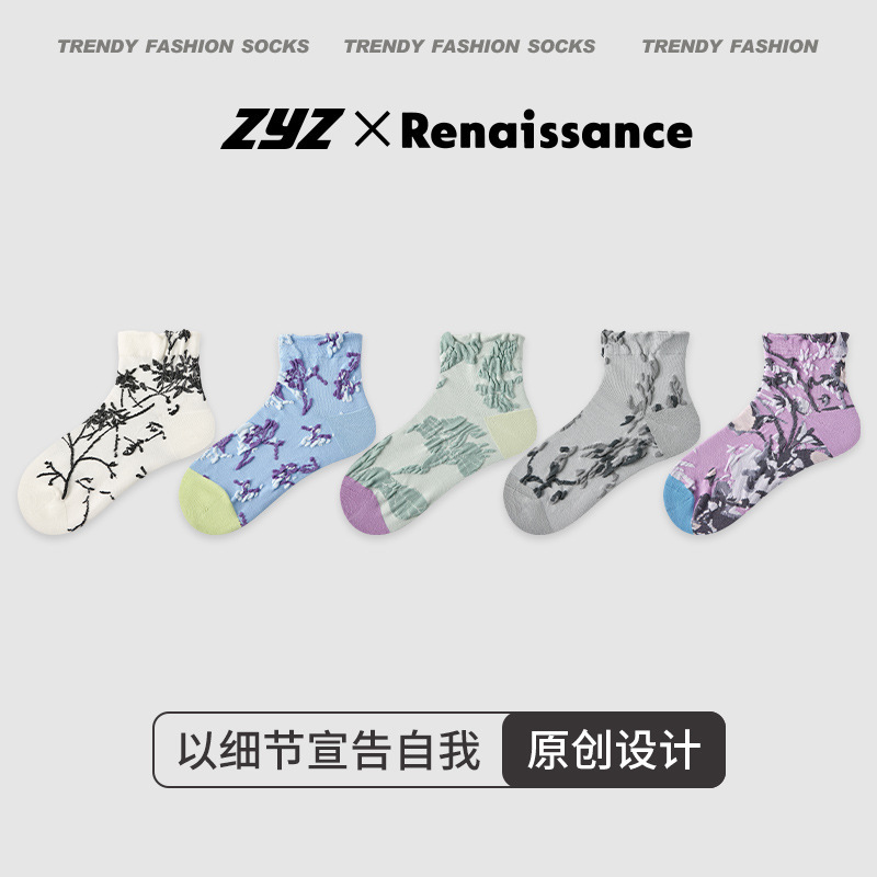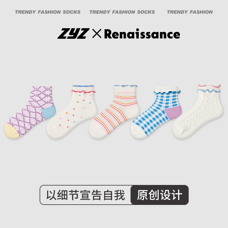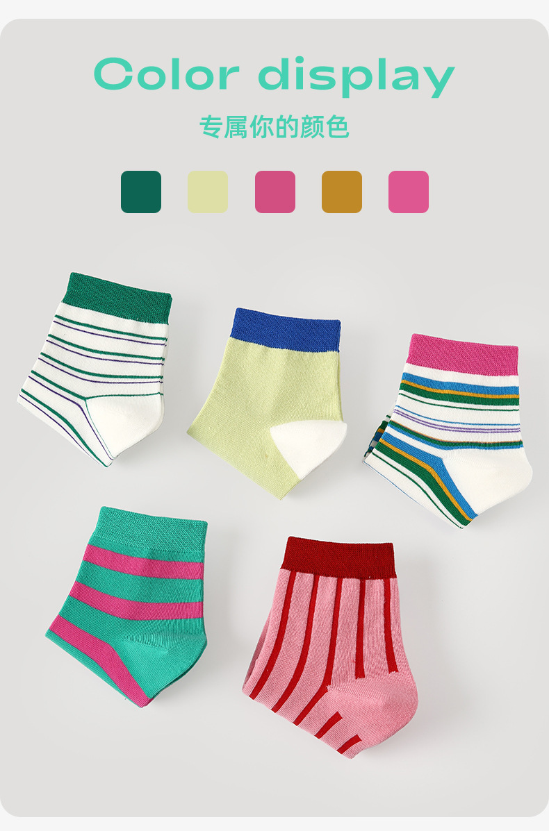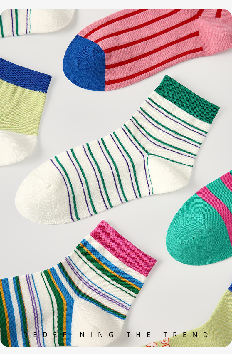 르네상스 양말 여성 봄 여름 양말 얇은 한국 컬러 스트라이프 봄, 가을 학생 스포츠 보트 양말 유행