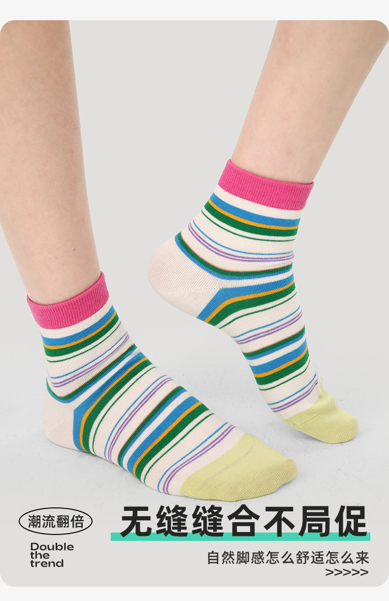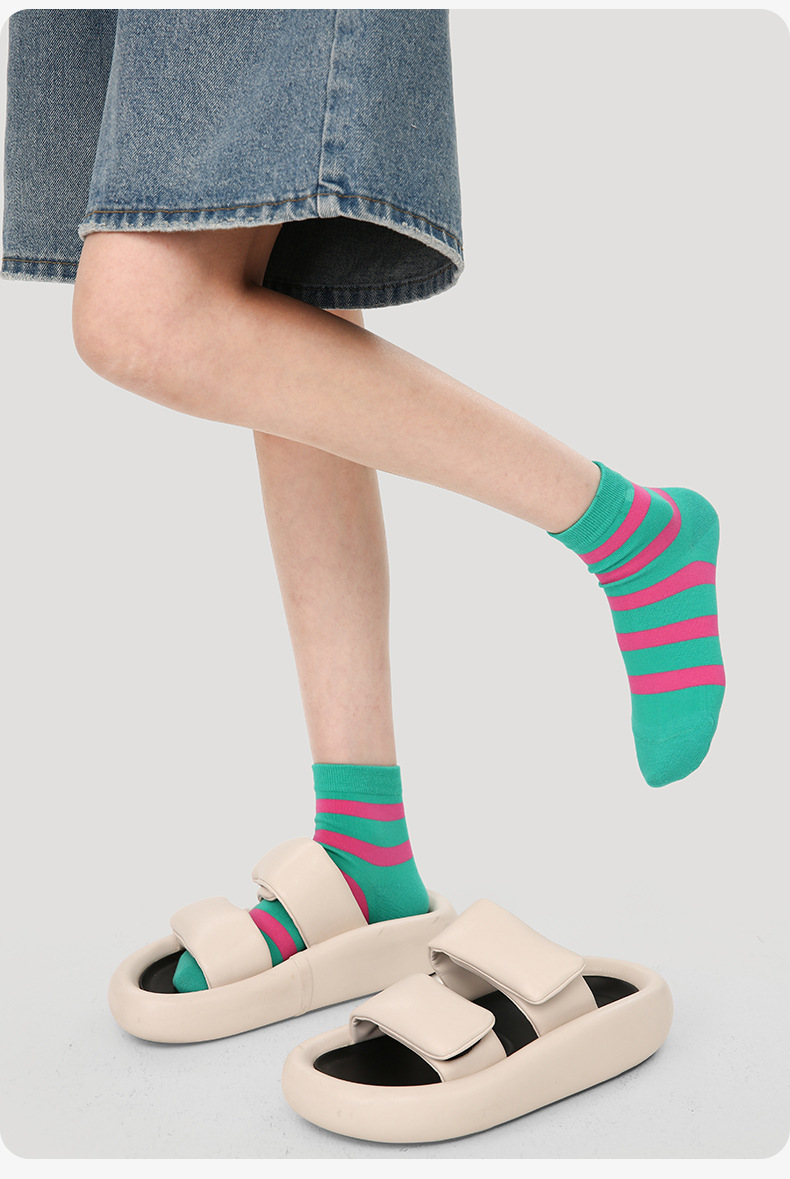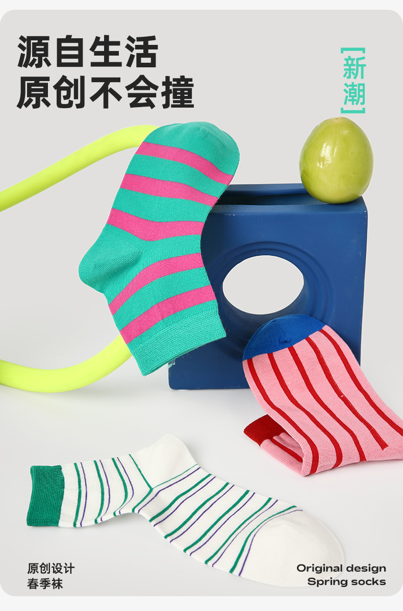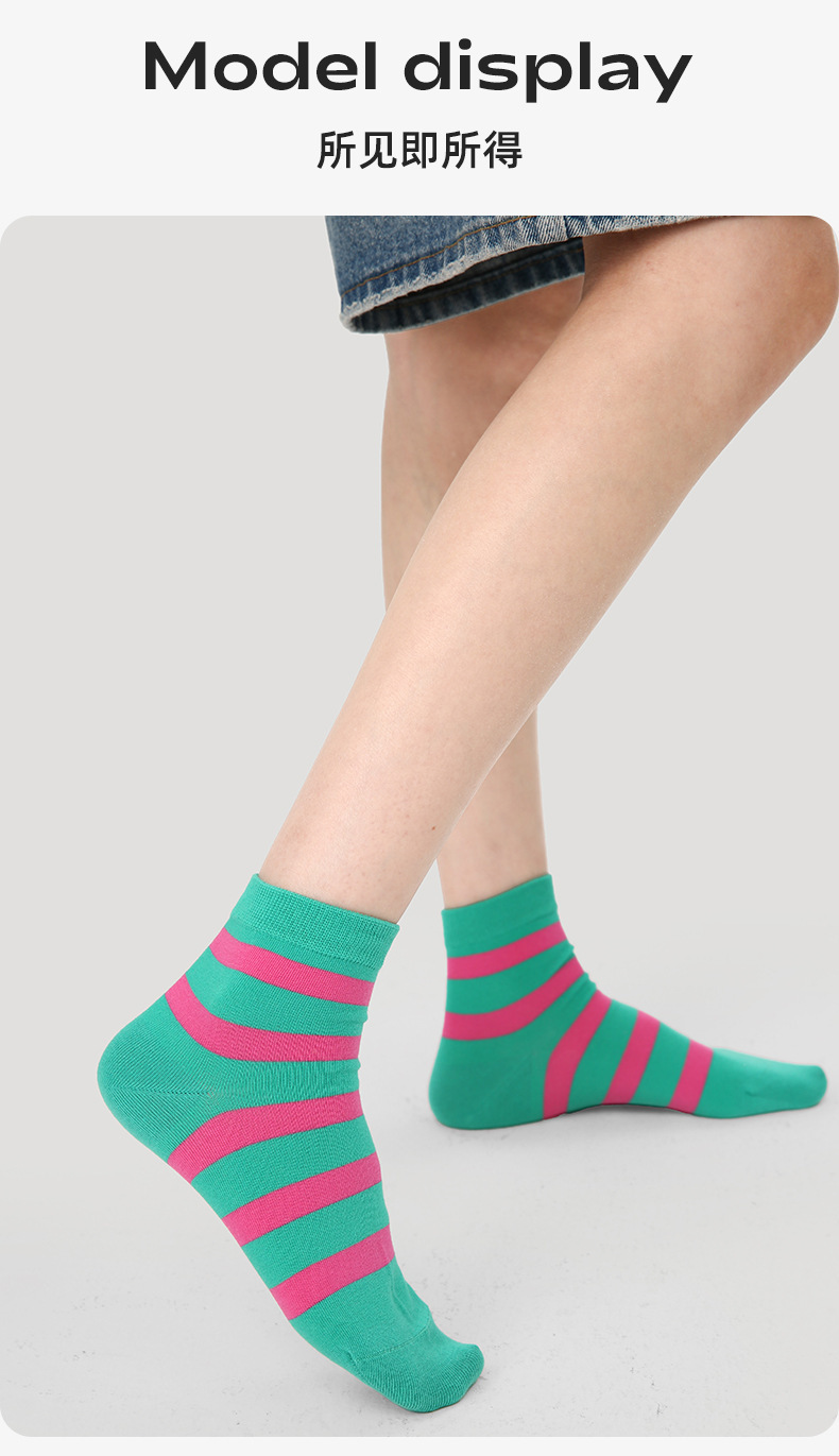 르네상스 양말 여성 봄 여름 양말 얇은 한국 컬러 스트라이프 봄, 가을 학생 스포츠 보트 양말 유행스토어 가기