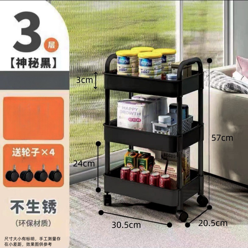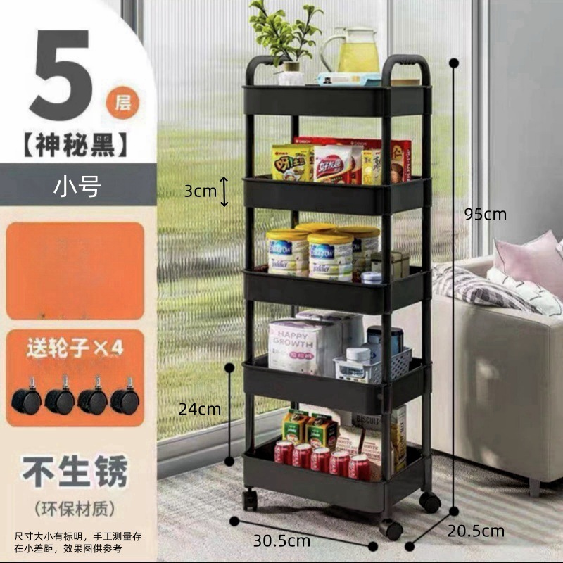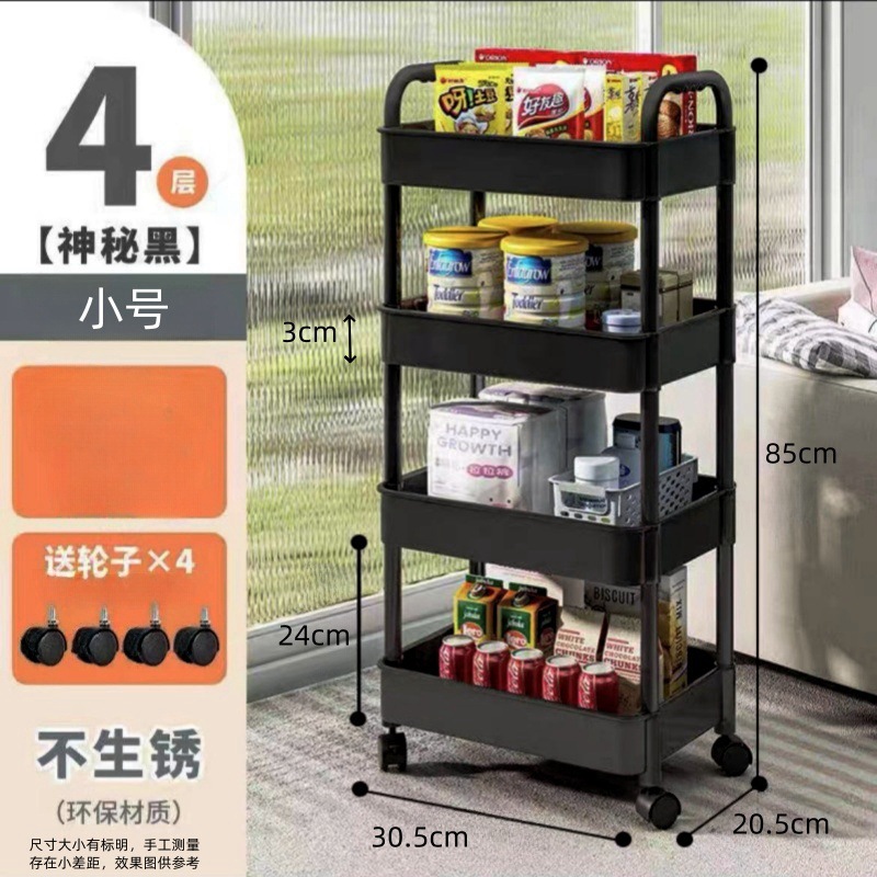 트롤리 저장 랙 다층 저장 용품 바닥 주방 보관 랙 거실 간식 이동식 침실 책장