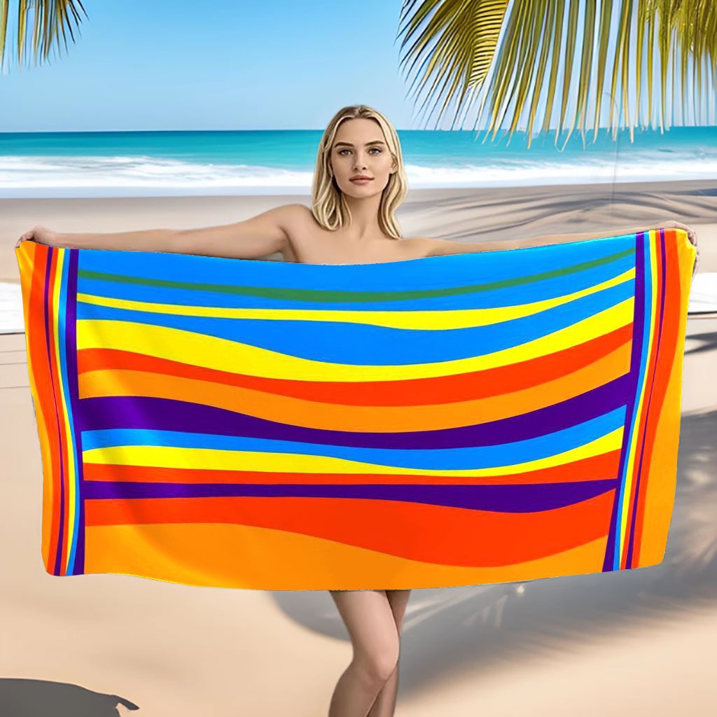 아마존 스트라이프 마이크로 화이버 비치 타월 흡수성 스포츠 타월 성인용 활성 인쇄 속건성 수영 목욕 타월