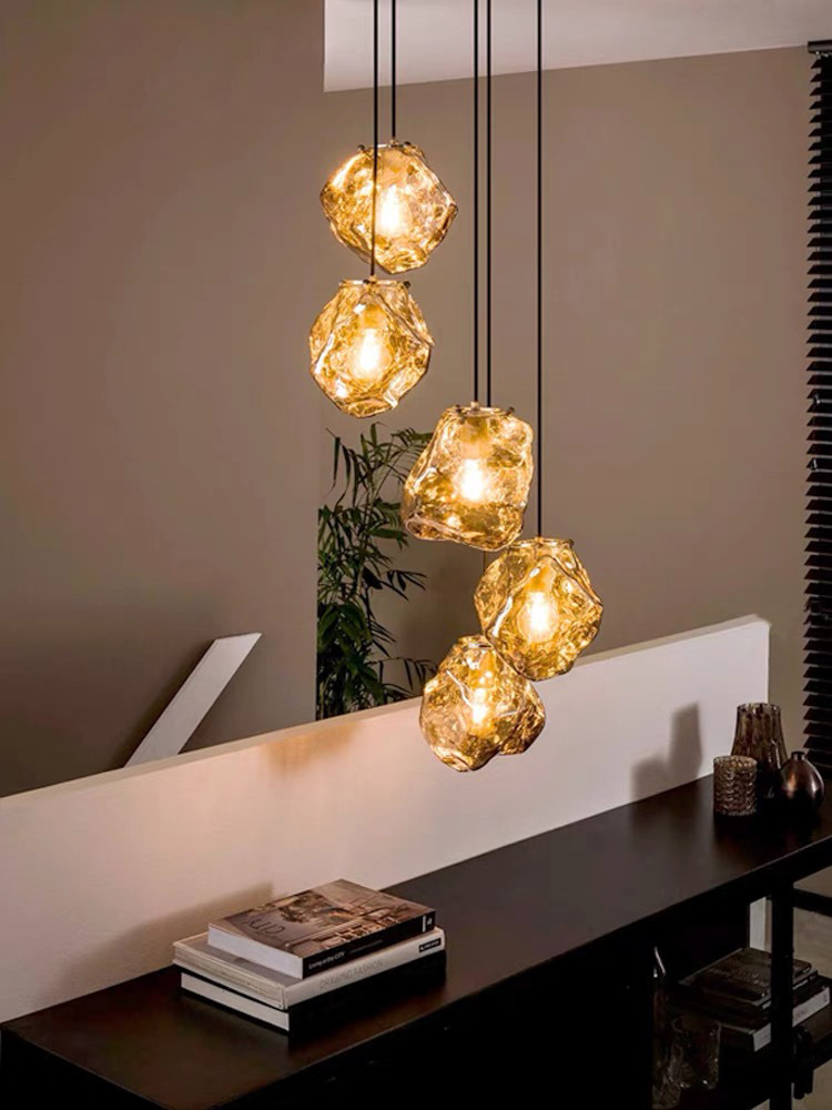 미니멀리스트 아트 아이스 블록 레스토랑 샹들리에 듀플렉스 계단 샹들리에 라이트 입구 간단한 용암 바 침실 램프