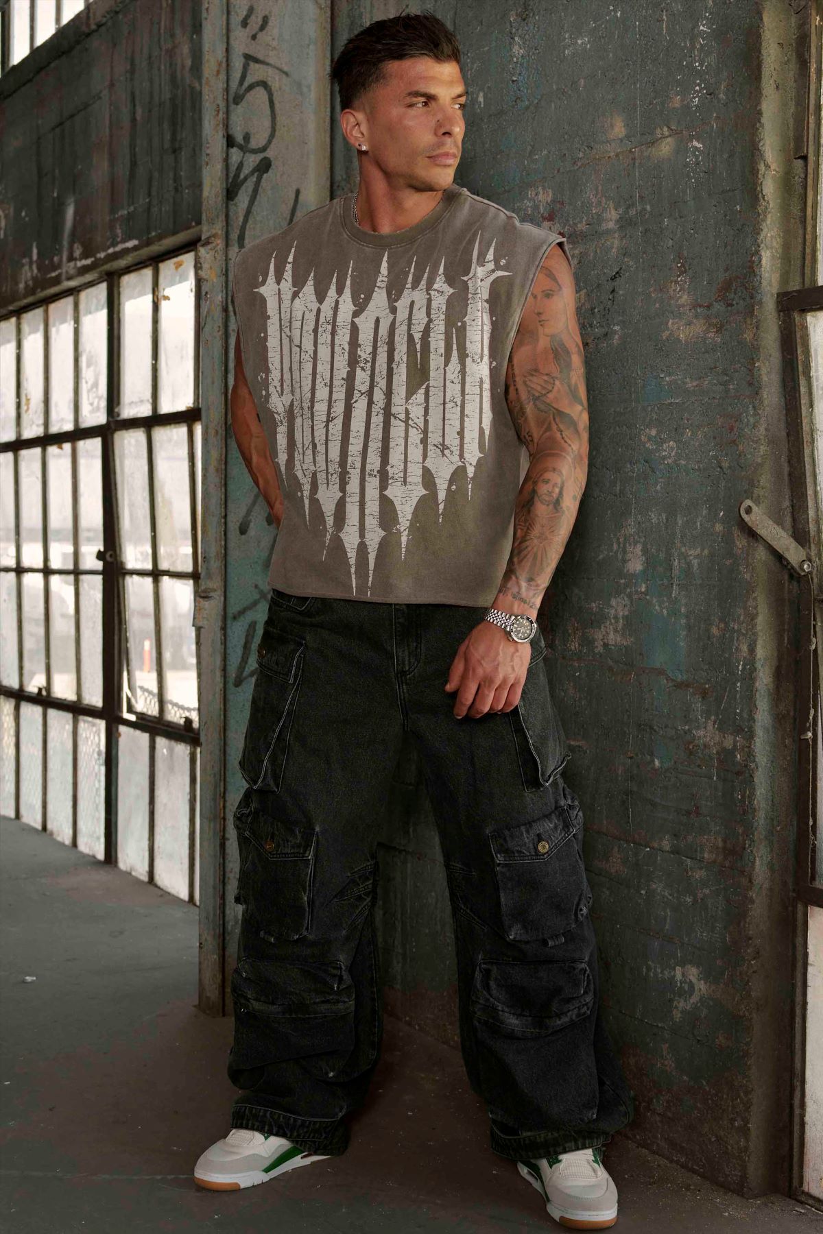 유럽과 미국의 Youngla 남성용 반팔 미국 야외 민소매 여름 바틱 조끼 순면 무거운 대외 무역 조끼