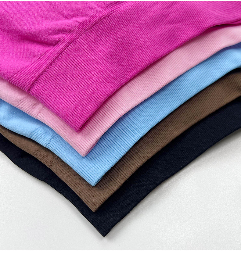 유럽과 미국의 국경 간 피트니스 반팔 티셔츠 여성용 원활한 아름다운 백 스포츠 탑 통합 가슴 패드 고정 컵 요가 옷스토어 가기
