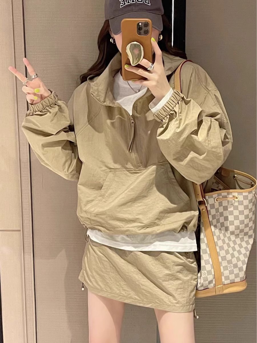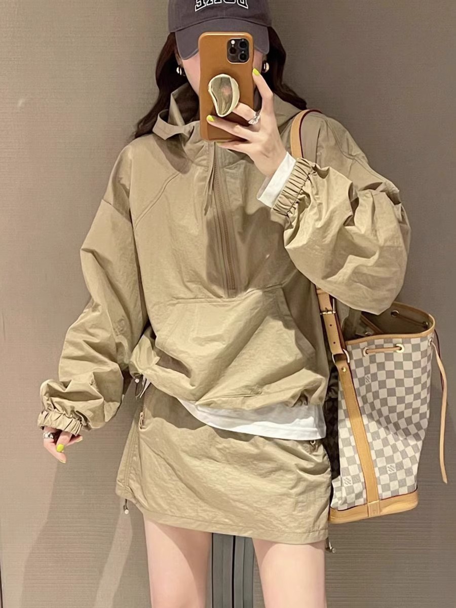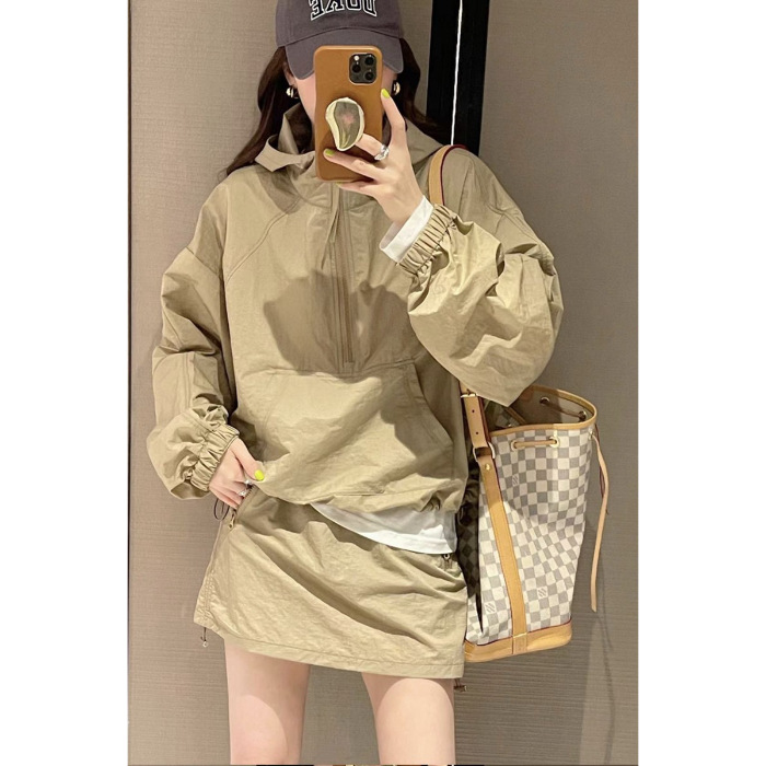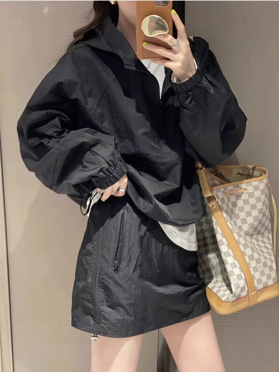 Tasilon 여름 유럽 패션 정장 여성 작은 후드 자외선 차단 재킷 스커트 투피스 스커트스토어 가기