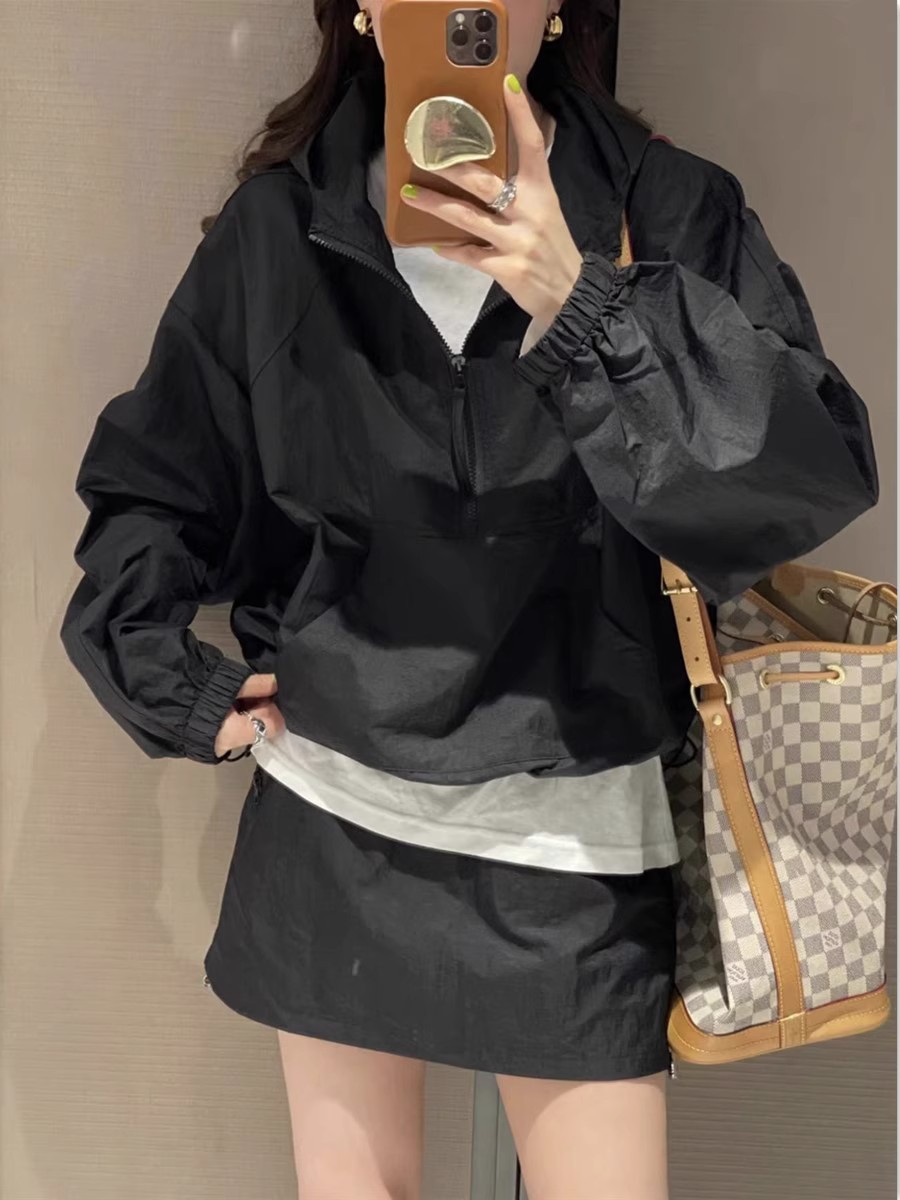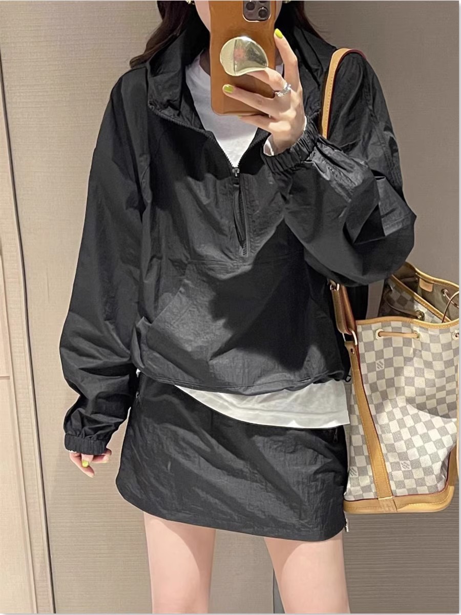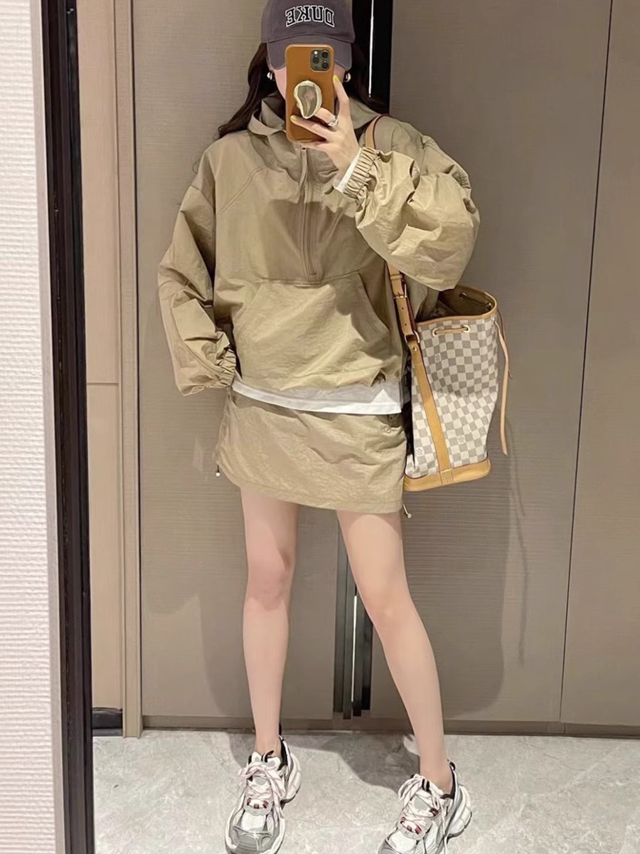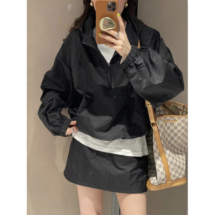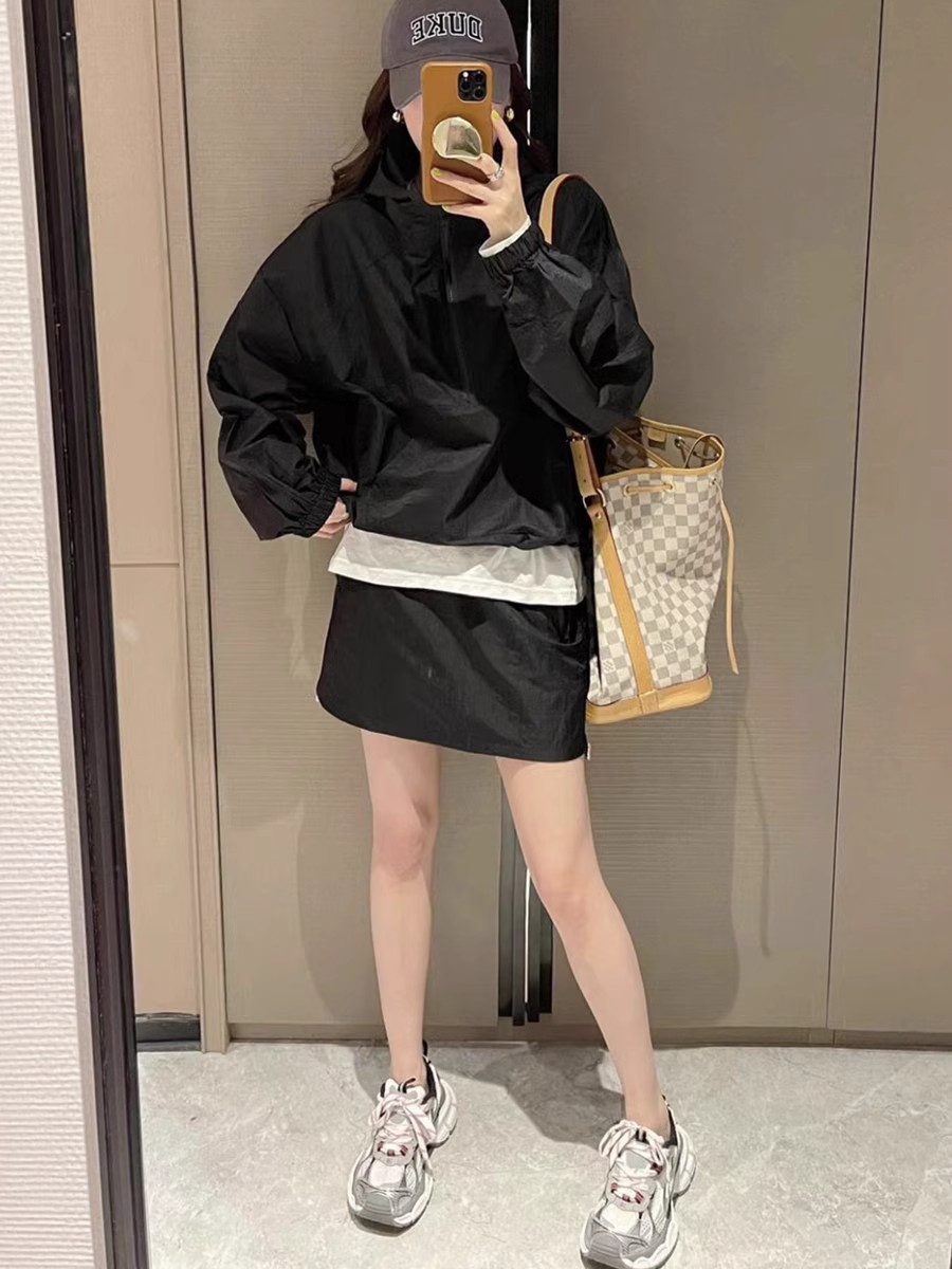 Tasilon 여름 유럽 패션 정장 여성 작은 후드 자외선 차단 재킷 스커트 투피스 스커트스토어 가기