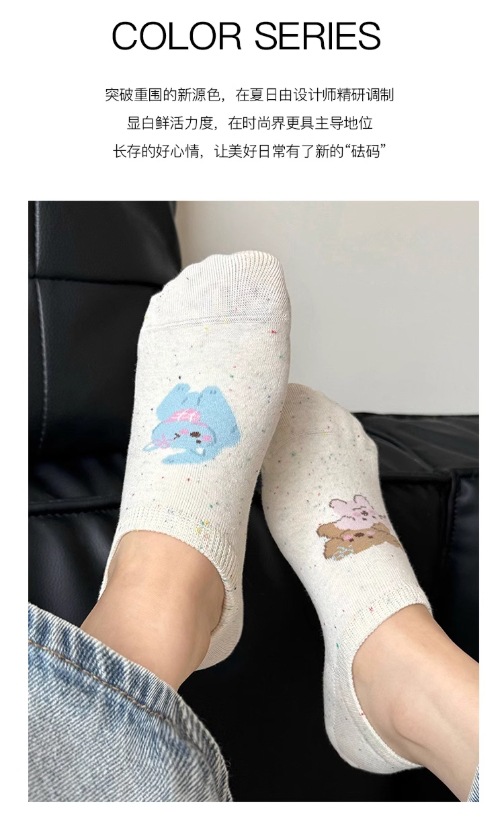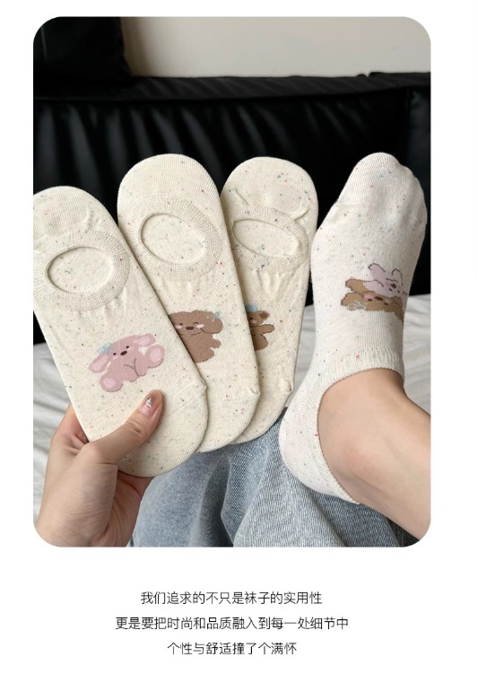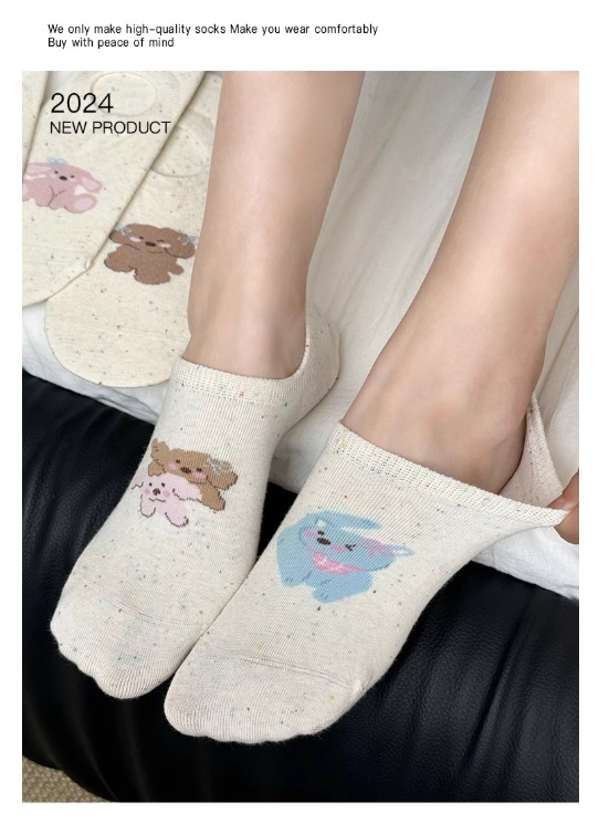 봄과 여름 새로운 귀여운 작은 동물 여성용 뼈없는 보트 양말 일본 만화 대학 스타일 짧은 실리콘 미끄럼 방지 보이지 않는 양말