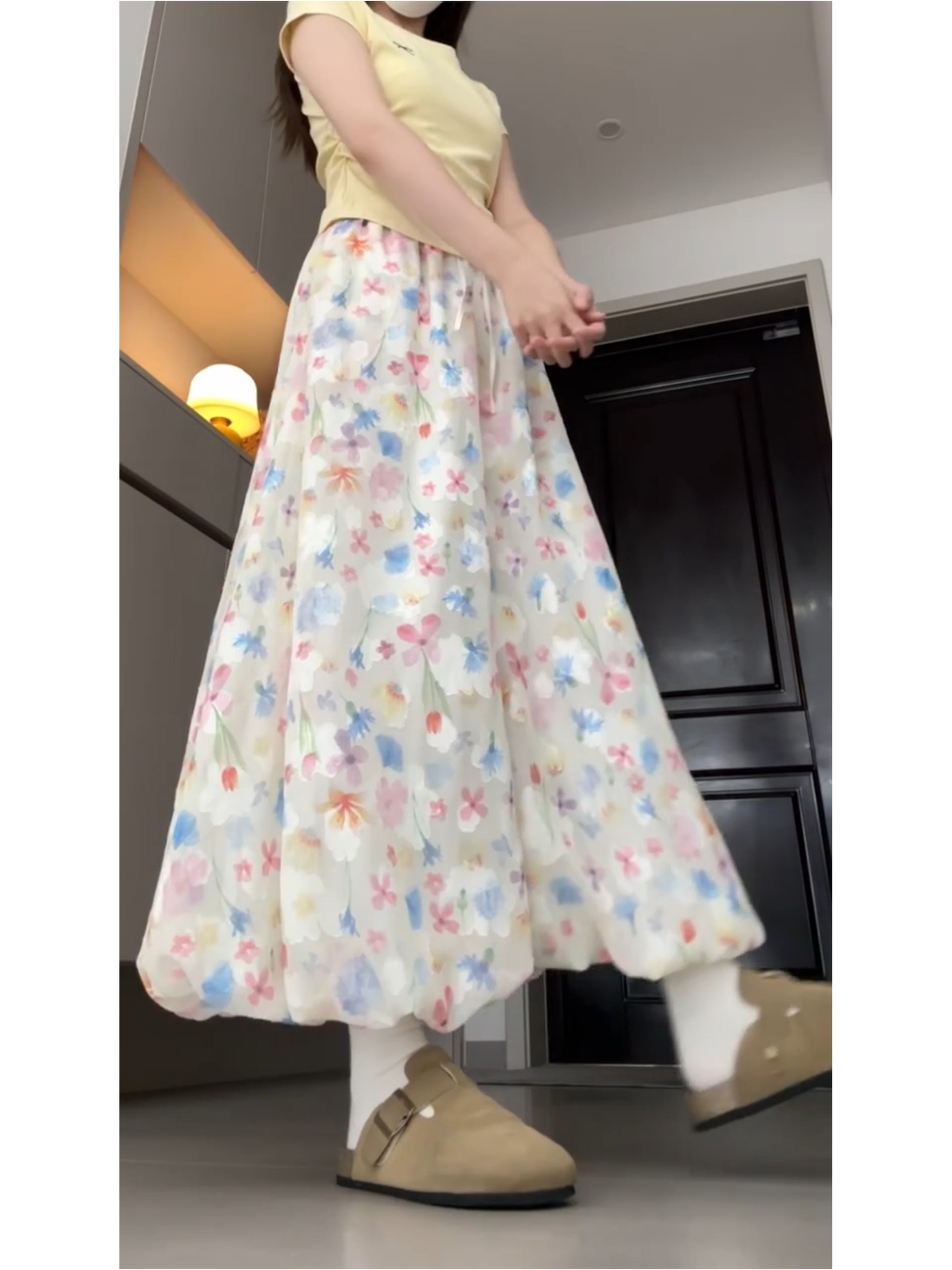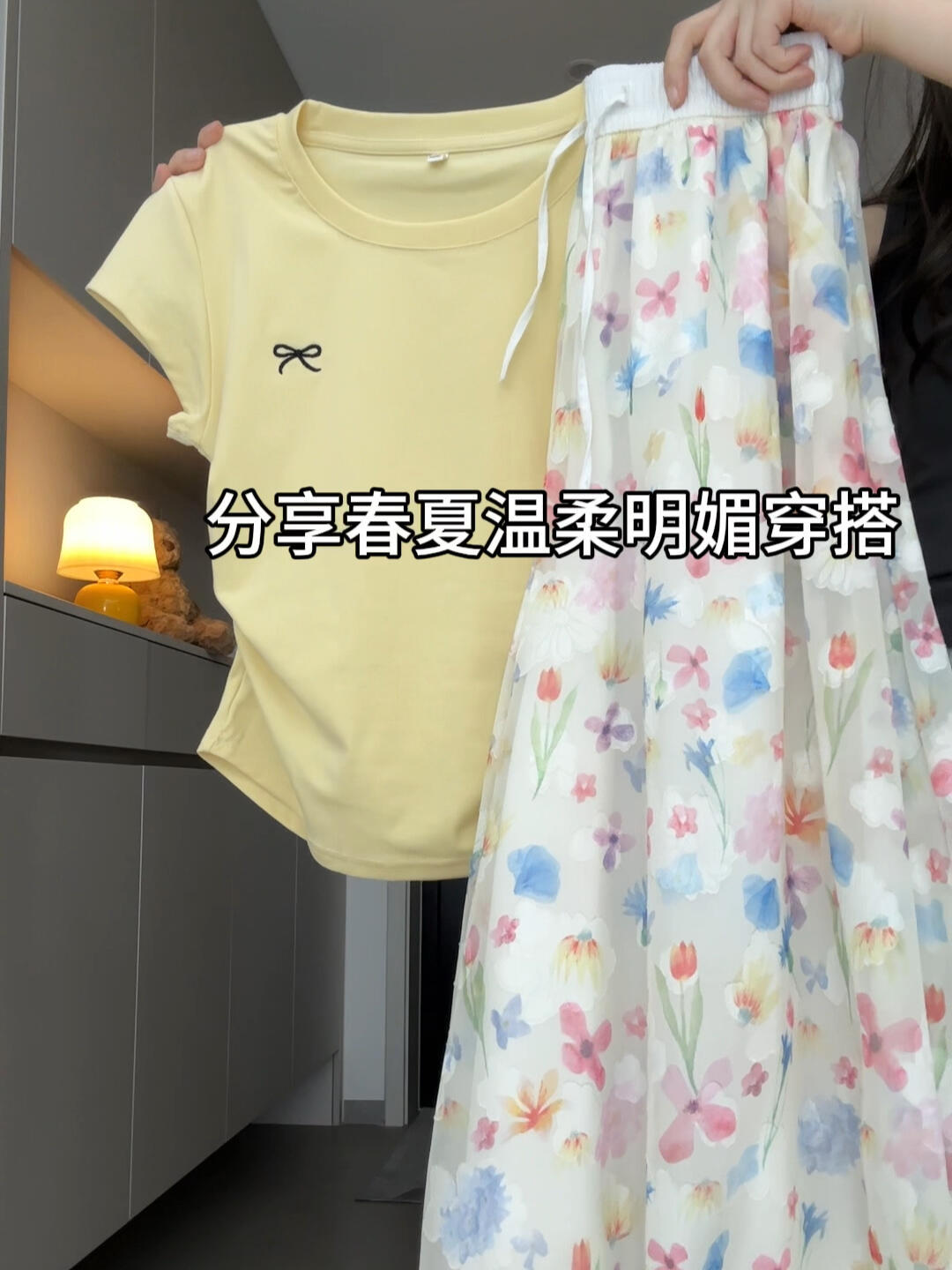 2025 여름 패션 세트 여성용 달콤한 깨진 꽃 끈 원피스 바지 랜턴 바지 & 둥근 목 어깨 상단 짧은 소매 티셔츠스토어 가기