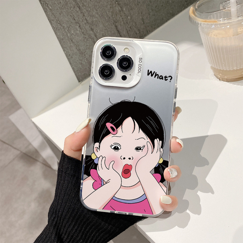 애플 15 휴대 전화 케이스 귀여운 낙서 소녀 컬러 실버 케이스 13pro 만화 원래 14P 휴대 전화 보호 케이스스토어 가기