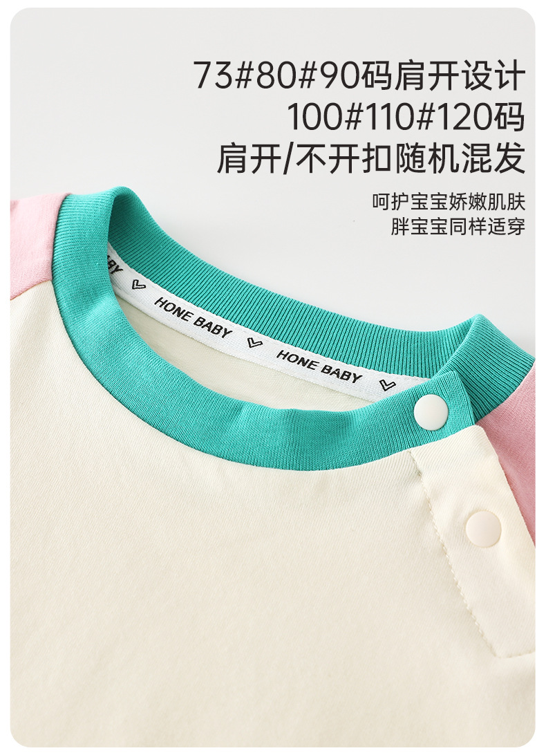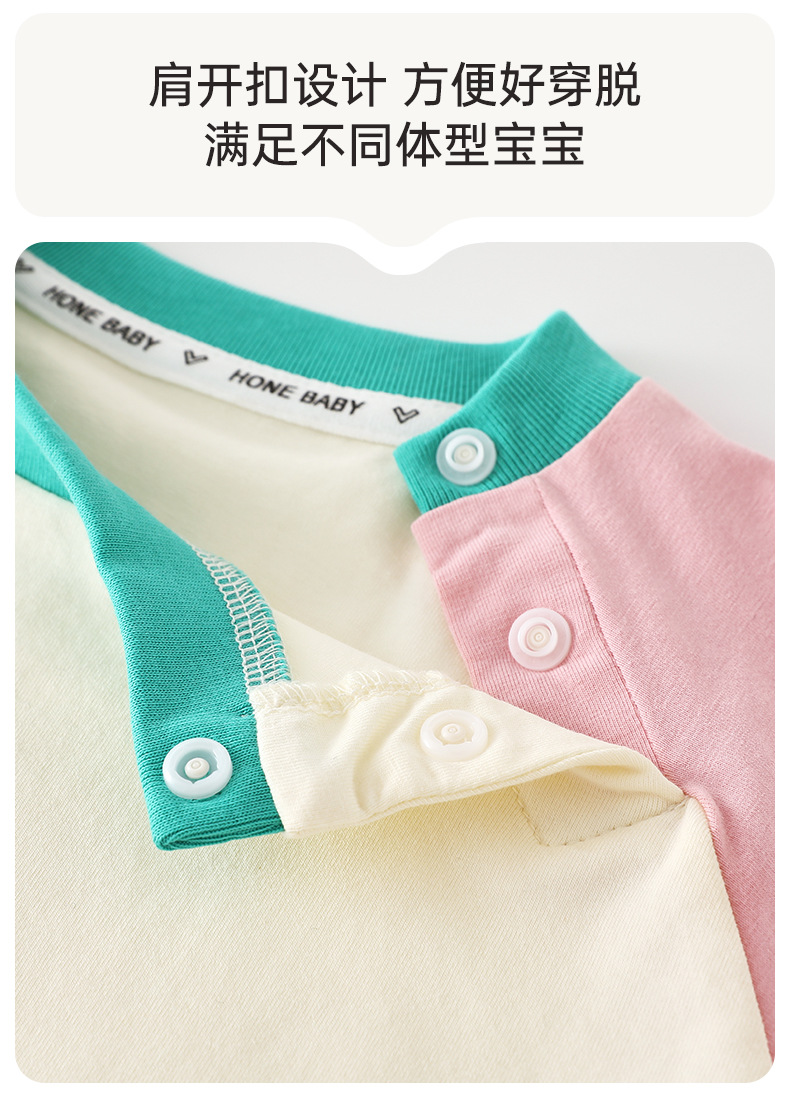 아기 옷, 아동용 반팔 라글란 소매 상의, 남녀 아기 대비 색상 얼음 도자기 면 어깨 오픈 버튼 A형 면 티셔츠스토어 가기