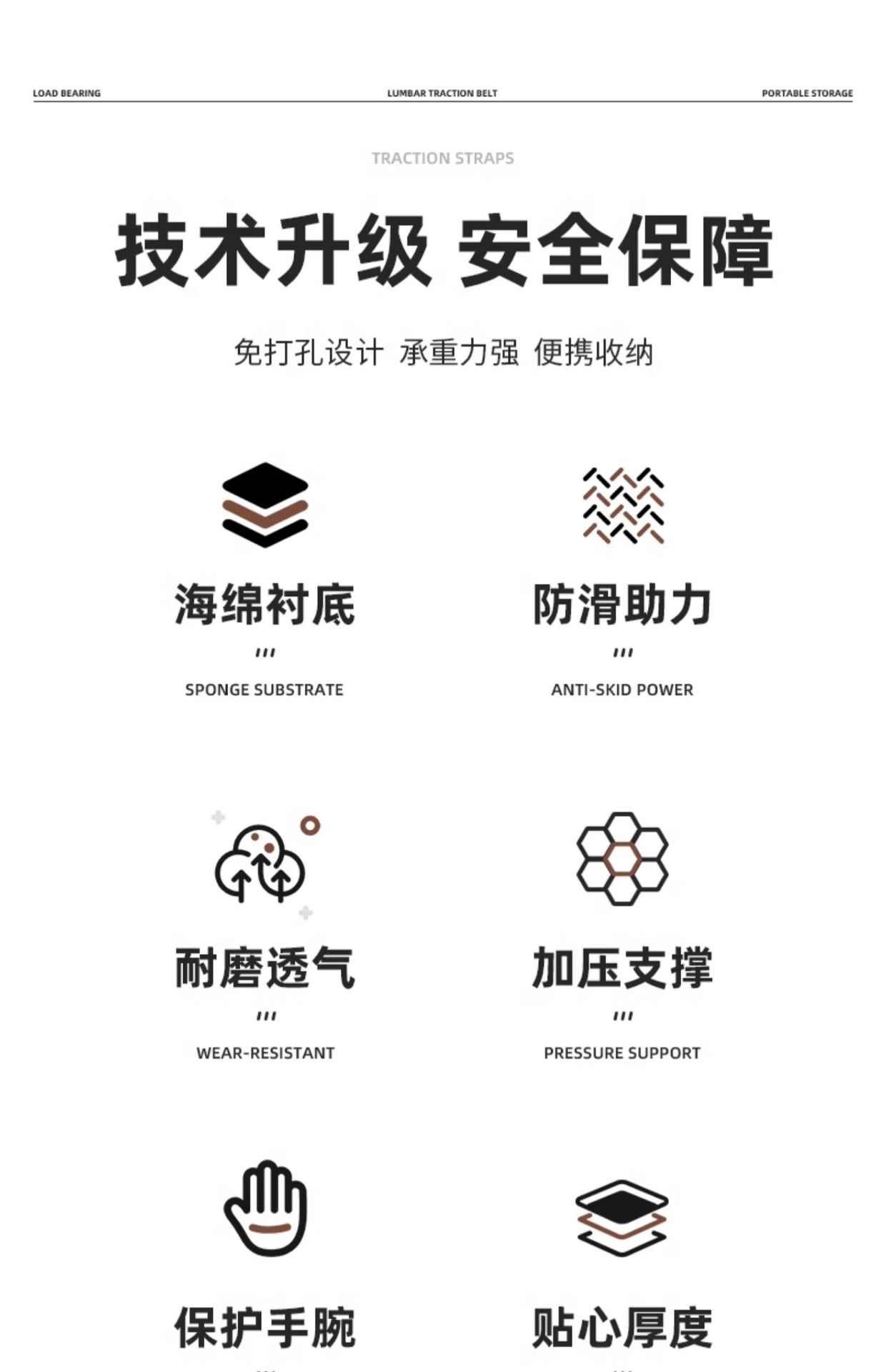 요추 견인 벨트 가정용 강한 허리 운동 슬링 척추 스트레칭 허리 수평 바 트랙터 요추 추적