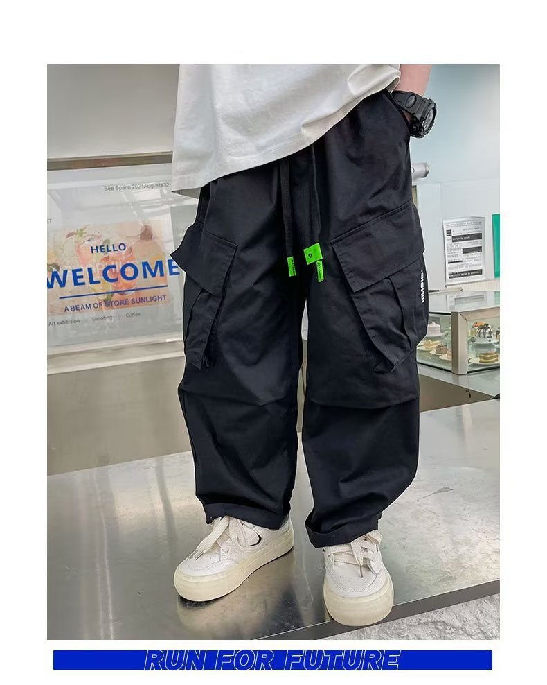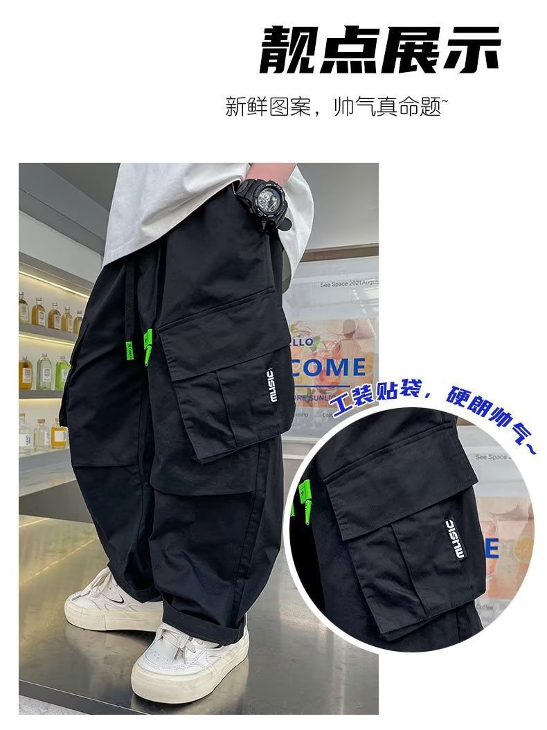 아동복 소년 가을 바지 2024 새로운 중대형 어린이 여름 소년 가을 얇은 봄, 가을 작업복